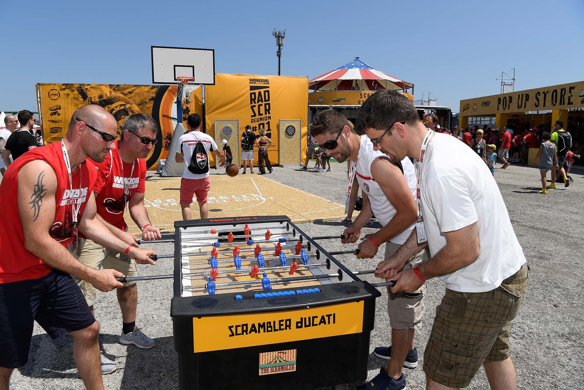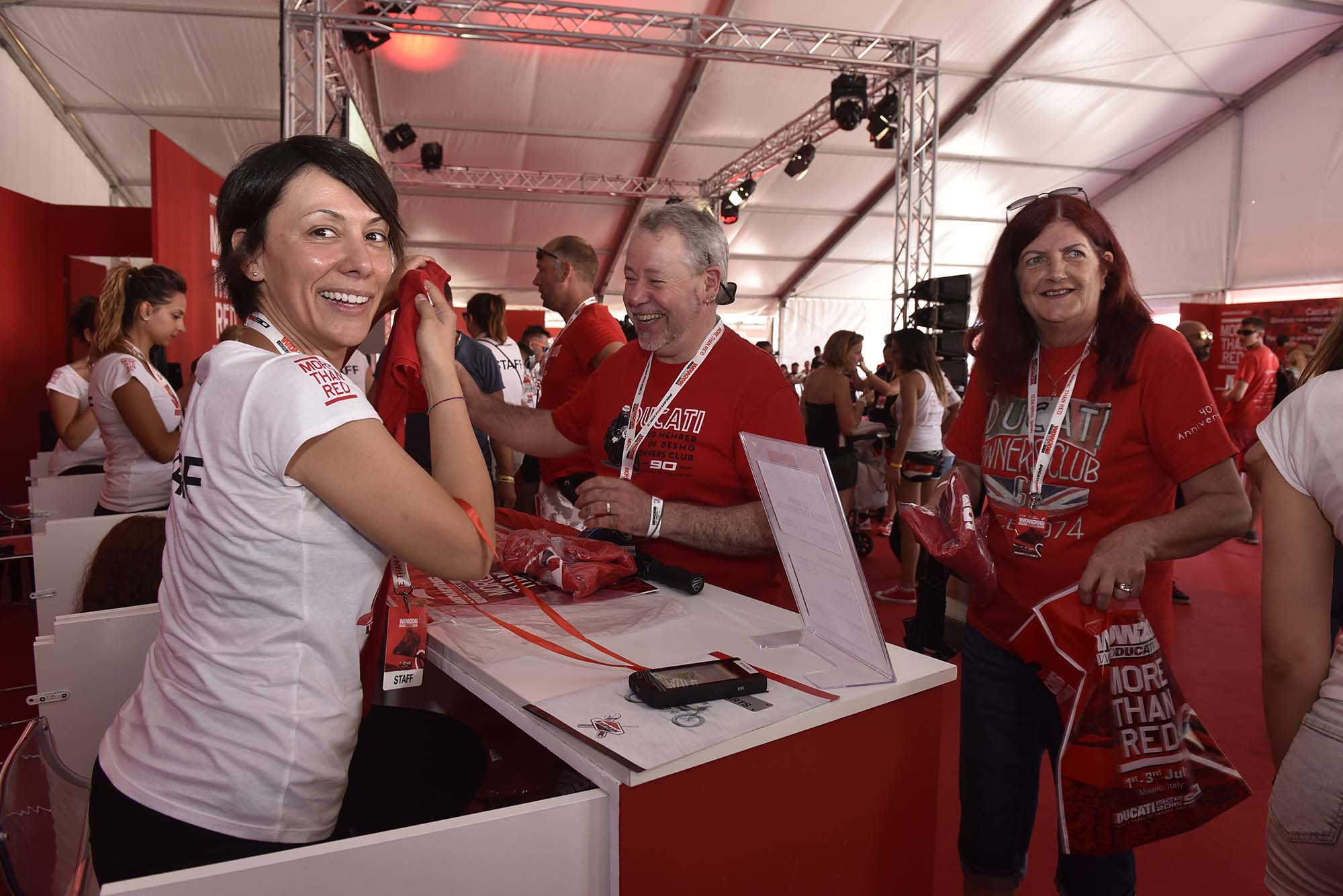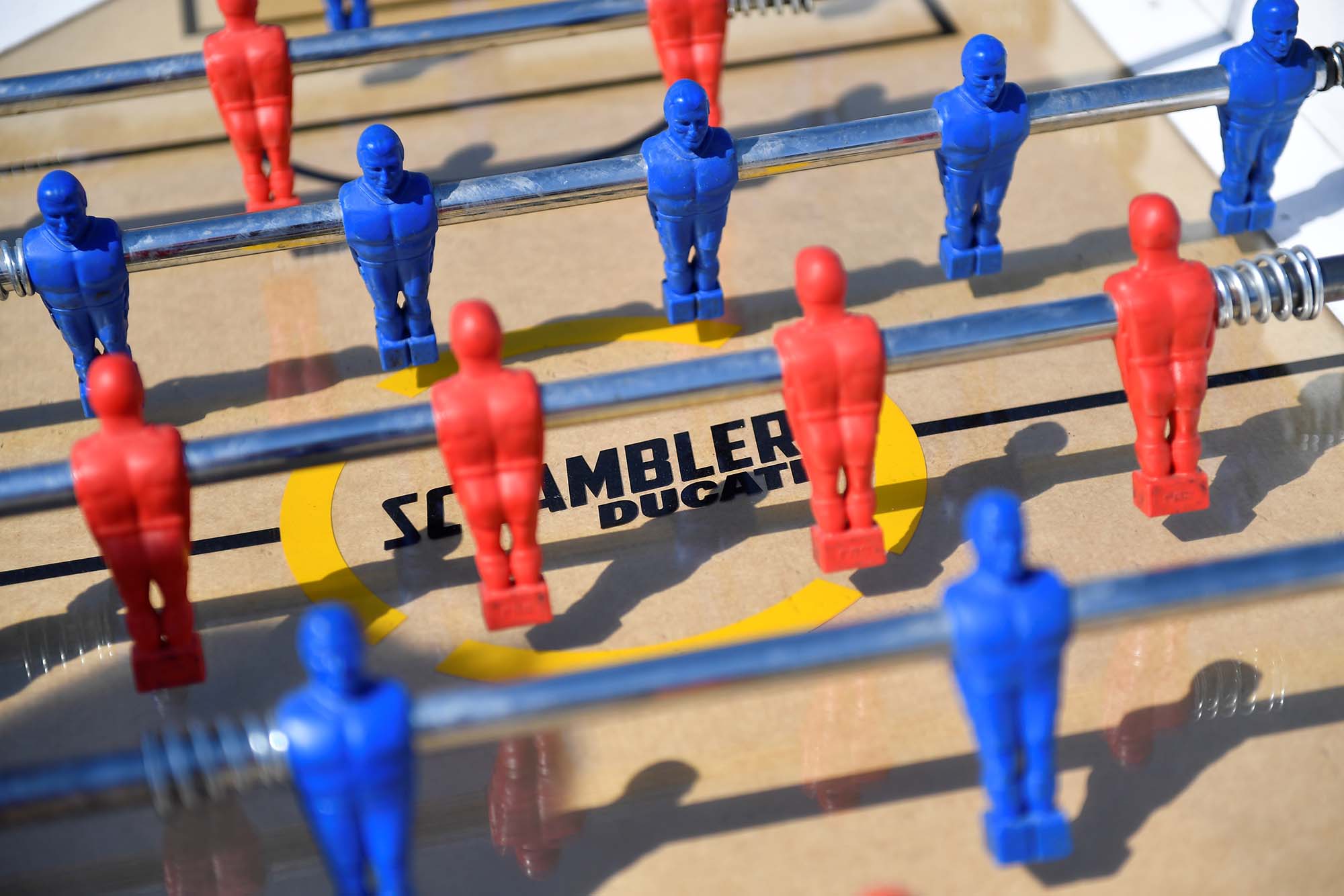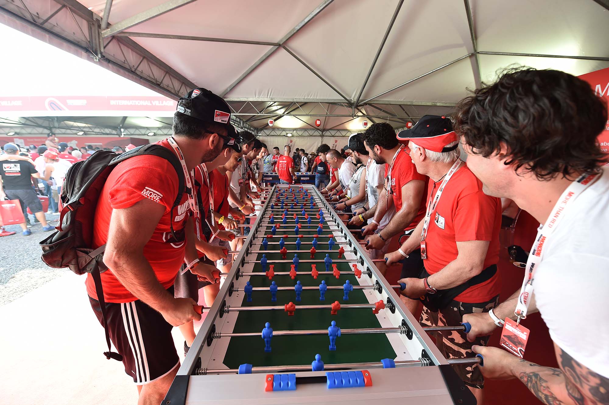 Other items of interest include the international zone, where Ducati Owners Club members from around the world can meet and interact. Each region’s portion of this mega-booth is slightly different, from sake and tea in the Asian region, to a double-sized foosball in the North American area.