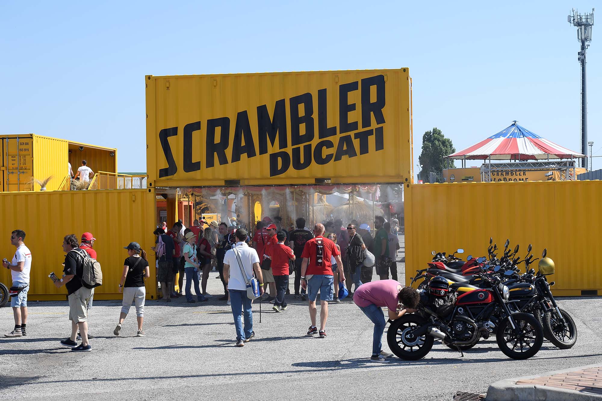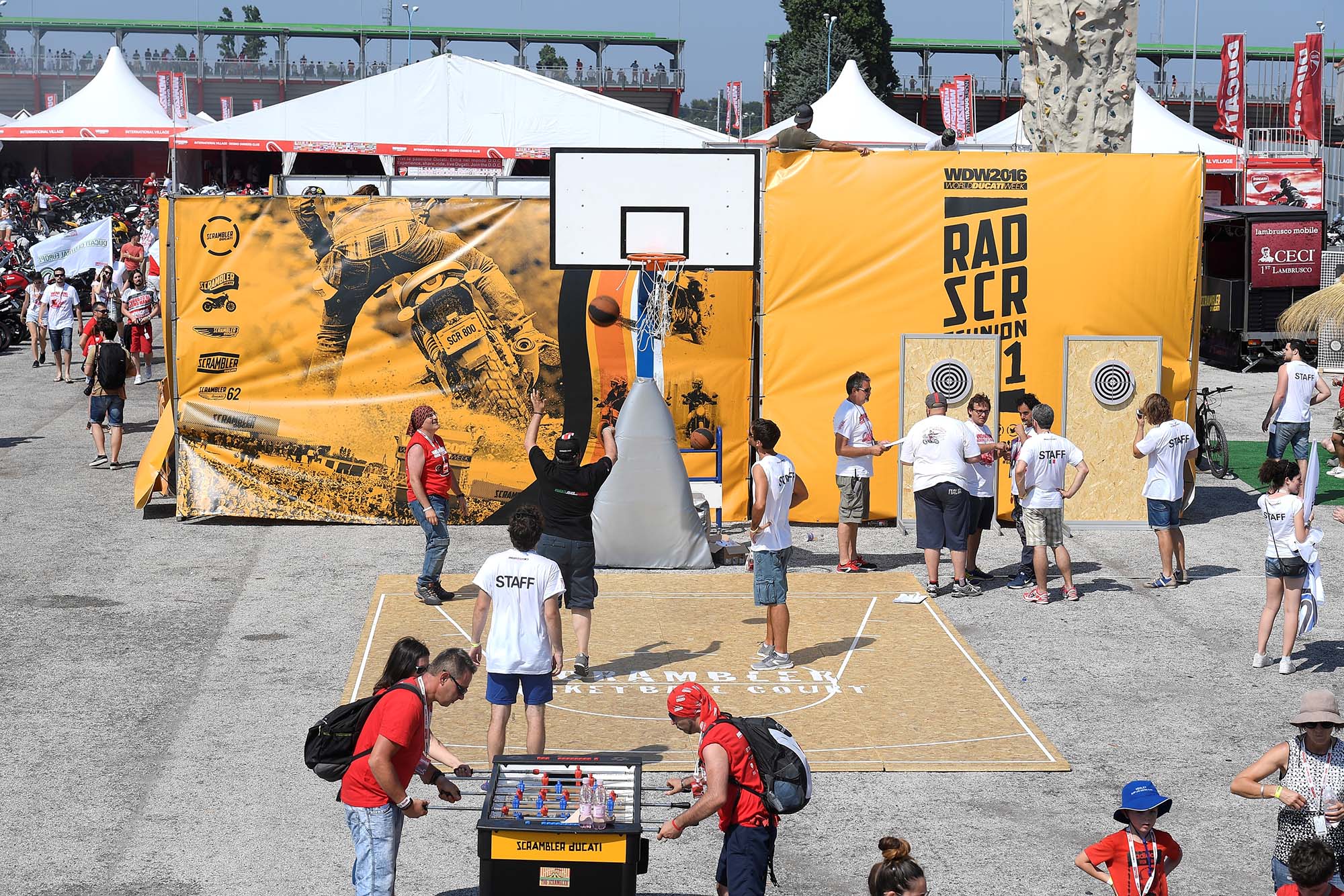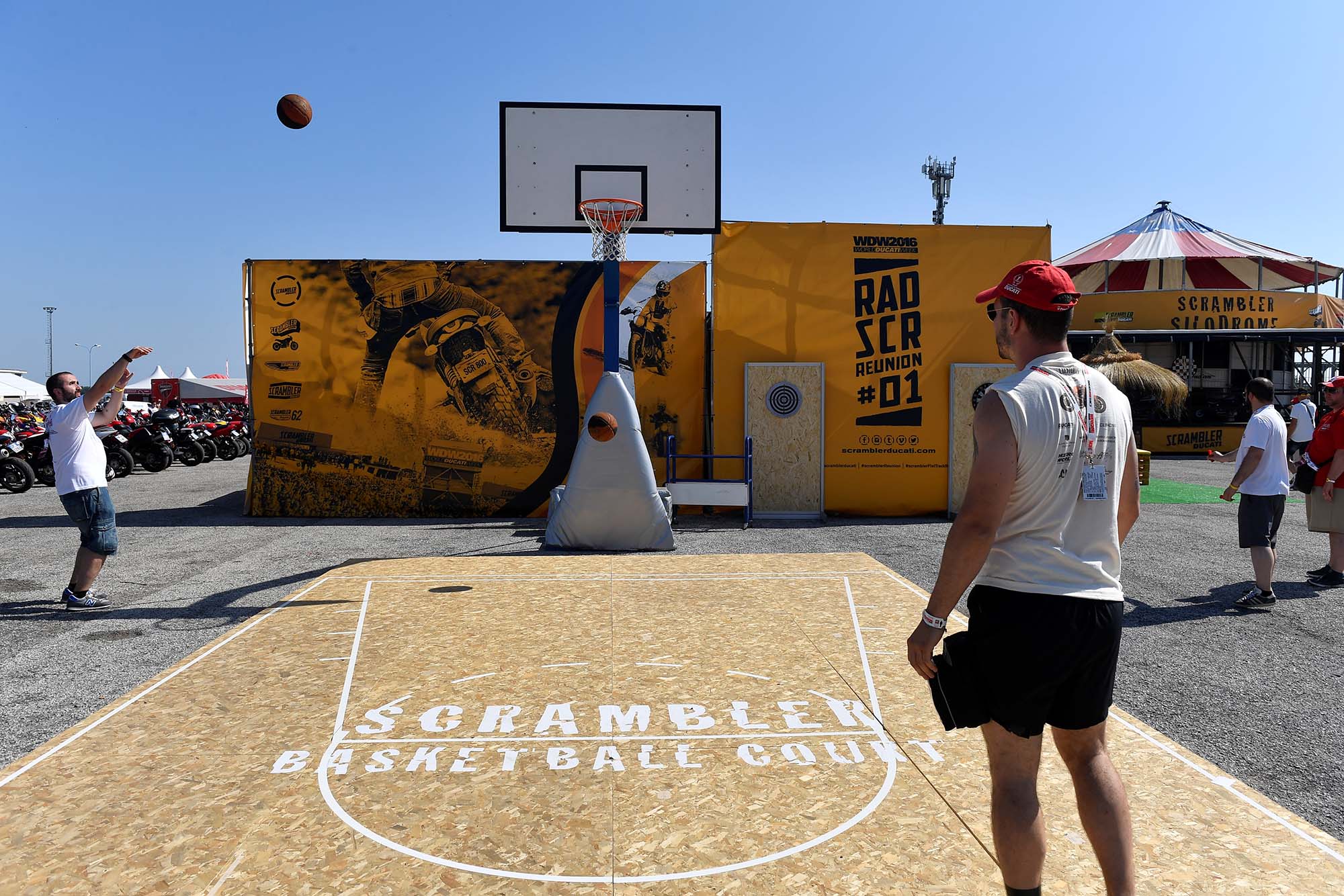 Instead, the Bologna company has created a paddock that gives access to everything that is Ducati. A special Scrambler area promotes the Italian company’s sub-brand, with a Californian beach-like atmosphere that includes a carousel, barbershop, skate park, basketball court, and more.