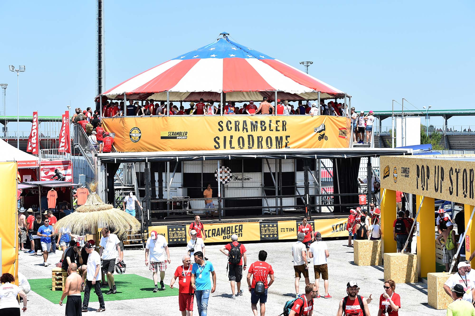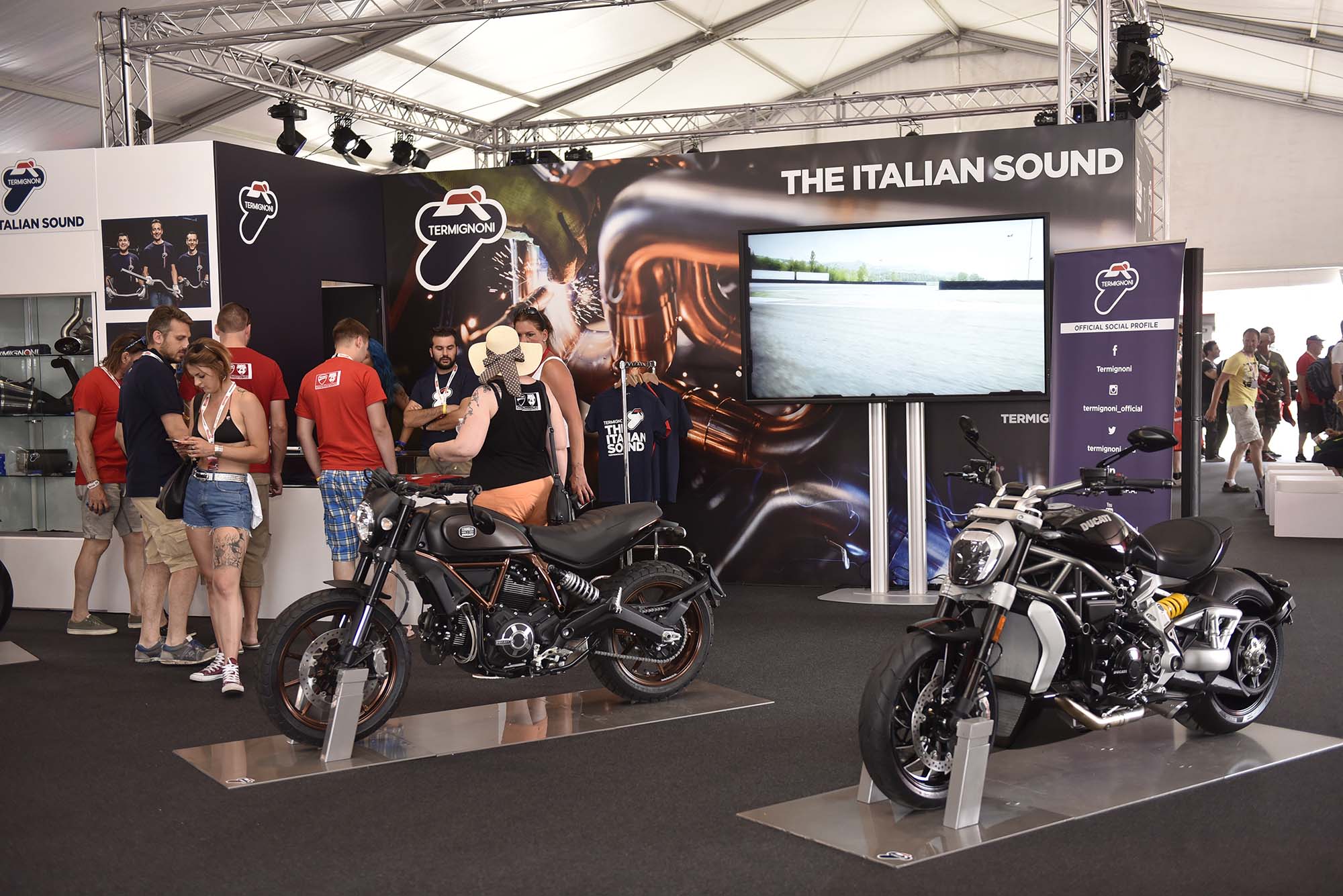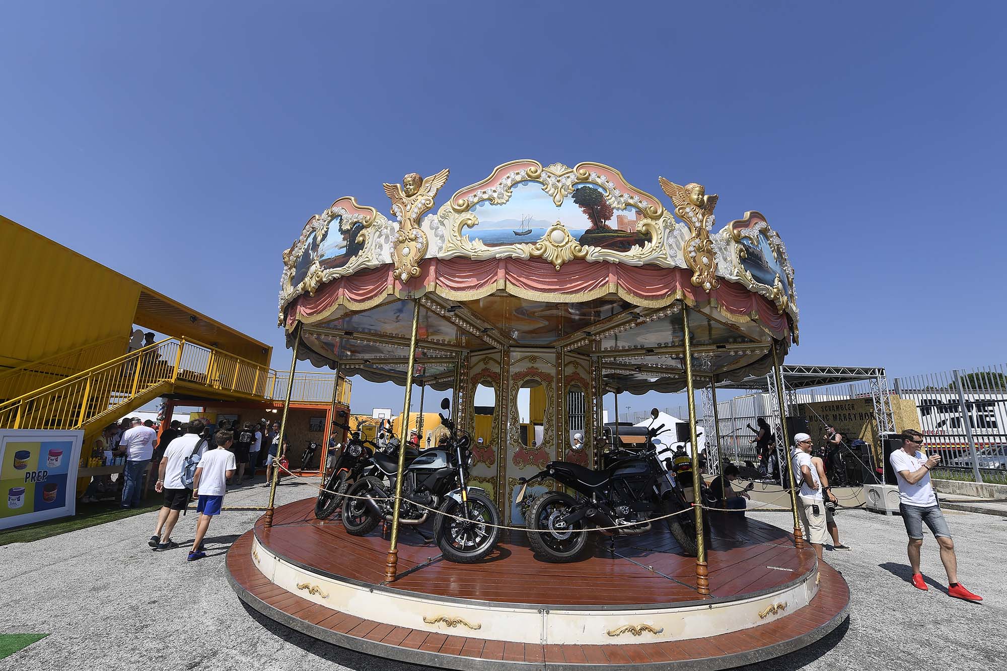 Instead, the Bologna company has created a paddock that gives access to everything that is Ducati. A special Scrambler area promotes the Italian company’s sub-brand, with a Californian beach-like atmosphere that includes a carousel, barbershop, skate park, basketball court, and more.