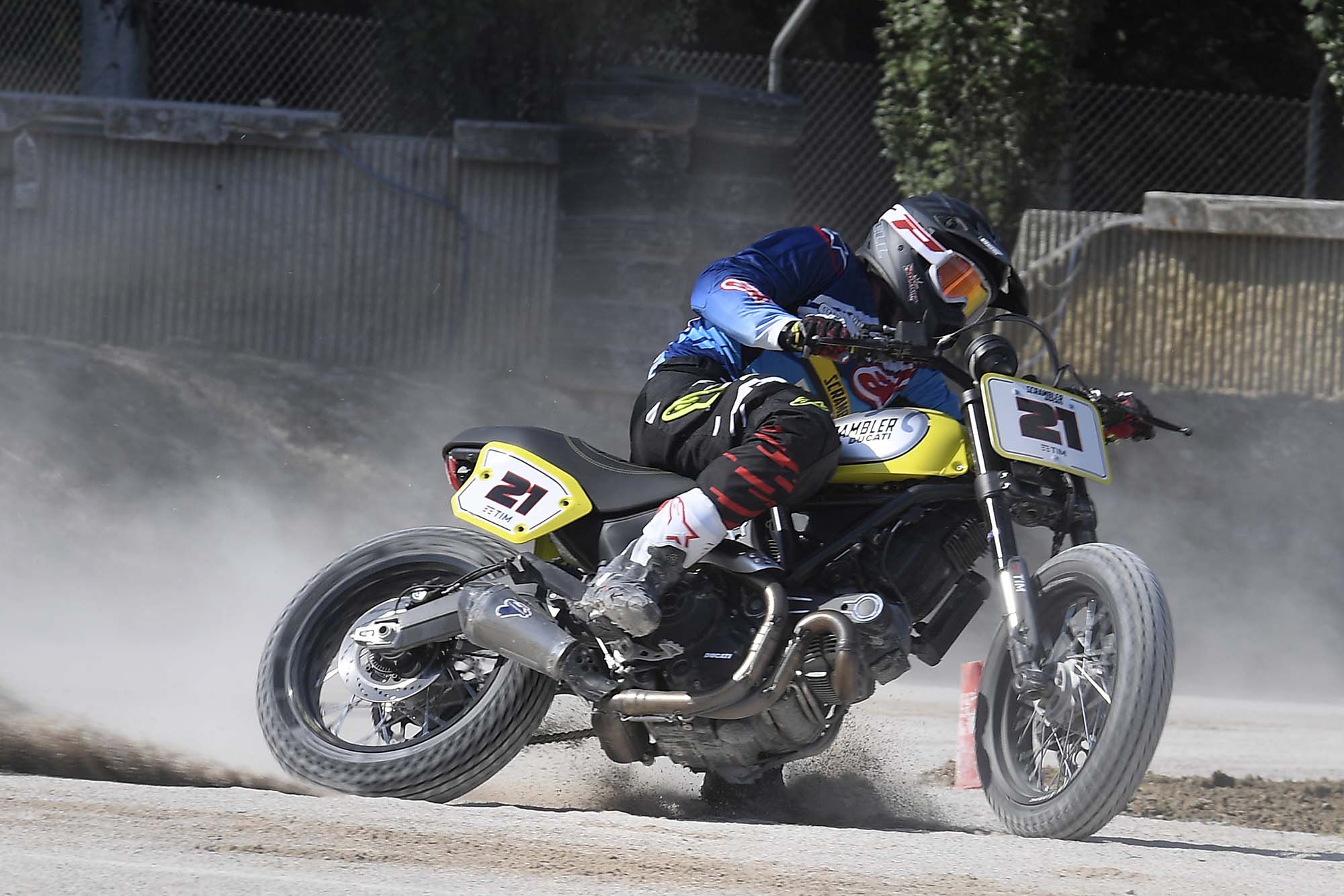 Flat track racing is taking off in Italy, so unsurprisingly the Misano World Circuit built its own TT-styled flat track course in the circuit’s infield. Like Valentino Rossi’s “ranch” just a few miles away, Misano’s flat track course is surfaced with sand instead of dirt.