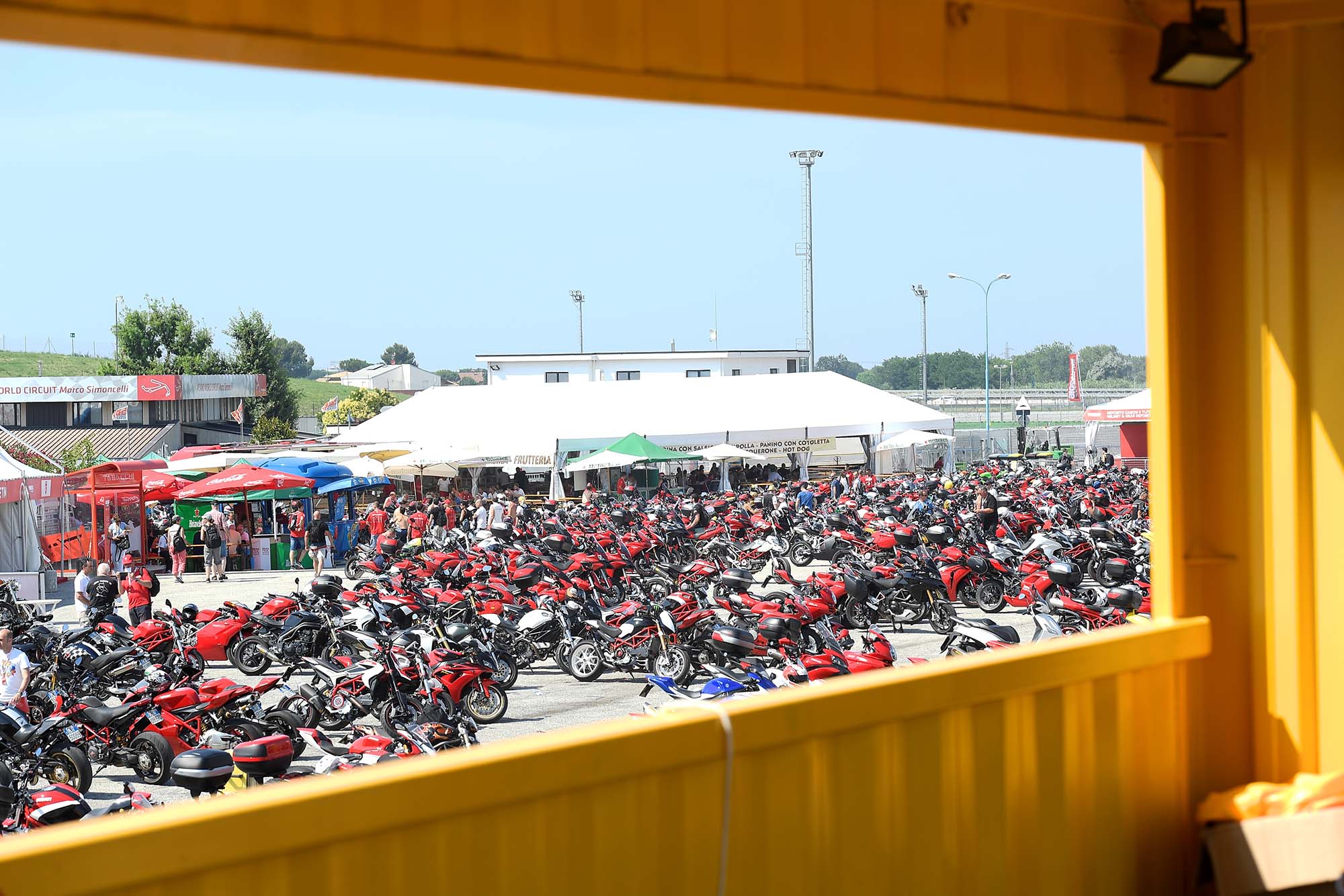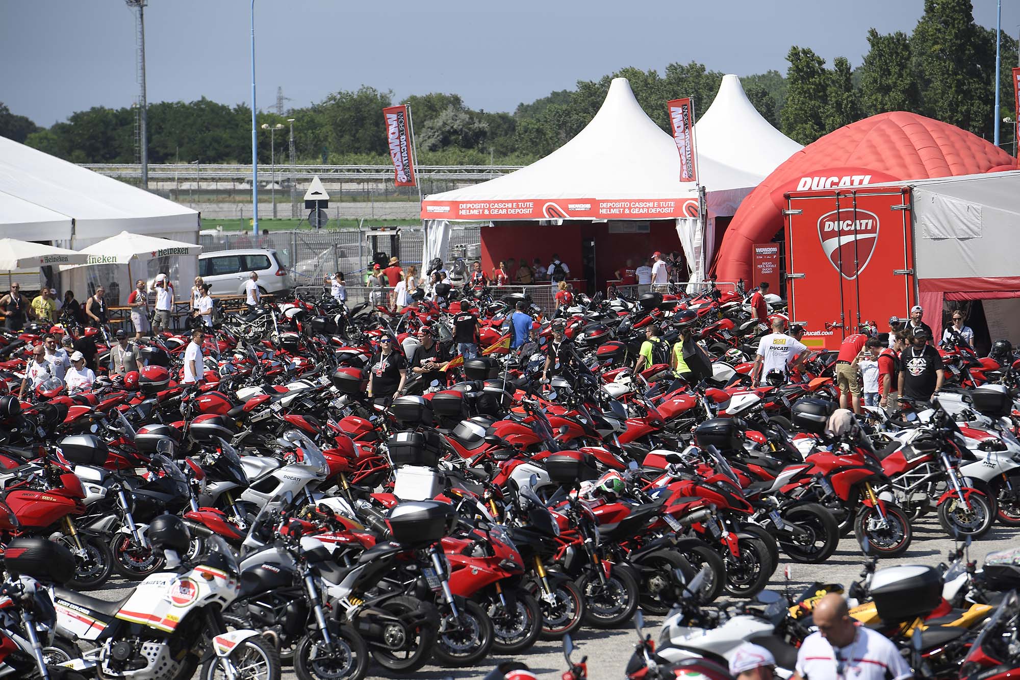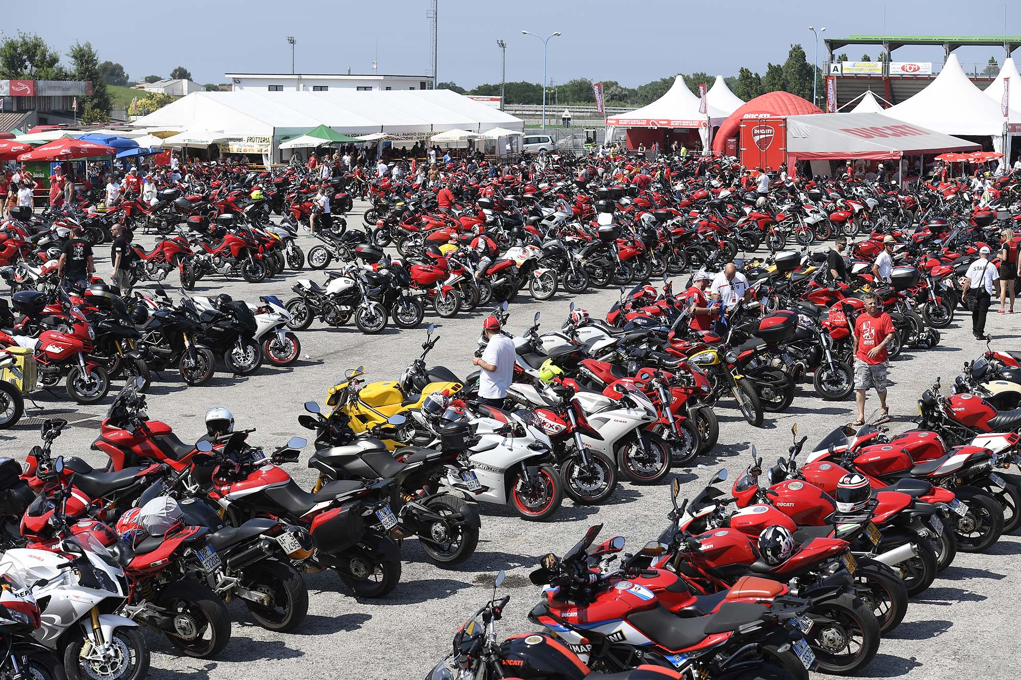 Once you arrive through the gates of the Misano World Circuit Marco Simoncelli, and the first thing that strikes you are the rows and rows of parked motorcycles. I guess you could drive to World Ducati Week, but you’d be one of the few who does.
