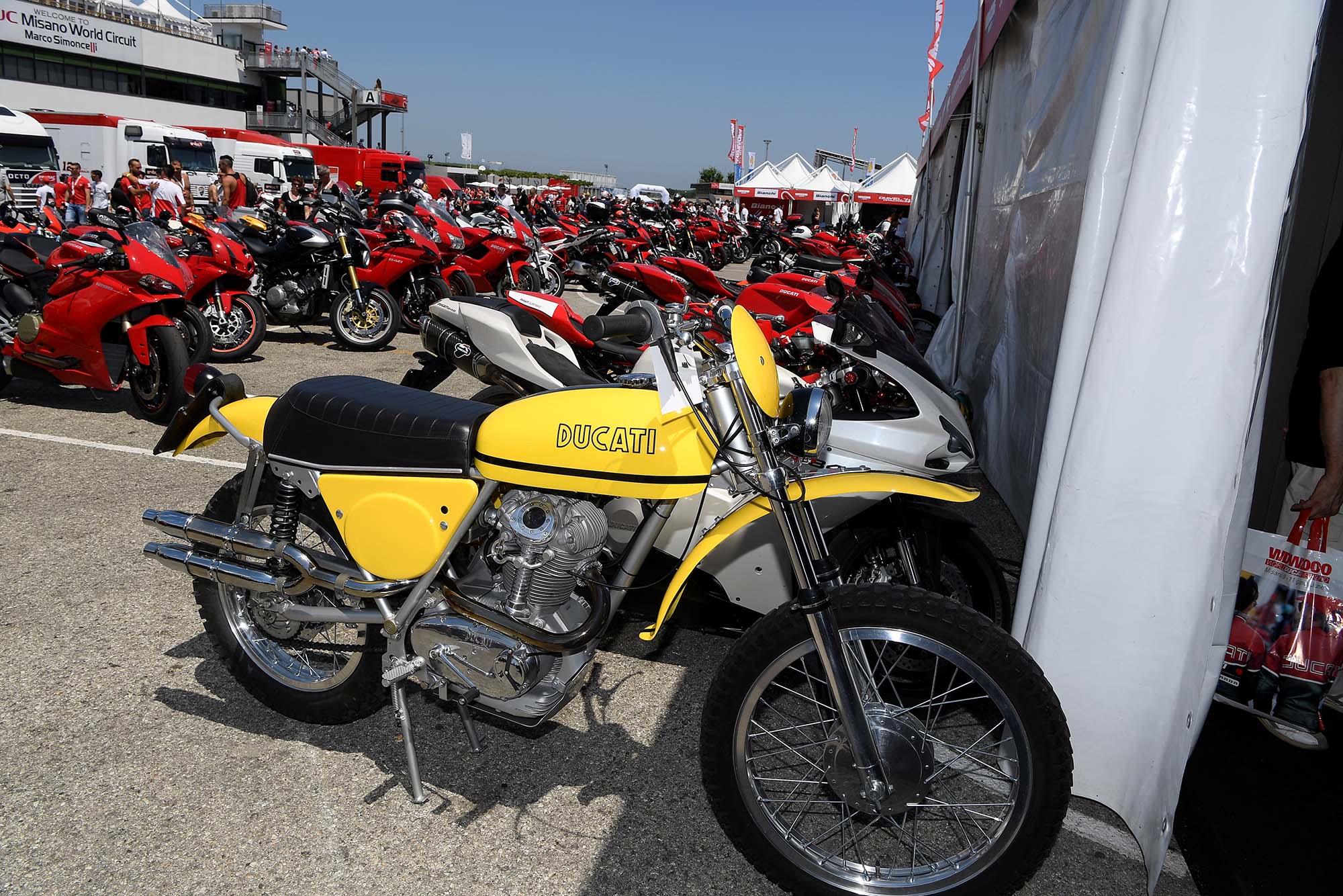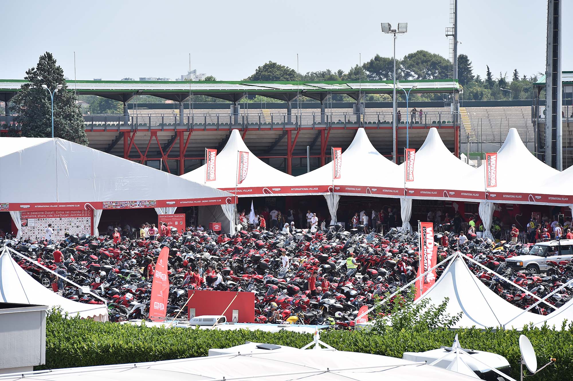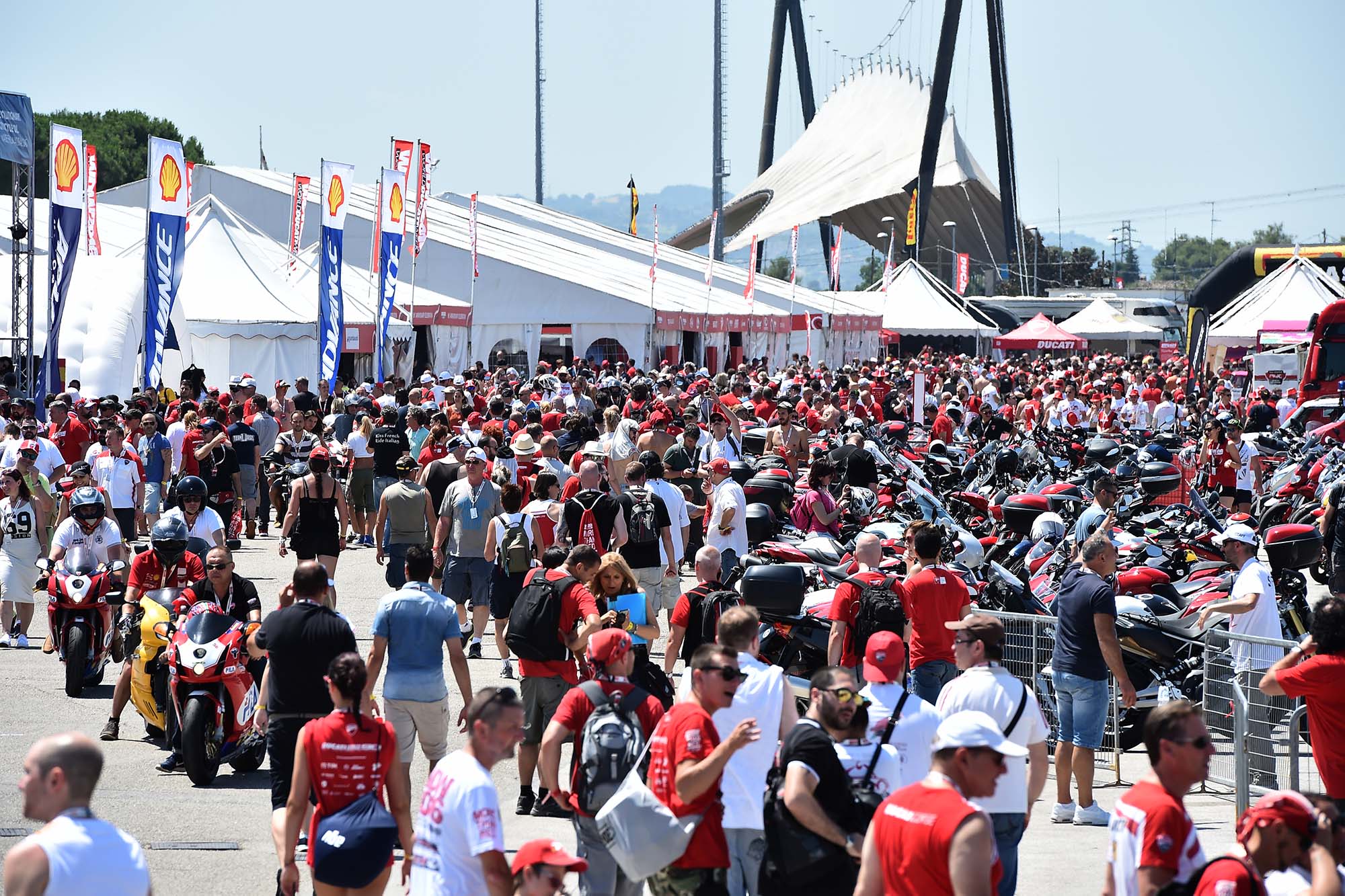 Once you arrive through the gates of the Misano World Circuit Marco Simoncelli, and the first thing that strikes you are the rows and rows of parked motorcycles. I guess you could drive to World Ducati Week, but you’d be one of the few who does.