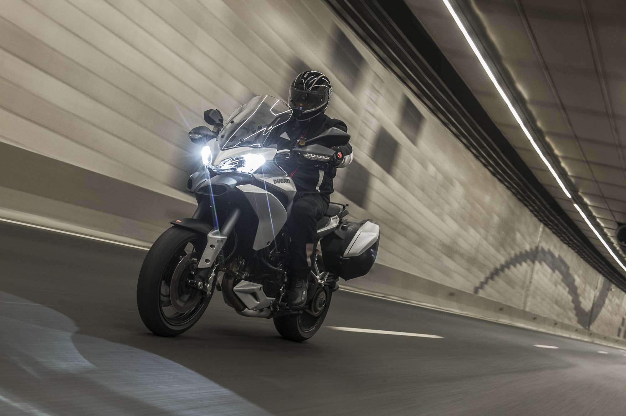 The whole line benefits from the Testastretta 11° DS engine, which features a dual-spark ignition system that gives the MTS1200 a slight mid-range power boost, as well as the LED low-beam headlights. However, the real changes occur at the “S” trim level, which are the first bikes from Bologna to get the Ducati Skyhook Suspension (DSS) semi-active suspension package.