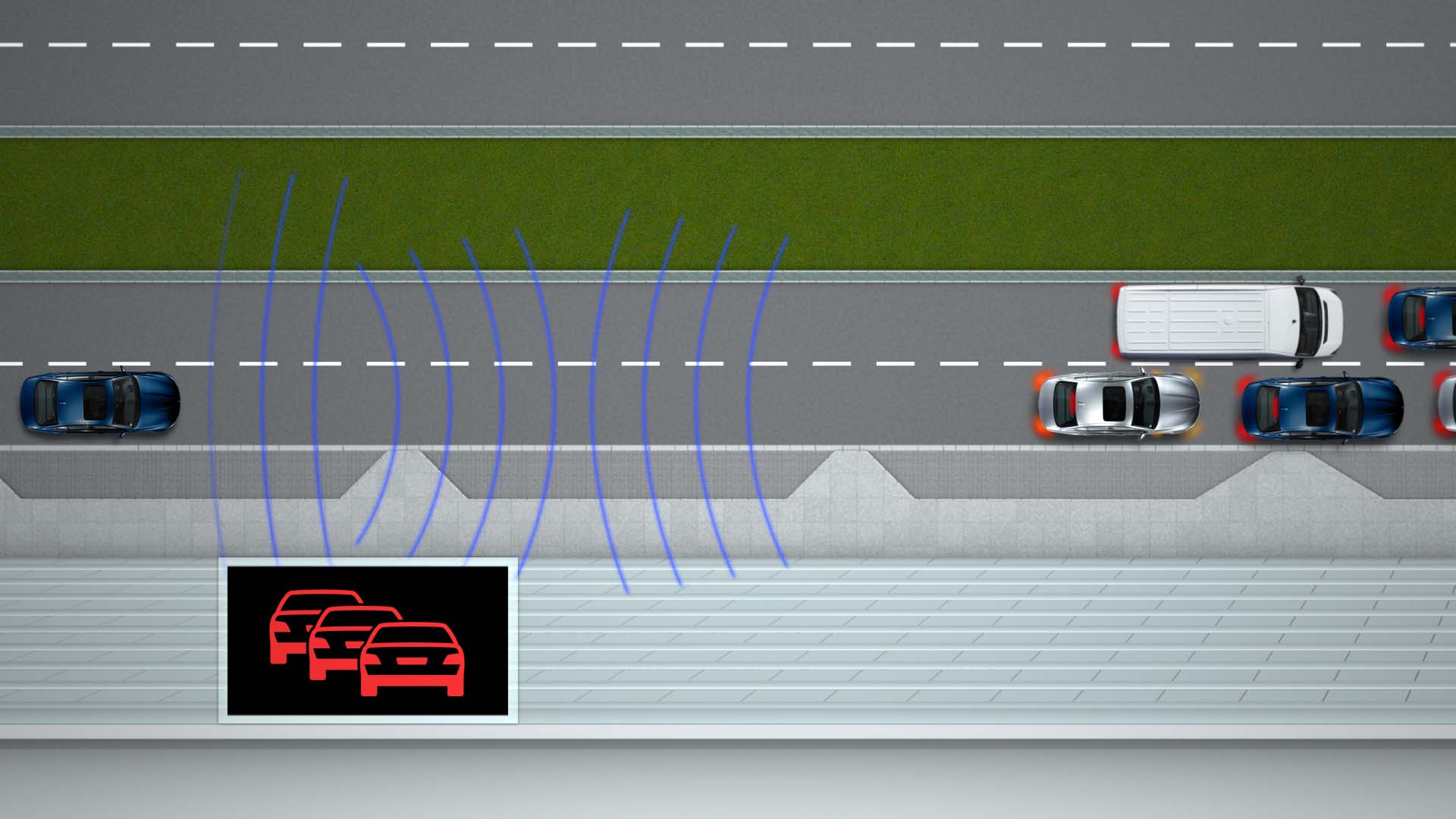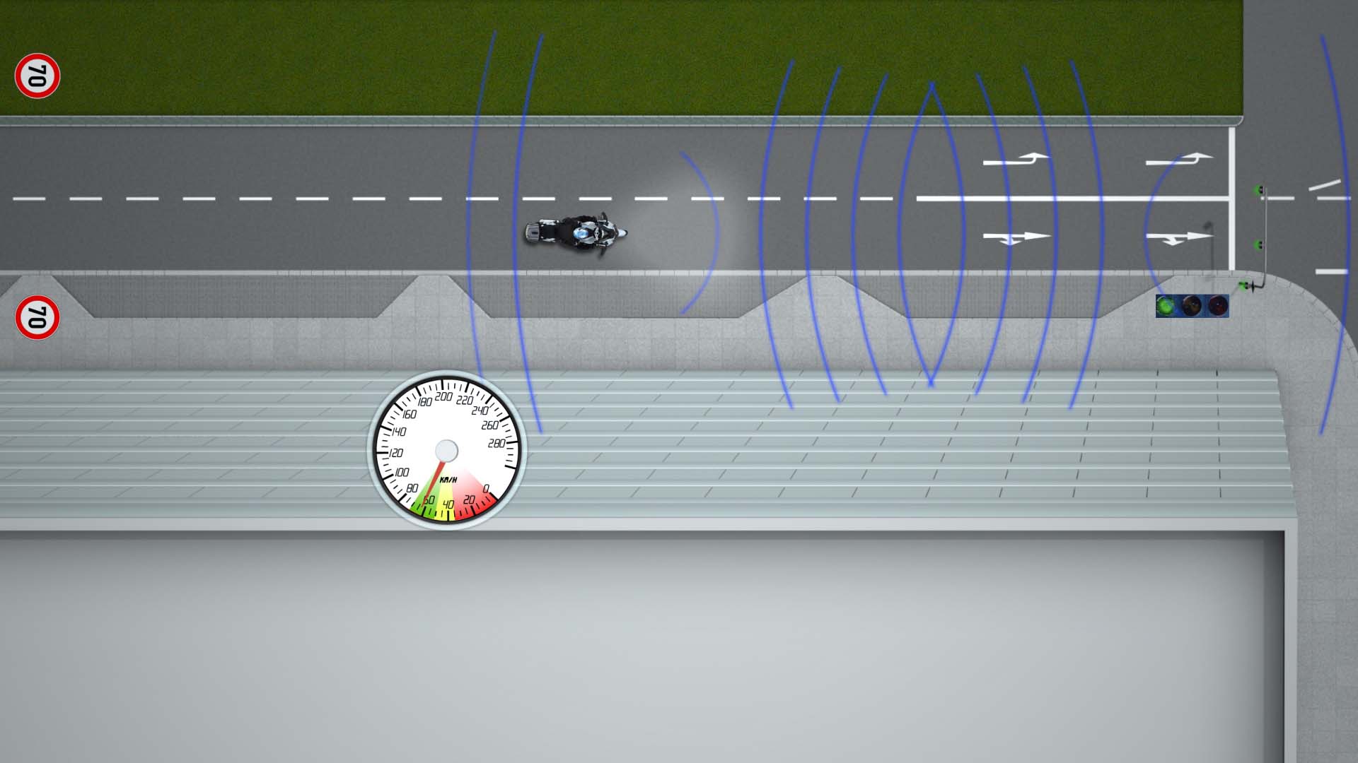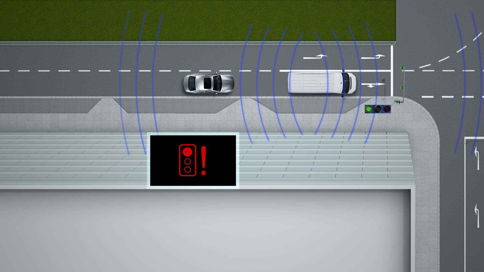 Other benefits from the system also include alerting riders and drivers to when there is a vehicle behind a blind turn, possibly about to enter the lane and cause an accident (it is worth noting that vehicles could also be made aware of oncoming, but unseen, traffic as well).