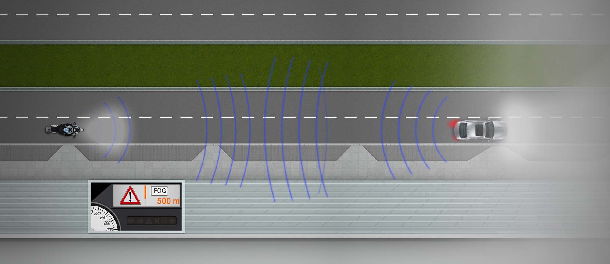 Motorcycles conform to traffic patterns that are different from those used by automobiles. It is entirely possible for an attentive driver to check for a clear lane, and within the time it takes to signal and move lanes, a previously unseen motorcycle can take that space. All the “Look Twice” campaigns in the world cannot overcome the reality that if a motorcyclist puts him or herself in a rightful, but dangerous position, a bad outcome can still occur. But what if cars and motorcycles talked to each other?