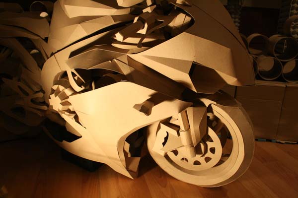 For some time now, Yamaha Japan has had some fun downloadable paper craft sheets that make a variety of paper art motorcycles (if you haven’t made a paper YZR-M1 yet, you are really not living life). Taking that thought a step further, Jack Chen from Australia has made a scale 2007 Yamaha YZF-R1 out of cardboard.