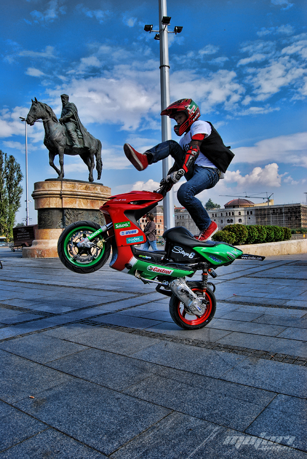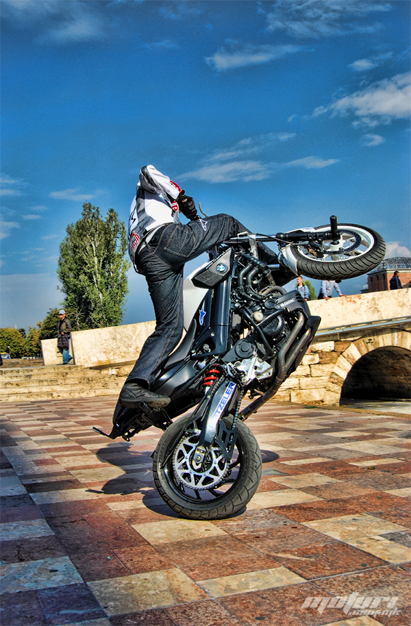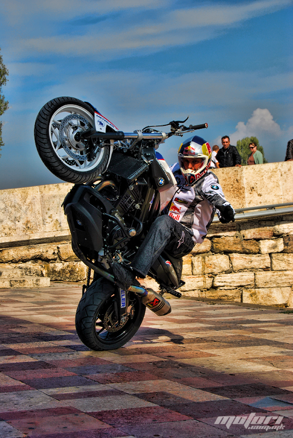 Chris Pfeiffer was in the former-Yugoslavia recently, and our friends at Motori.com.mk were on hand to see the Red Bull rider do his thing on his BMW stunt bike. Along with the usual fun stunting footage that goes with Chris Pfeiffer’s work, the guys at Motori took some HDR photos of Pfeiffer performing for his fans and around the capital city of Skopje, Macedonia. Head over to their site to read the interview (Google translated from Macedonian to English). Thanks for the tip Baze!