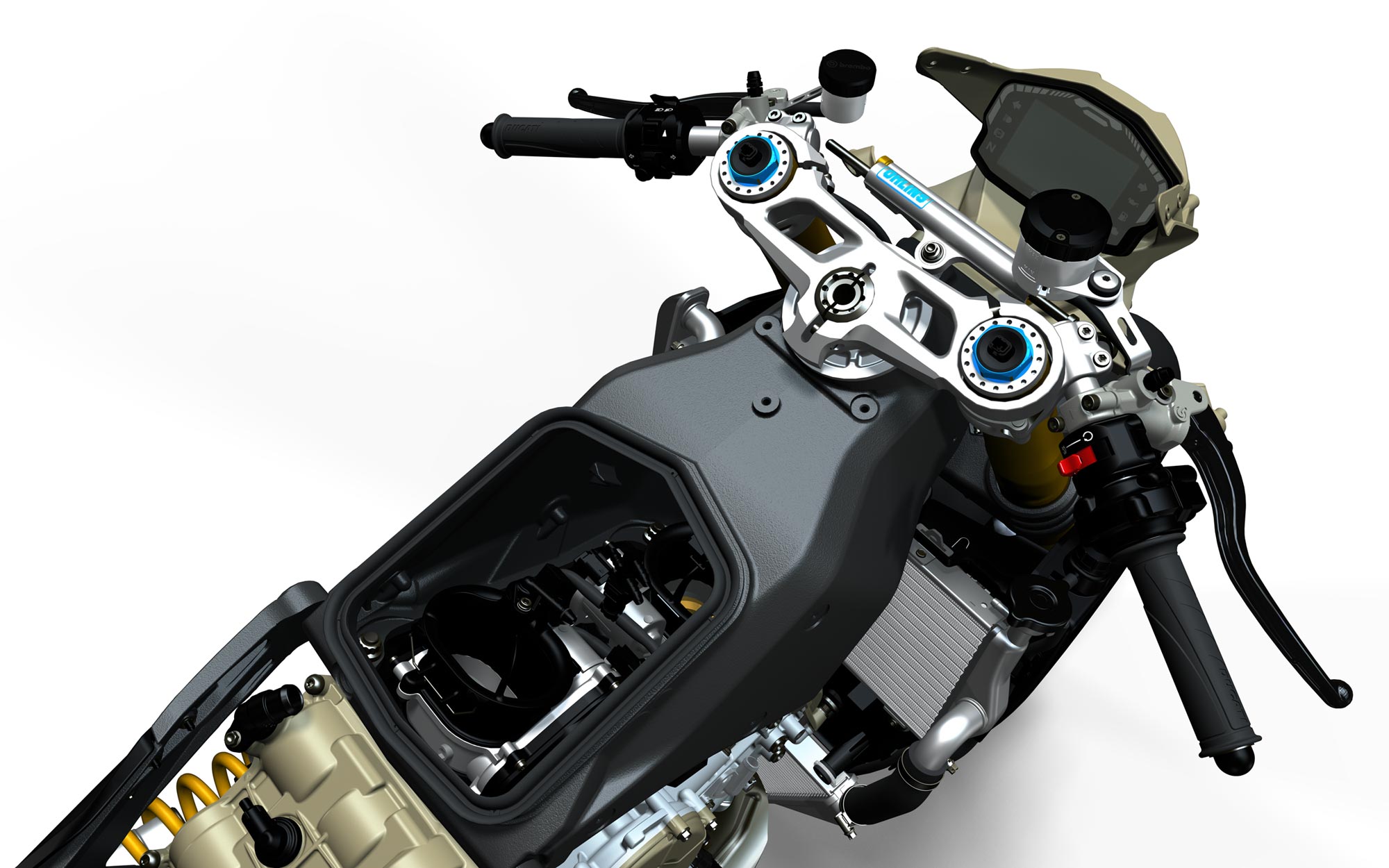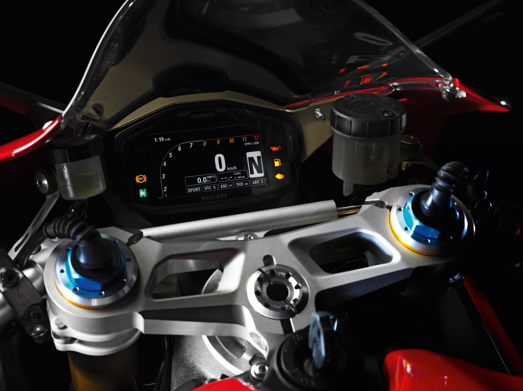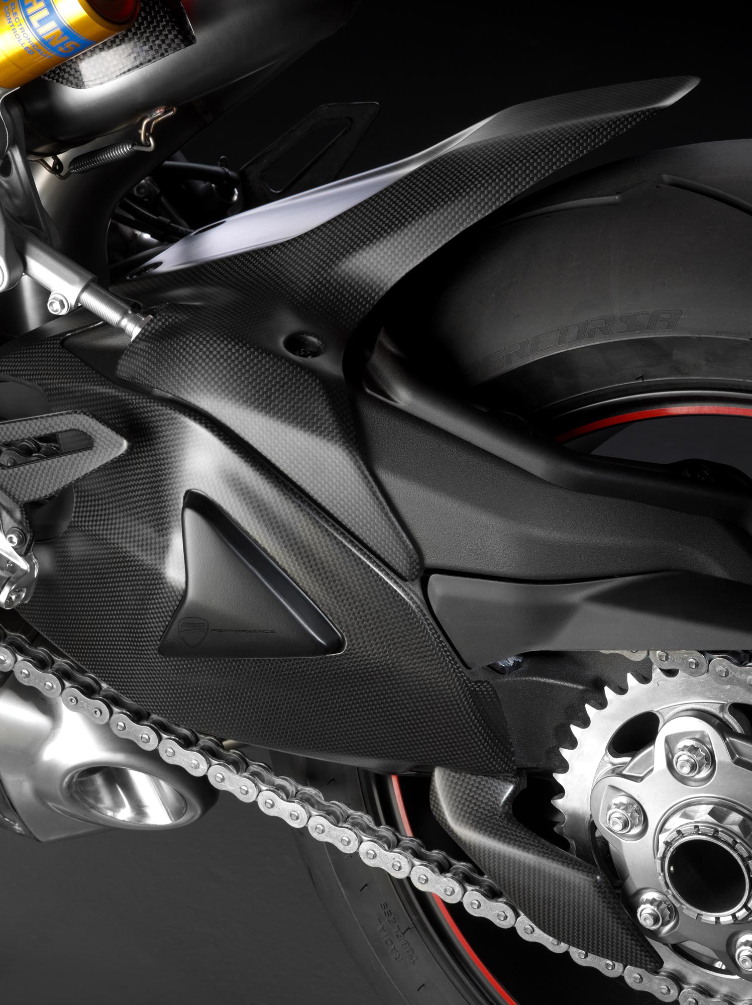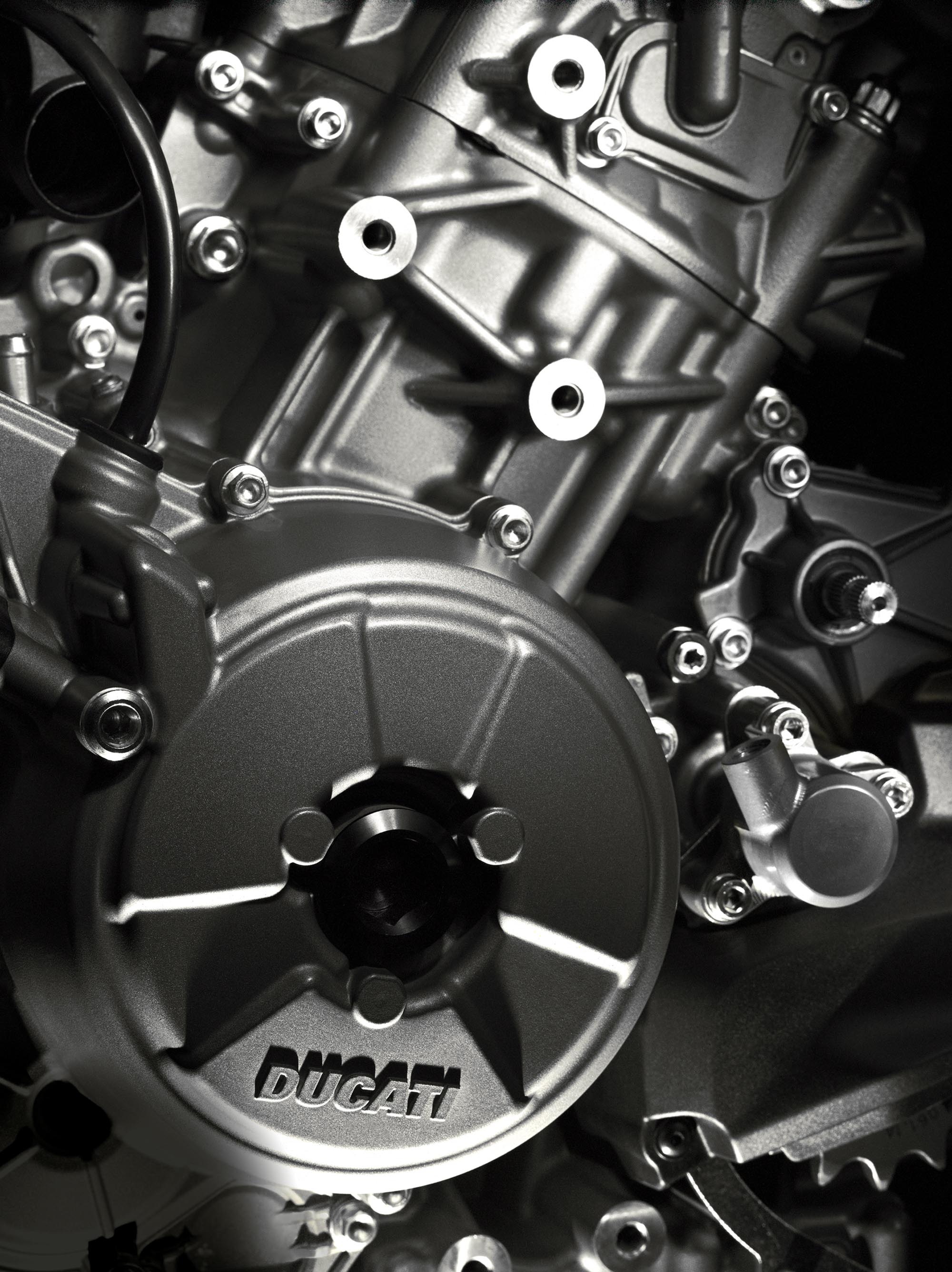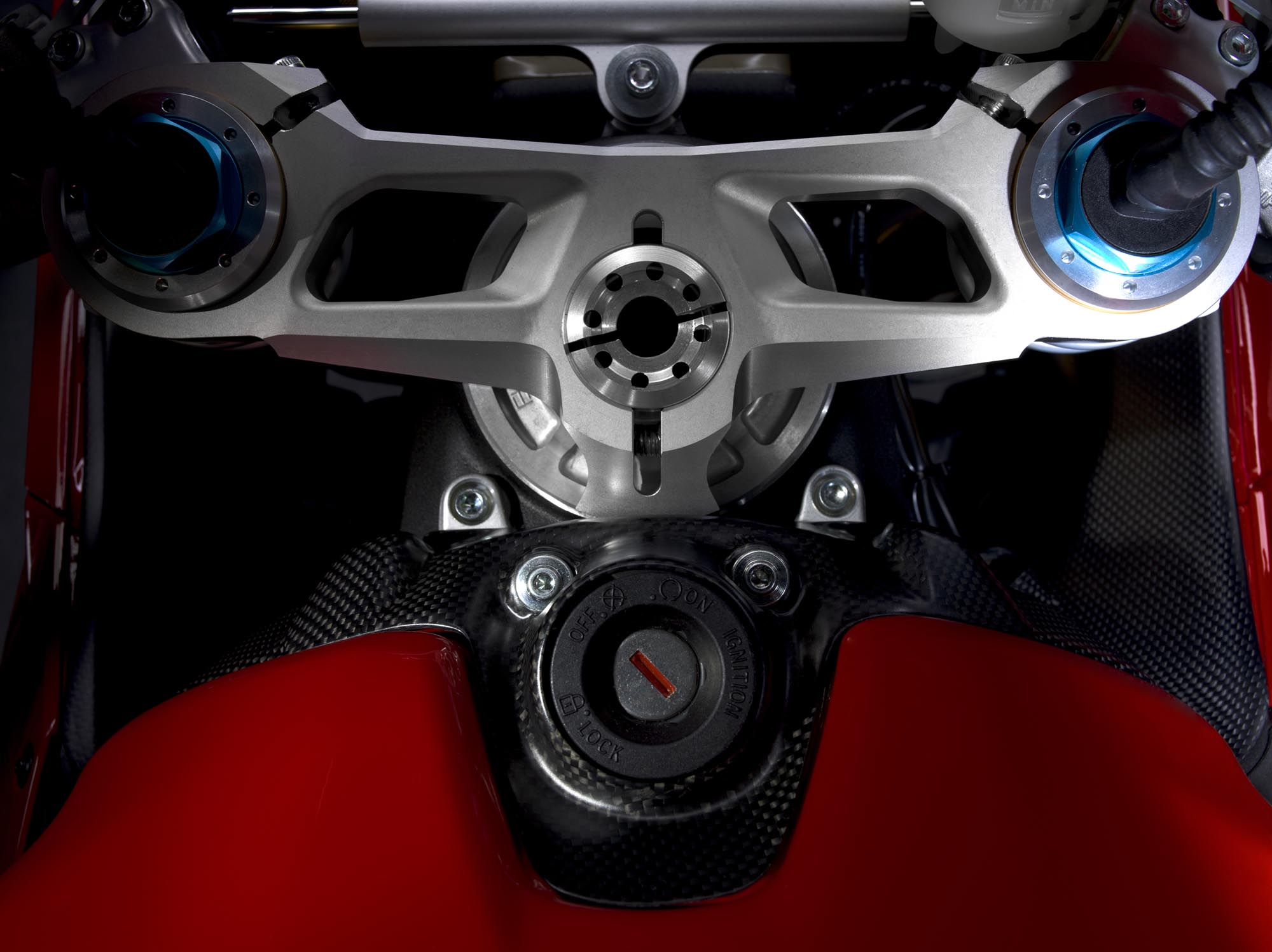 With a hybrid chain/gear-driven camshaft, titanium valves, a wet slipper clutch, a ride-by-wire throttle, rider-selectable “riding mode” system, and 15,000 mile major service intervals, the Superquadro v-twin motor alone is a major step for Ducati with its Superbike engine design. And, if you add in the first full-LED headlight on a produciton motorcycle, the first electronically-adjustable suspension on a sport bike, the first motorcycle engine braking control system, as well as the first GPS-assisted data acquisition system for a production motorcycle, the total package of the 1199 redefines the word “superbike” and takes the next logical technological step forward in this market segment…and we’ve got over 160 images of the Ducati 1199 Panigale waiting for you after the jump.