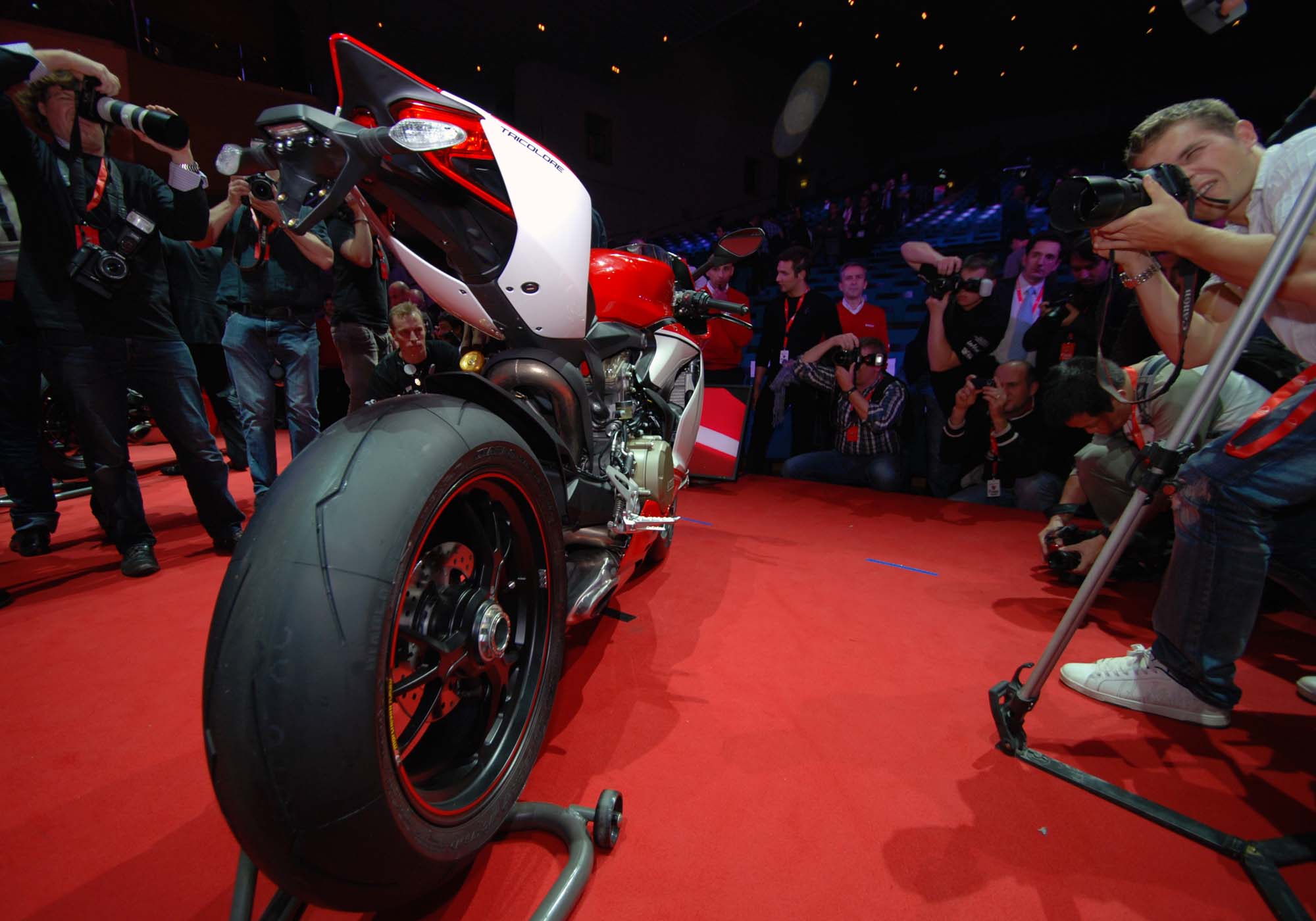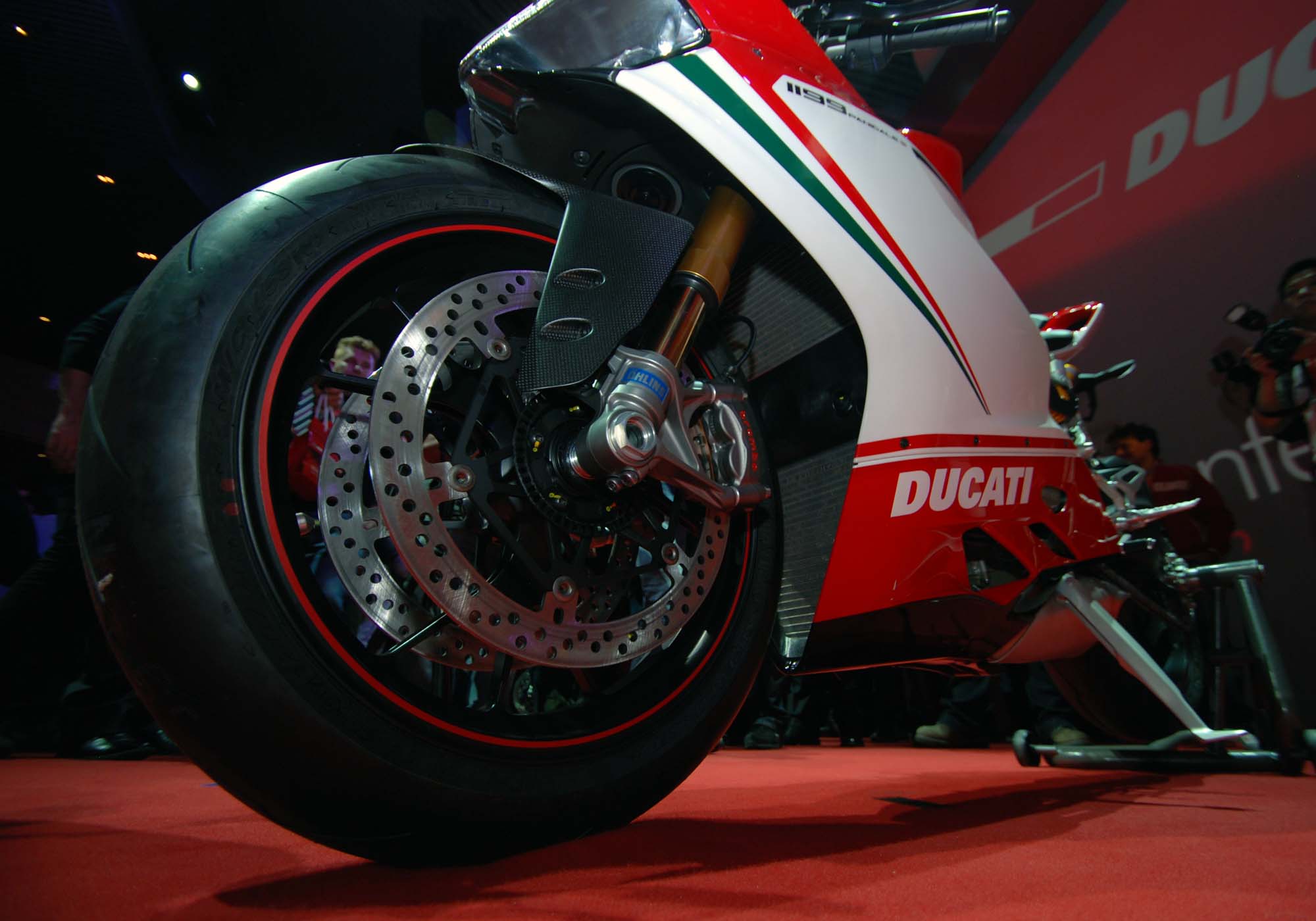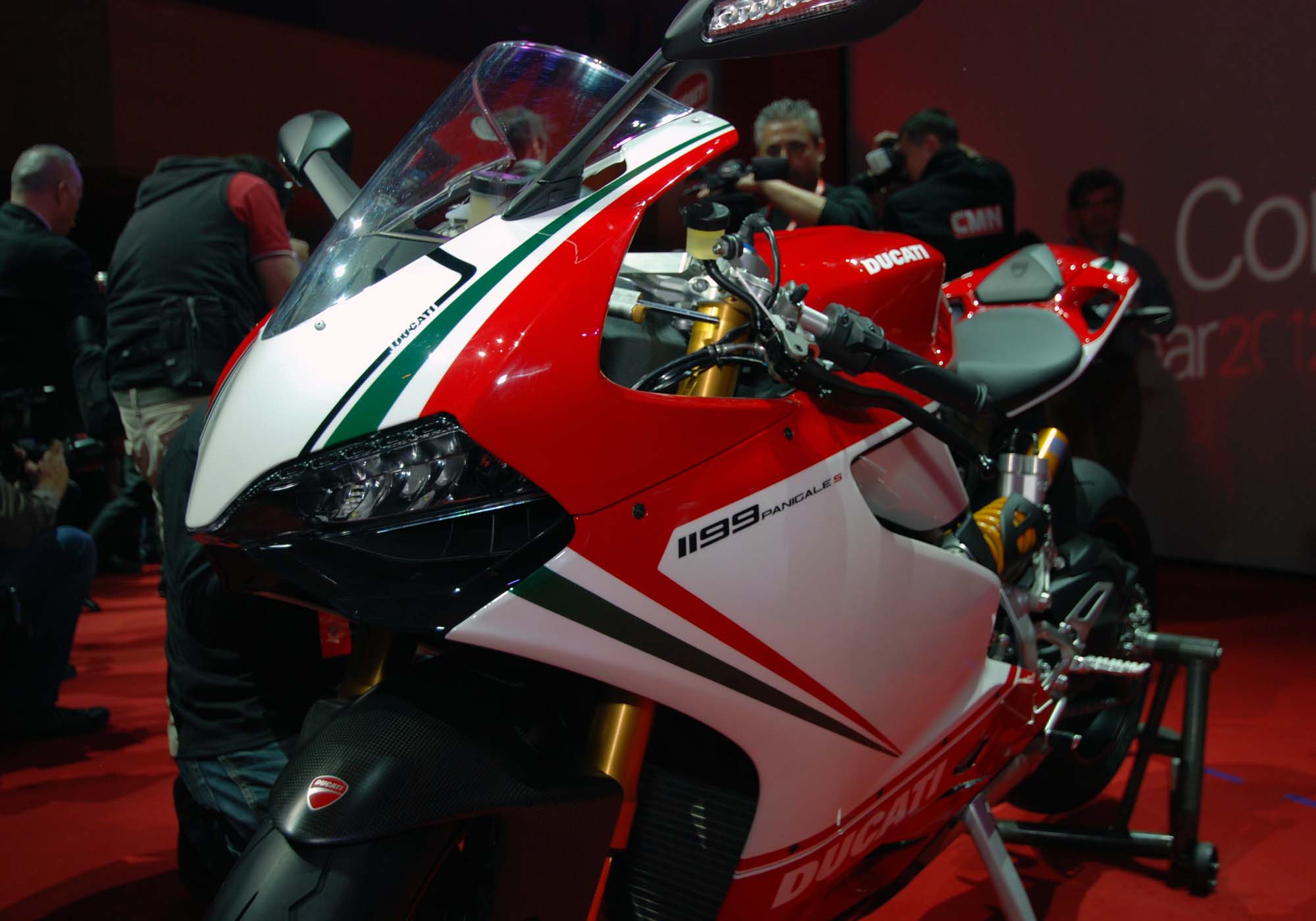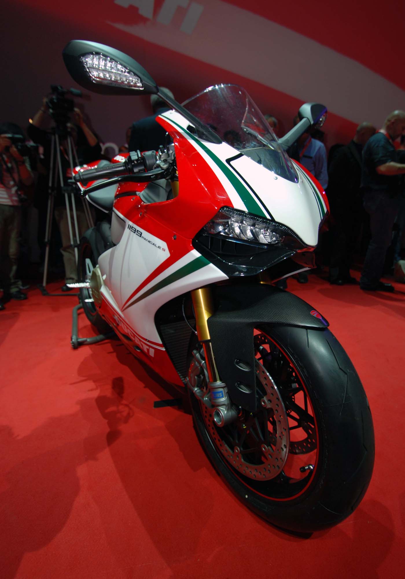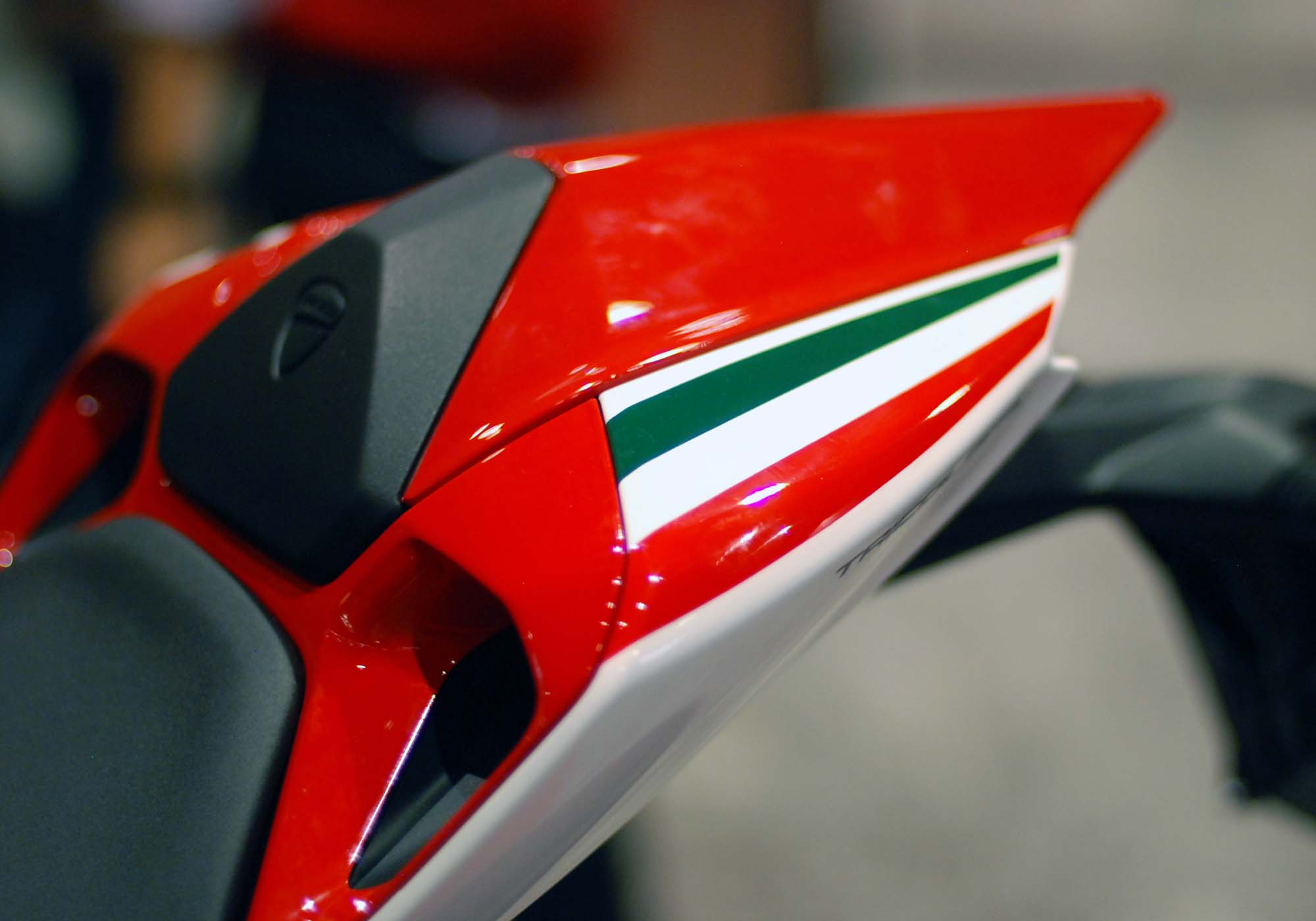 The pinnacle of Ducati’s Superbike offering for 2012 is the Ducati 1199 Panigale S Tricolore. Incorporating the key features from the Ducati 1199 Panigale S, like its traction control (DTC), electronic quick-shifter (DQS), forged Marchesini wheels, and Öhlins-made Ducati Electronic Suspension (DES) front forks and rear TTX shock, the Tricolore package adds anti-locking brakes and the GPS-assisted DDA+ Ducati Data Acquisition system as standard items to Tricolore’s technical list.