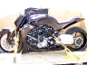 Looking at these photos we can see frame sliders, shift levers, case covers, and brake-disc carriers from Roland Sands, and we wouldn’t be surprised if the headlight and new body panels were the work of the Southern California custom house as well. It’s not clear at this time if these photos represent finalized additions to the Diavel’s aftermarket kit from Ducati, or if they were being crated back up for company approval; but whatever the case may be, we do know for certain that Roland Sands Designs has been involved in the design process with the Diavel.