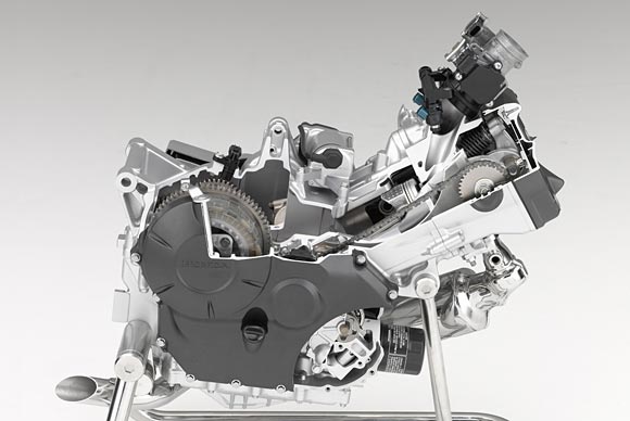 Boasting 40% greater fuel efficiency from other “sport” motors in the 500cc-700cc class, the Integra motor can do 63 mpg (US) according to our rough calculations of Honda’s consumption figure of 27km/L. Perhaps more interesting than its fuel economy, Honda has also stated that the new motor can be coupled to the company’s second generation dual-clutch transmission, the first generation of which can be seen on the Honda VFR1200F.