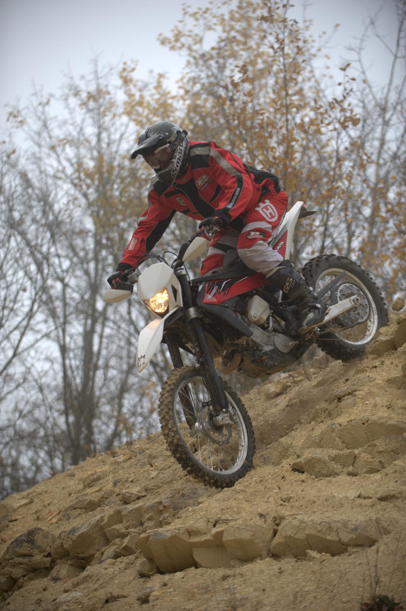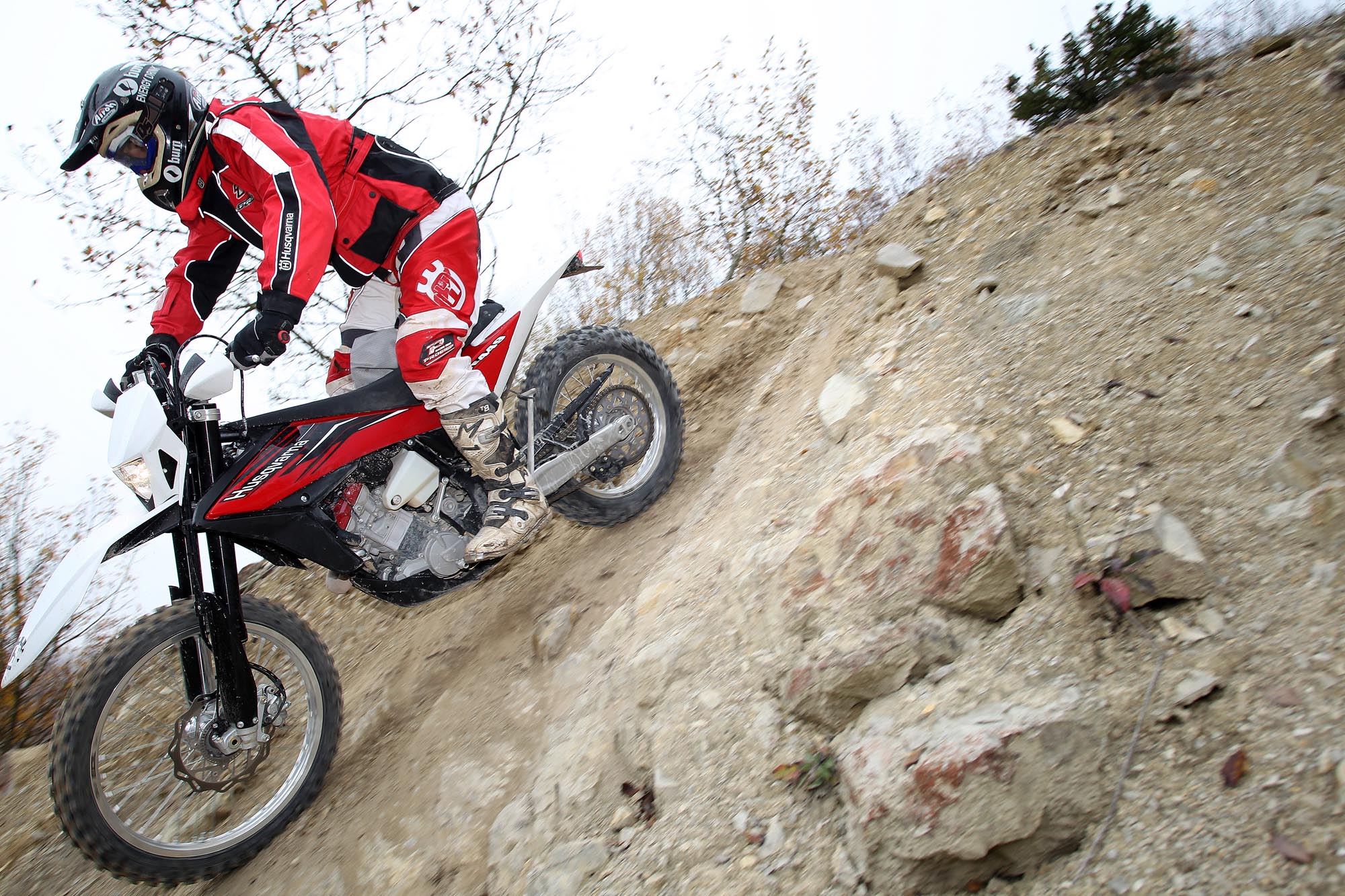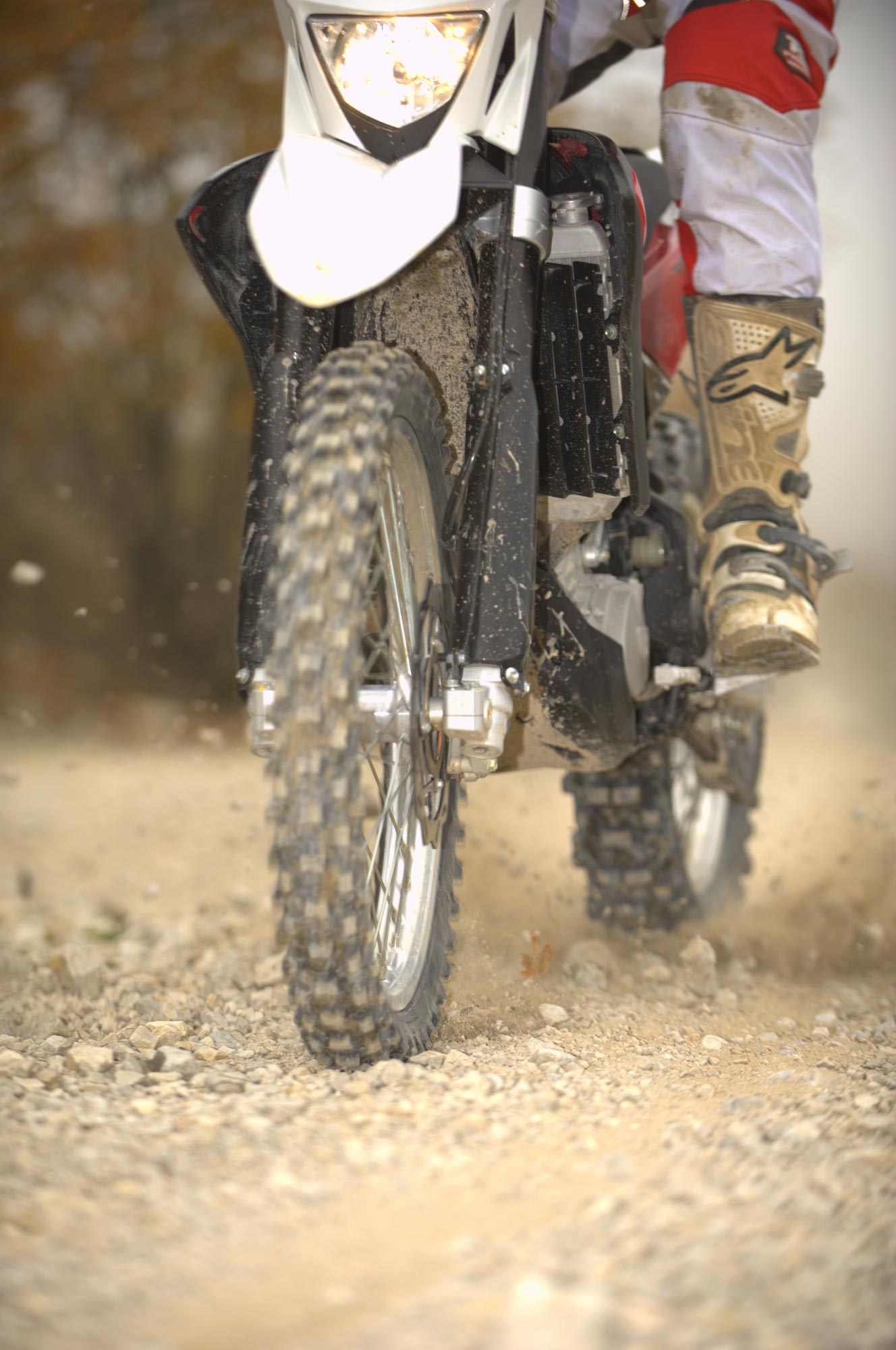 Continuing to prove our “electronics are the new horsepower” hypothesis and fitting the flagship Husqvarna TE 449 with the new off-road ABS technology, Husqvarna hopes to make a statement not only about the use of ABS in off-street conditions, but is taking things a step further by putting anti-lock brakes on a race-bred dirt bike. The key to the off-road ABS technology from Husqvarna is two-fold. First, Husqvarna’s dual-channel ABS still allows for the rear tire to be locked-up while under heavy braking (this can also be achieved on the S1000RR’s ABS package under the “slick” mode setting). Second, the system, like its road-going counterpart, is extremely light, and only adds 1.5kg (3.3 lbs) of weight to the bike.