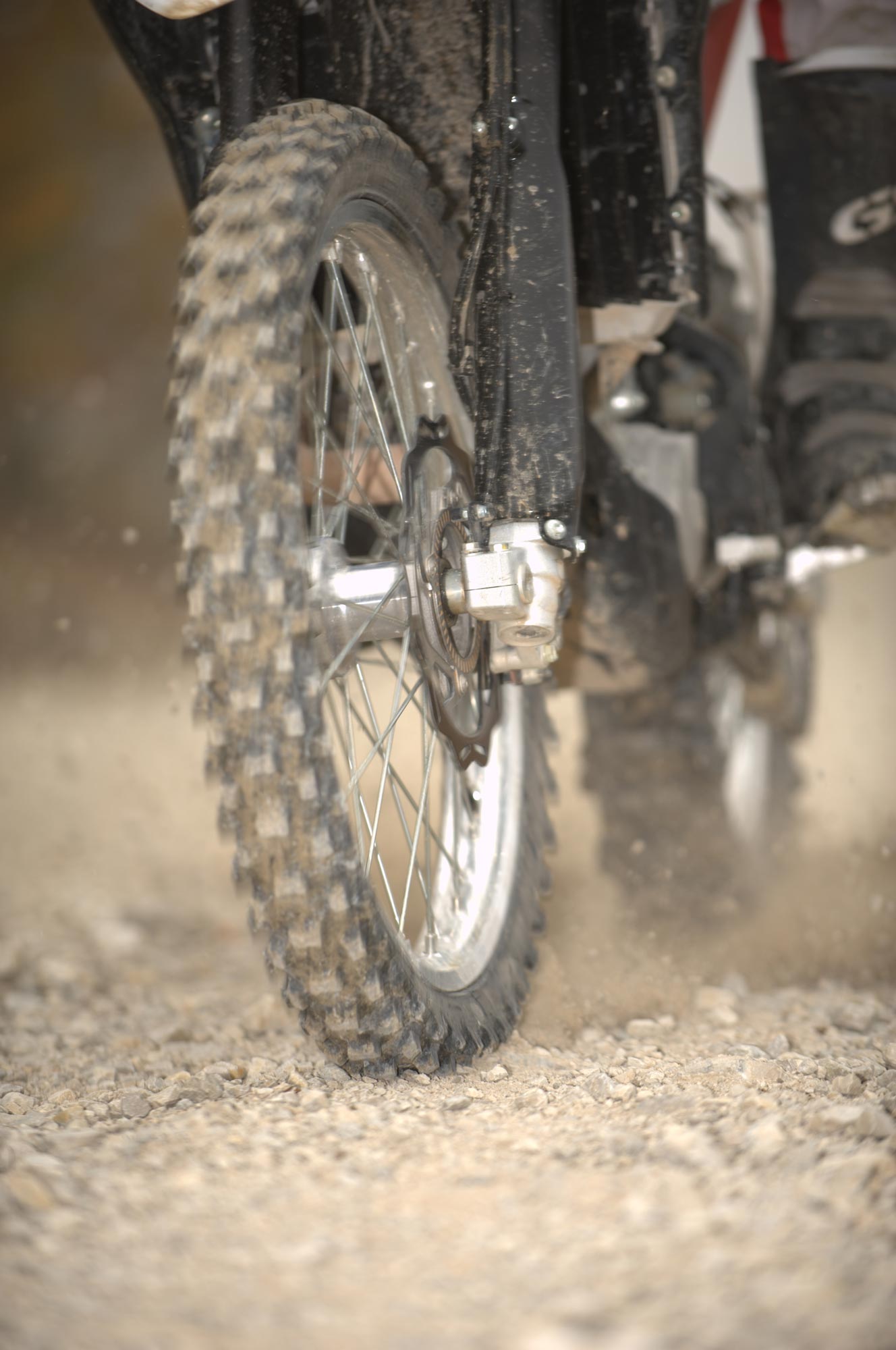 With two wheel sensors, one for each wheel, BMW/Husqvarna’s ABS system can analyze wheel lock on the front and rear wheel separately, and adjust braking power accordingly. This dual-channel system is the key component to making ABS work in off-road situations, as it allows the anti-lock braking systems to pulse the front wheel brakes, while leaving the rear either open or locked, depending on the rider’s inputs.