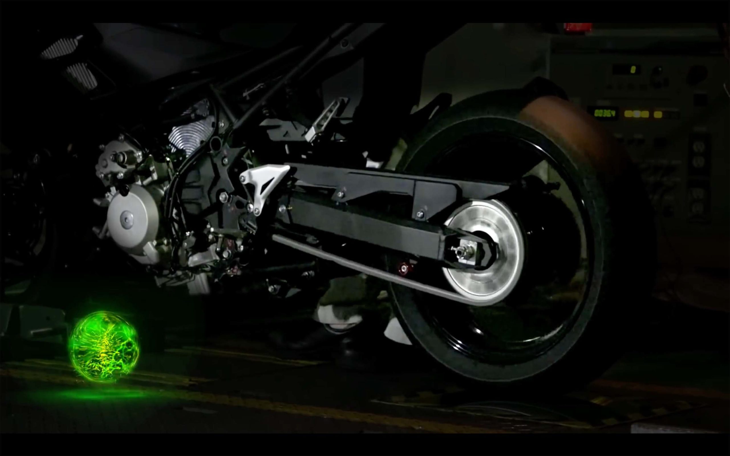 First off, we get to see the Kawasaki hybrid-electric motorcycle prototype spinning on the dyno, which has a noticeably different sounds once the electric motor kicks into gear, and shows that Kawasaki is fairly far along with its hybrid efforts.