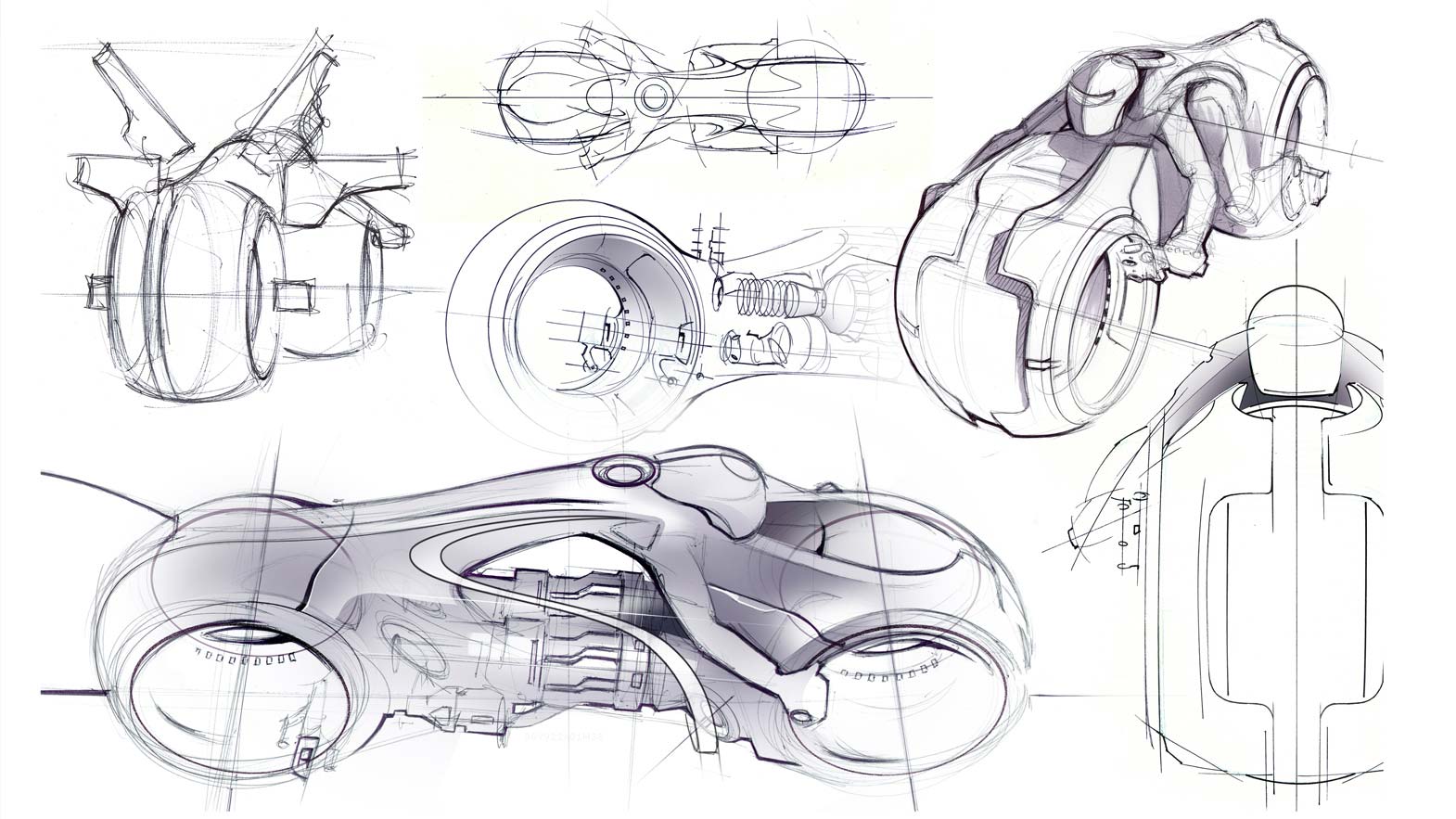 While we try and contain ourselves from giggling like little schoolgirls, technology news blog TechCrunch got a chance to sit down with Daniel Simon, the designer of the new Tron lightcycle (you might remember Simon from his renowned Cosmic Motors work), and ask him about revisiting the lightcycle design (air flaps!) in Tron: Legacy. That interview and a boatload of Tron: Legacy concept sketches are after the jump.