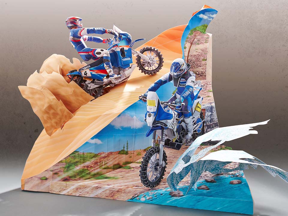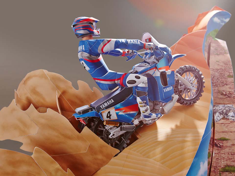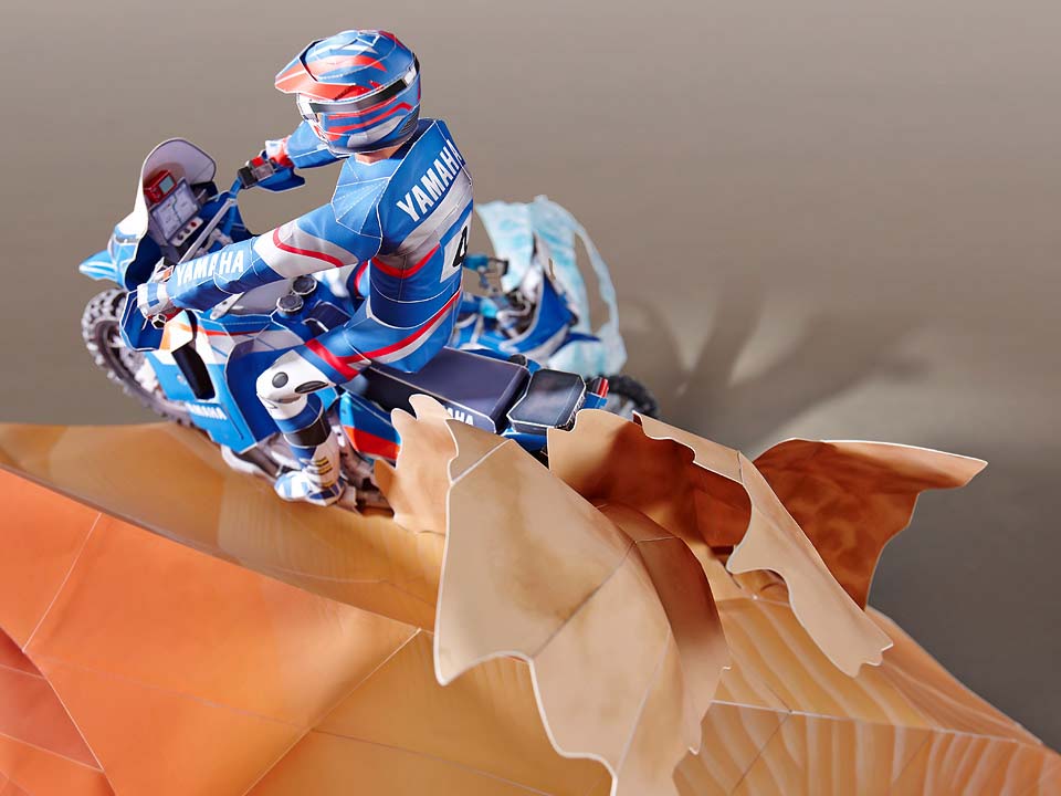Yamaha’s papercraft projects are perhaps the most unique marketing pieces to come from any of the motorcycle manufacturers, and they are also some of the most impressive. Focusing on the upcoming Dakar Rally, Yamaha has made a set of papercraft rally raid machines, complete with riders and scenery.