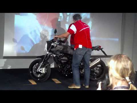 These are the first images of the Husqvarna Nuda 900R motorcycle (taken by our good friends at OmniMoto), the Swedish brand’s first foray into the street bike scene. Making over 100hp and weighing less than 385 lbs, the new Husqvarna will hit dealer floors by the end of the 2011 (hopefully by then they’ll have the spec-sheet ironed out a bit more). What technical specifications we do is this: 320mm Brembo disc brakes, fully adjustable 48mm Sachs forks, and a fully adjustable Öhlins rear shock. Check out the photos and video from the unveil after the jump.