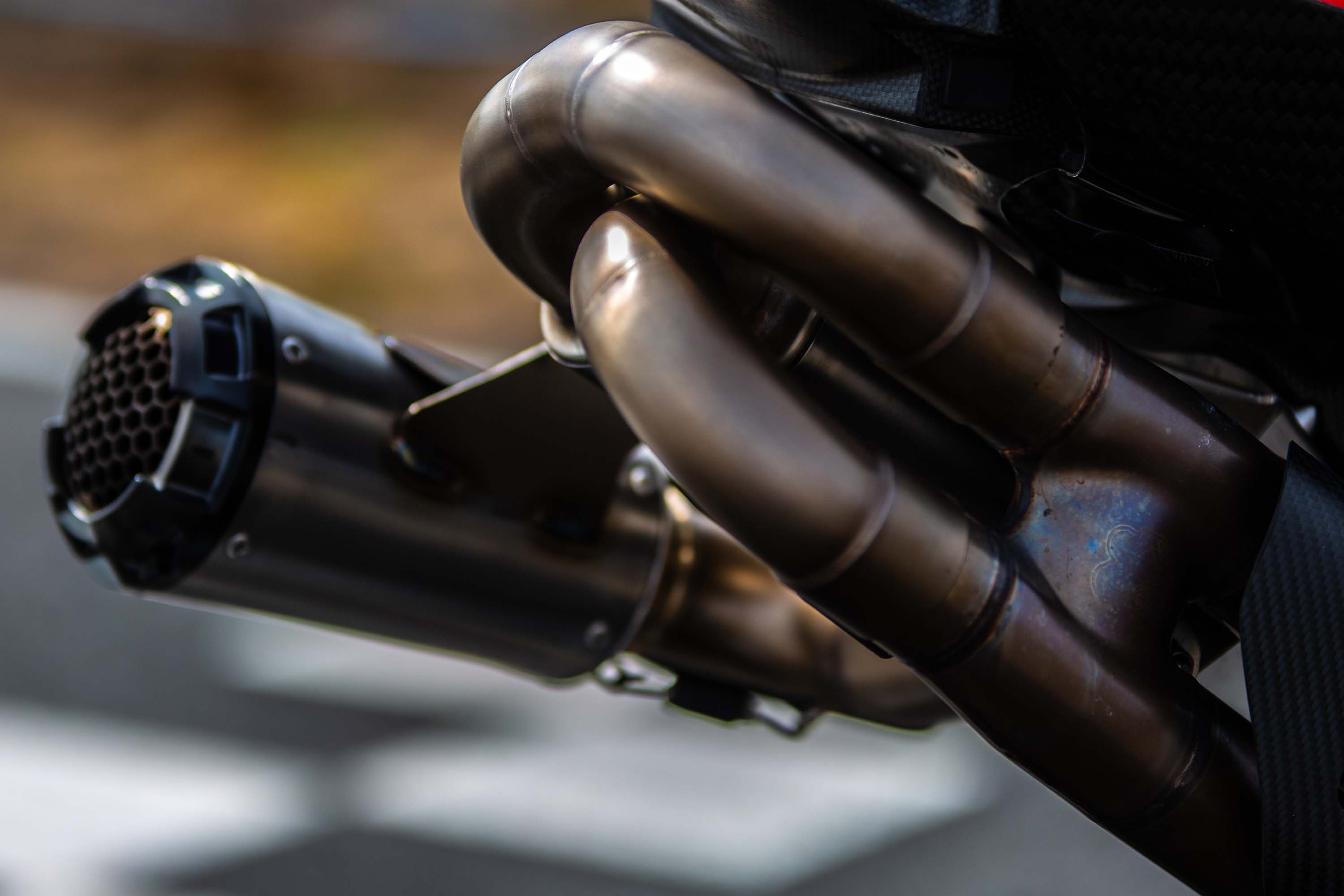 A Termignoni unit, the pipe’s long structure wraps under the tail in parallel, giving added length to the machine’s exhaust tract. This helps tune the back pressure for more torque at lower rpms, at the cost of horsepower on top.