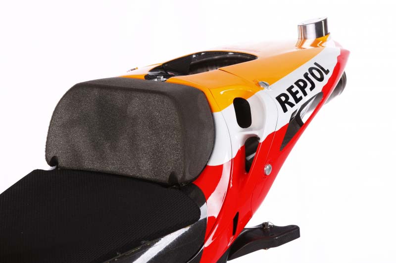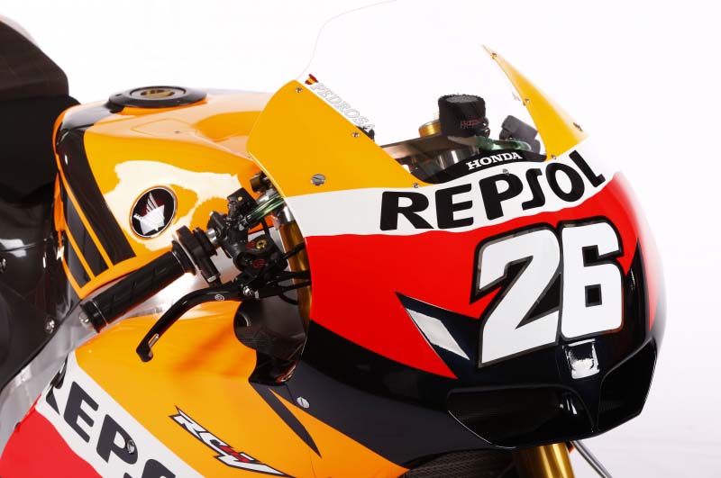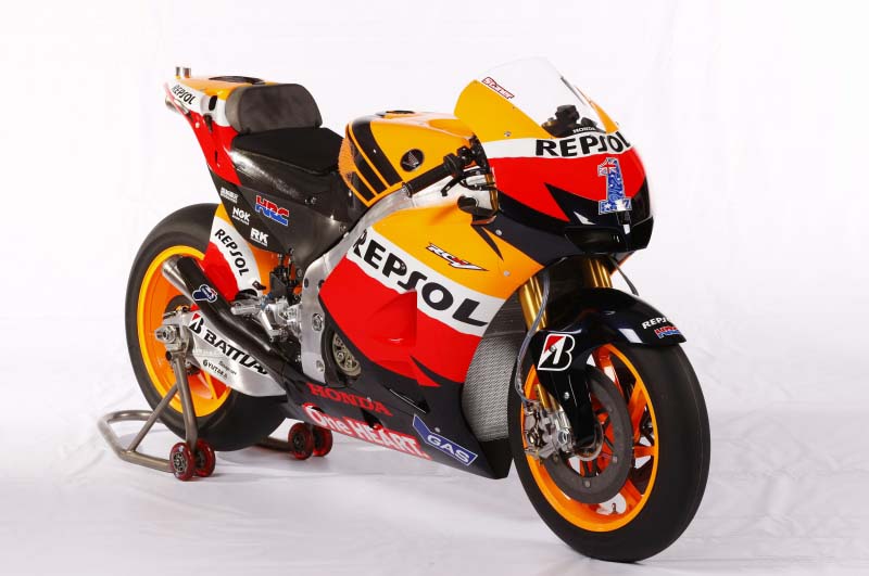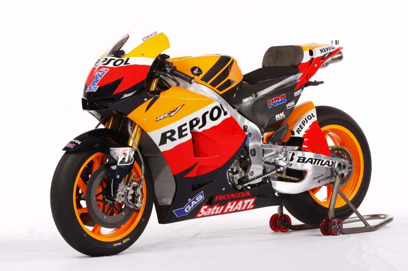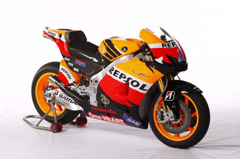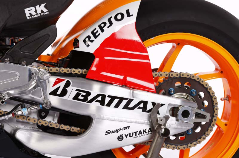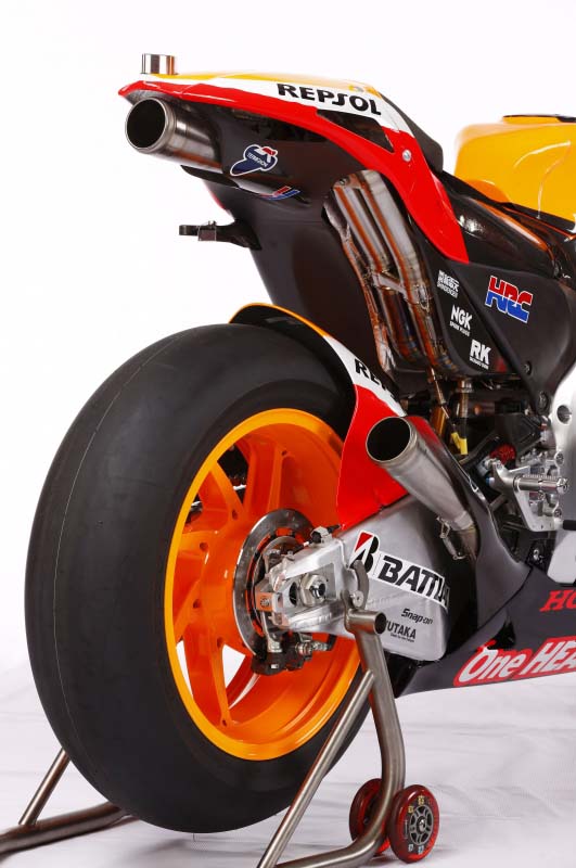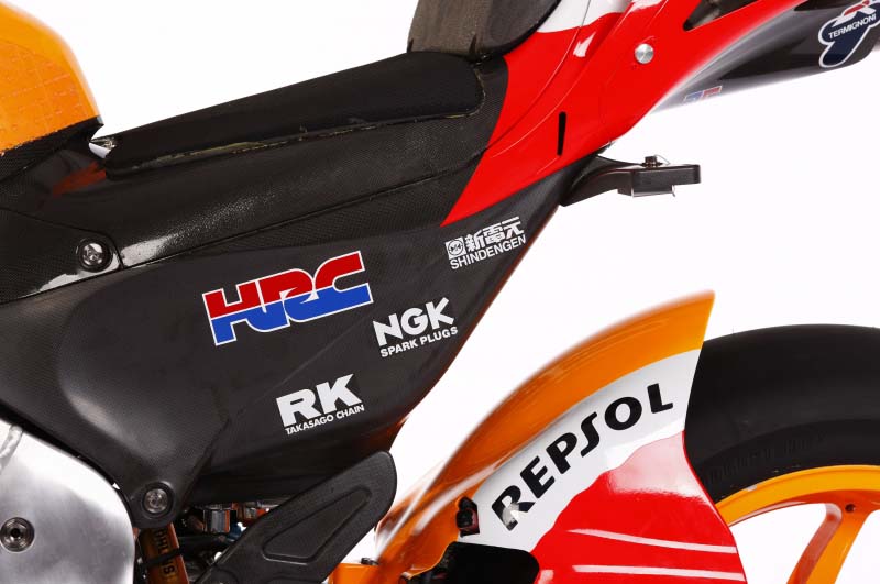 “The engine and chassis were developed last year because of the regulation change. We kept the same concept from the last year’s 800 machine,” explained HRC Executive Vice President Shuhei Nakamoto. “We expect this machine to be competitive enough to win the championship again this year. Even with the 800 machine you must reduce the power from first through fourth gear. With the 800, fifth gear, sixth gear, we could use the full power, then in a straight line.”