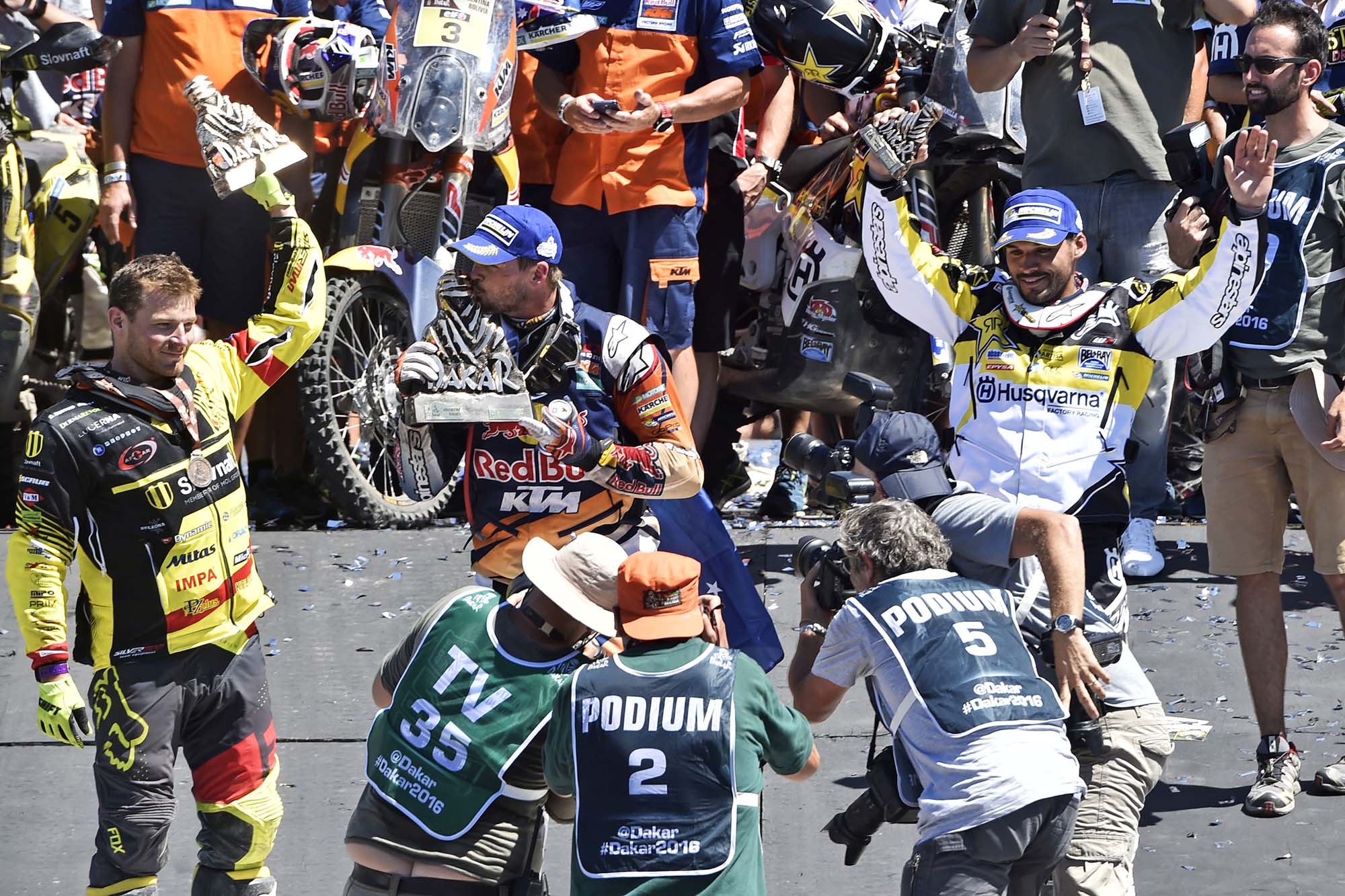 Accompanying Price at the podium celebration was fellow KTM rider, Stefan Svitko. The Slovak rider stunned the status quo with his non-factory effort, and rode a smart rally this year. Svitko won Stage 10, and was a Top 5 finished in 9 of the 13 stages in the 2016 Dakar Rally.