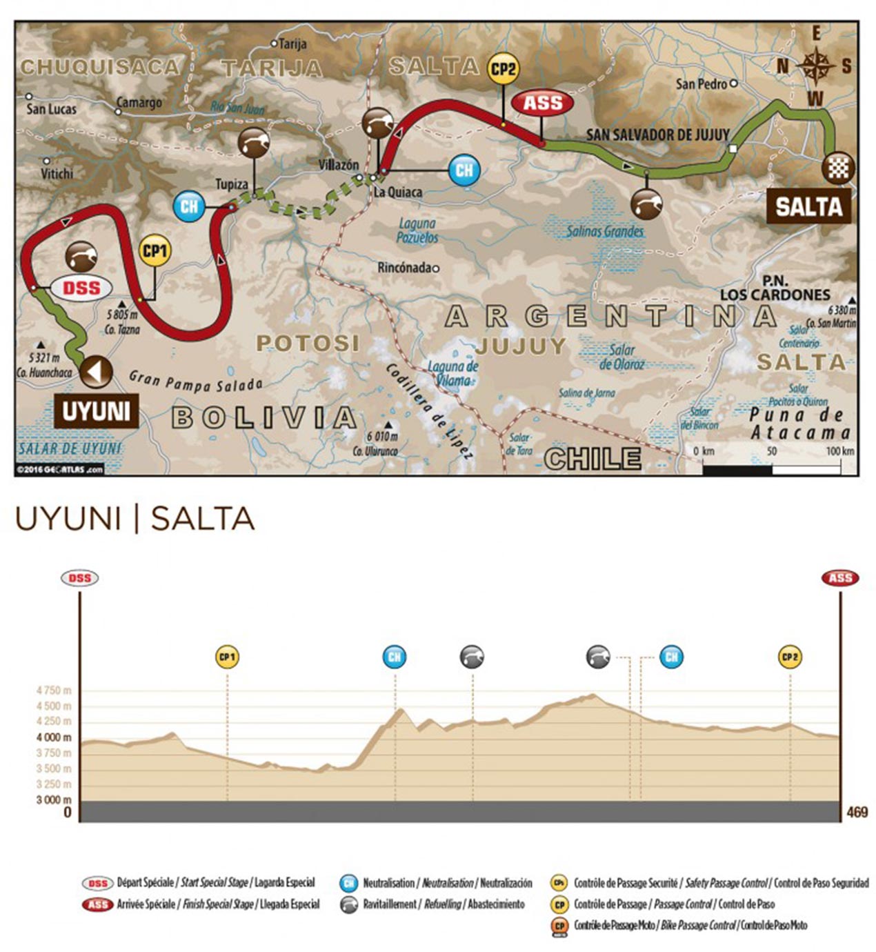 Stage 7 of the 2016 Dakar Rally was another long one, with 793km in total on the route and 353km on the special. With more trecherous weather, not all of the motorbike competitors crossed the finish line, with some turning back at their discretion, with the blessing of Race Control. The special stage was also trimmed, leaving out the second checkpoint.