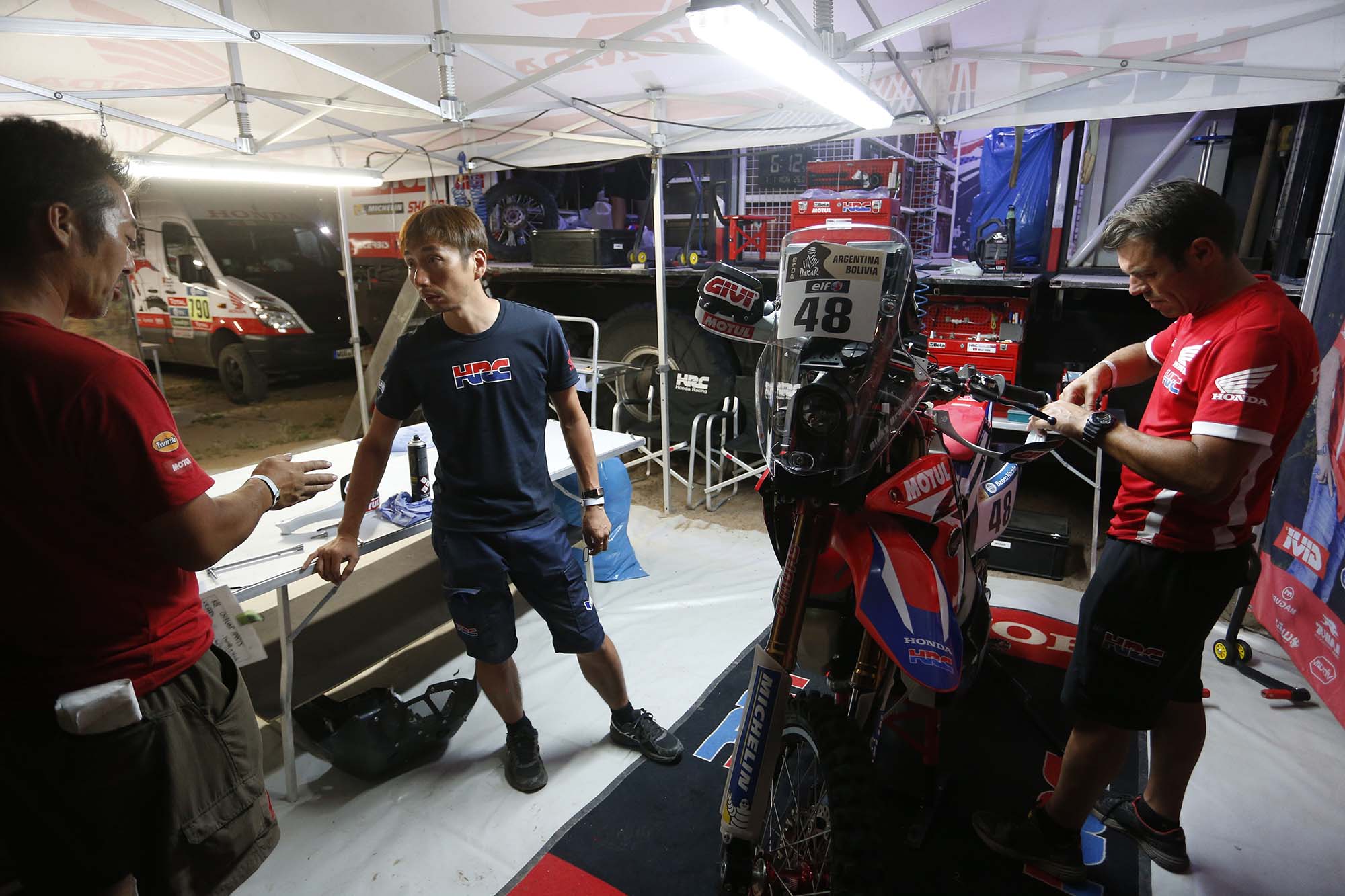 With the marathon stage, Gonçalves will have to rely on his teammates to help him repair the Honda CRF450 Rally race bike. Honda says it is far from throwing in the towel on the situation, though they have a difficult road ahead of them.