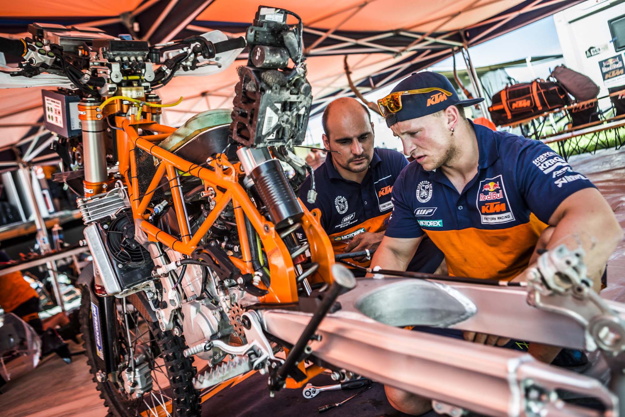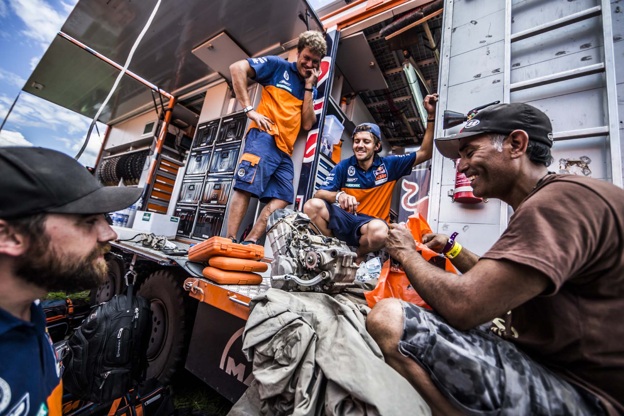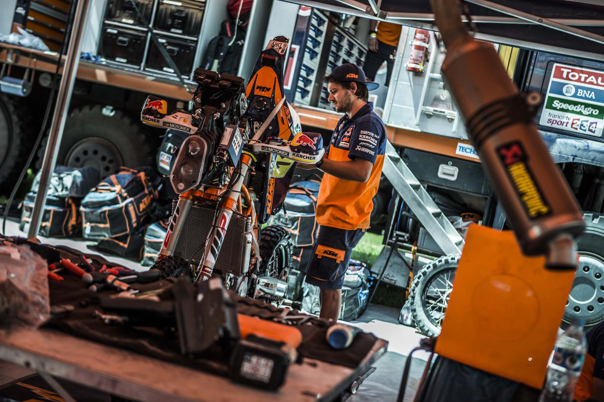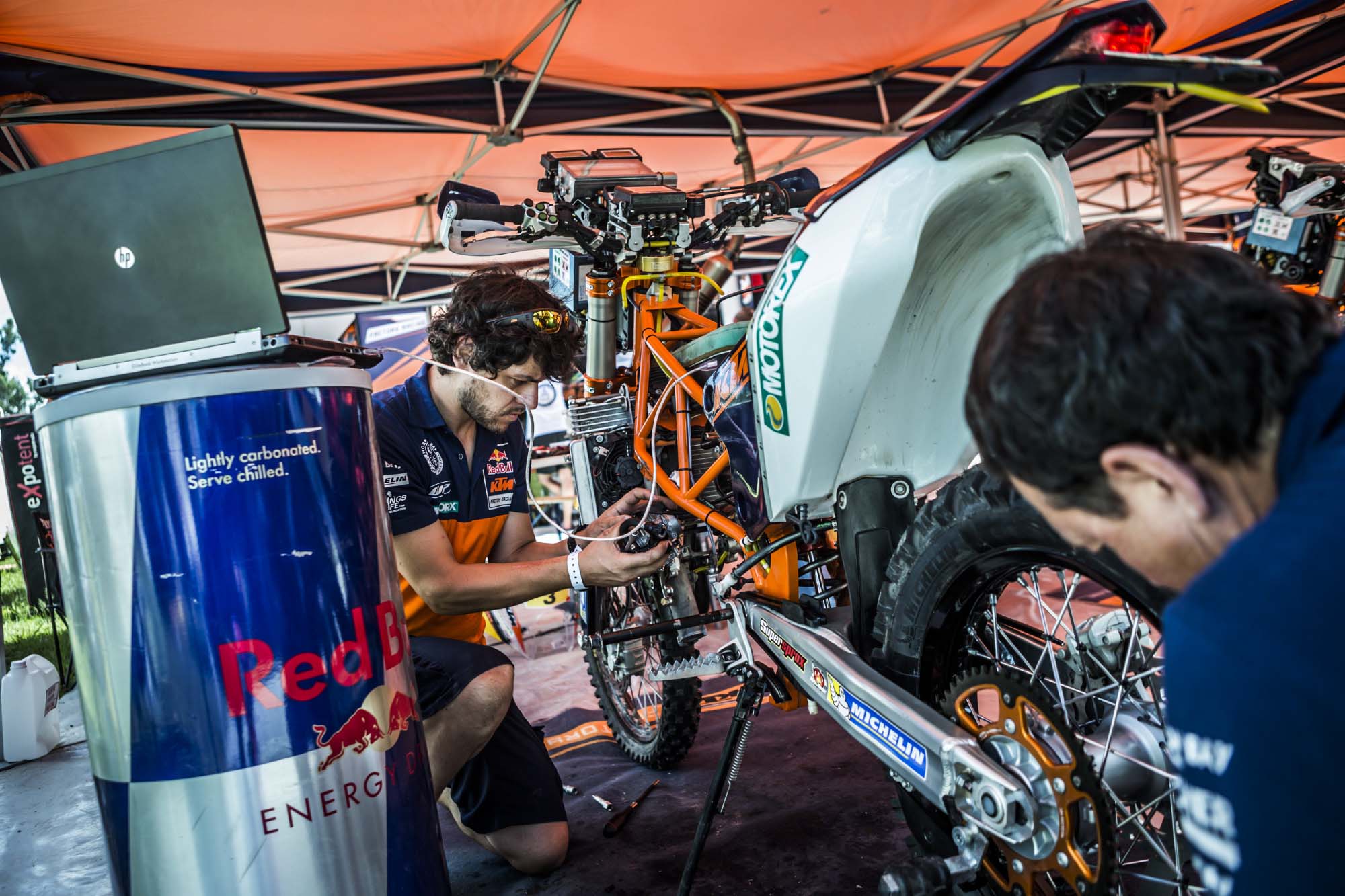 The good news for HRC is that Paolo Ceci was able to tow Gonçalves’s bike to CP2, which meant he finished the stage because of the shortened course. The bad news though is that Gonçalves’s engine seized from a lack of cooling, and will require significant work before tomorrow’s start.