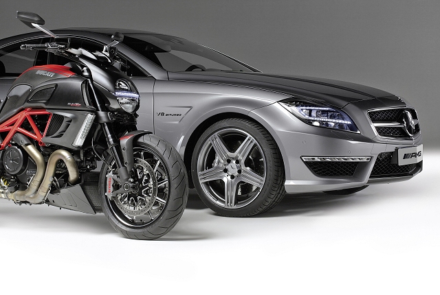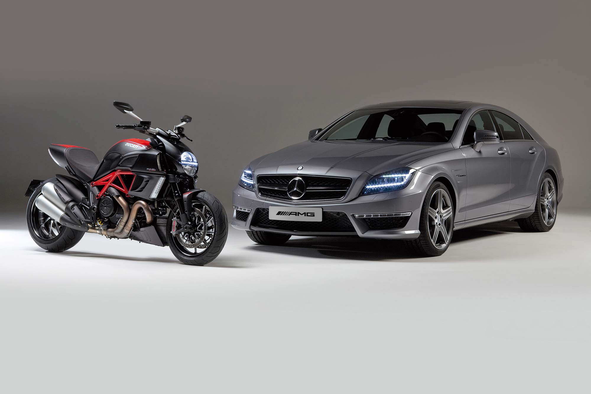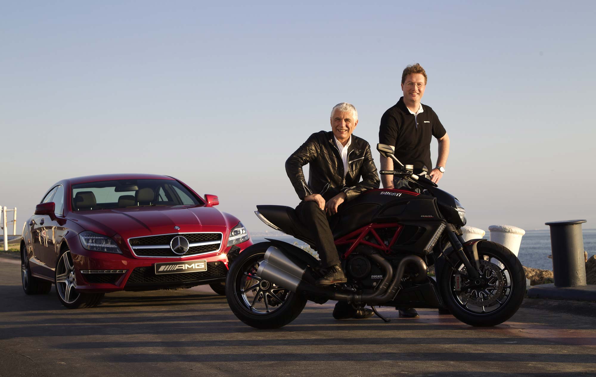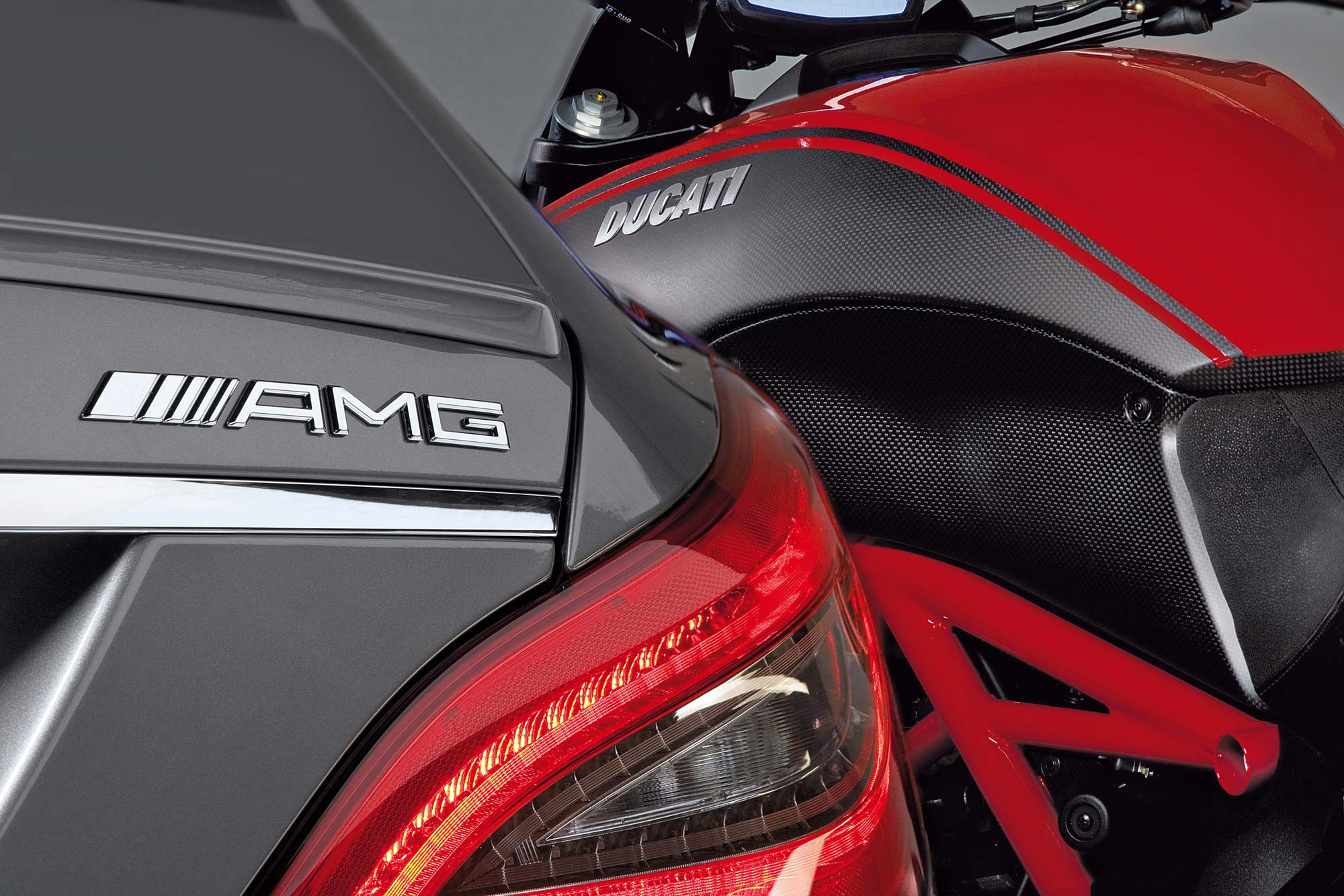 With Rossi healing his wounds back in Italy, Nicky Hayden was on hand for the event with a Ducati Diavel and Mercedes-Benz CLS 63 AMG on stage with him. Asked what he thought about the partnership, Hayden replied, “Well, if this is my company bike and this is my company car, I’d say I’m doing pretty well.” We’d tend to agree.