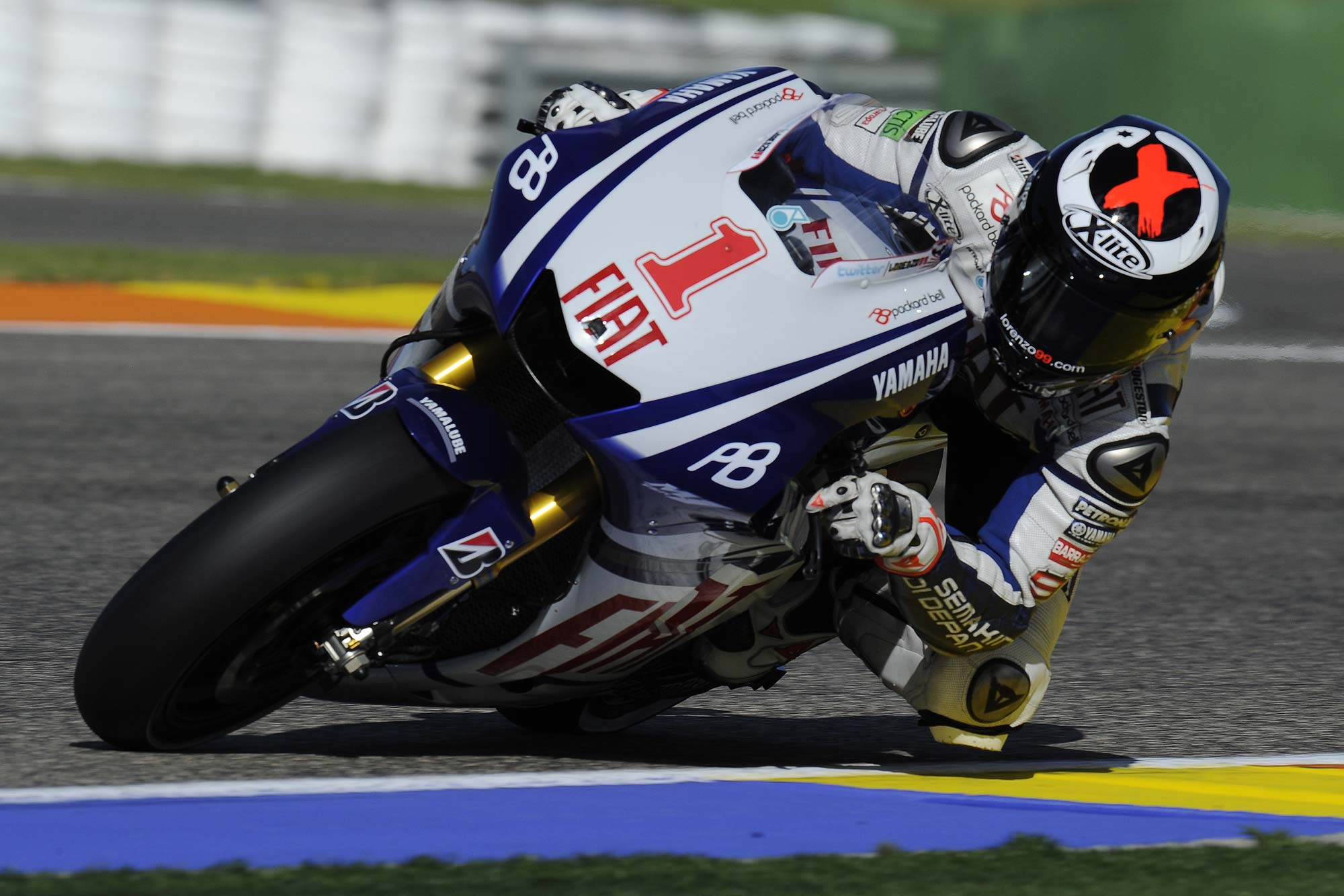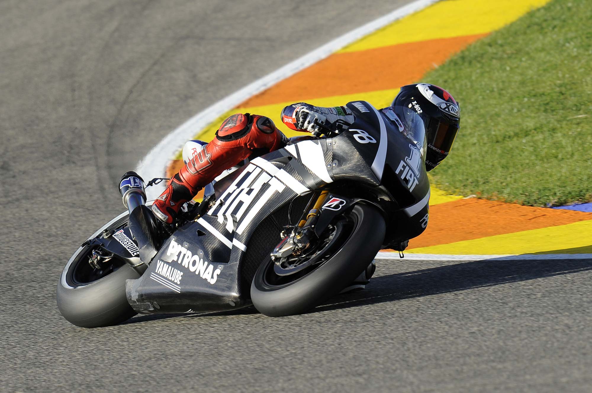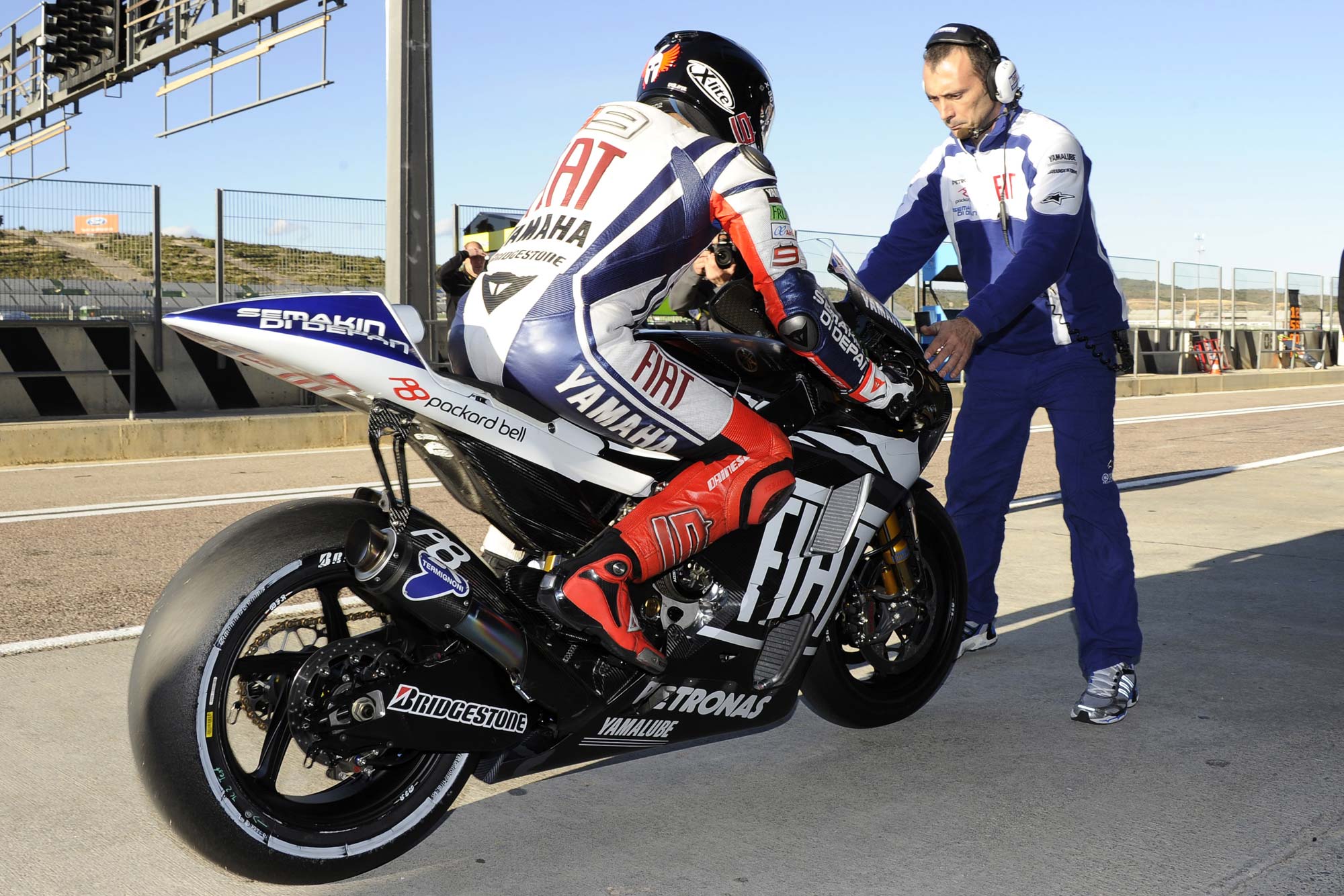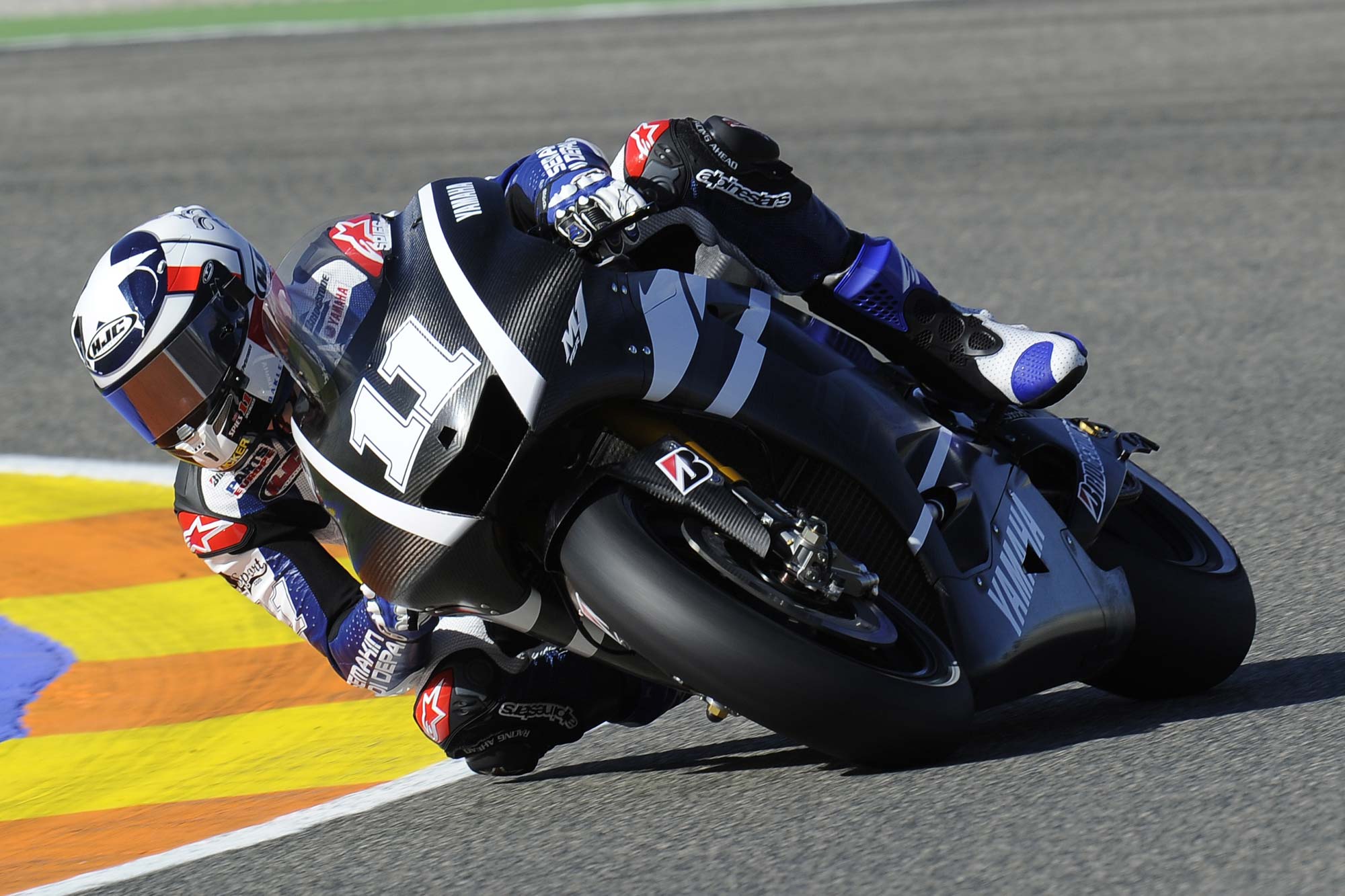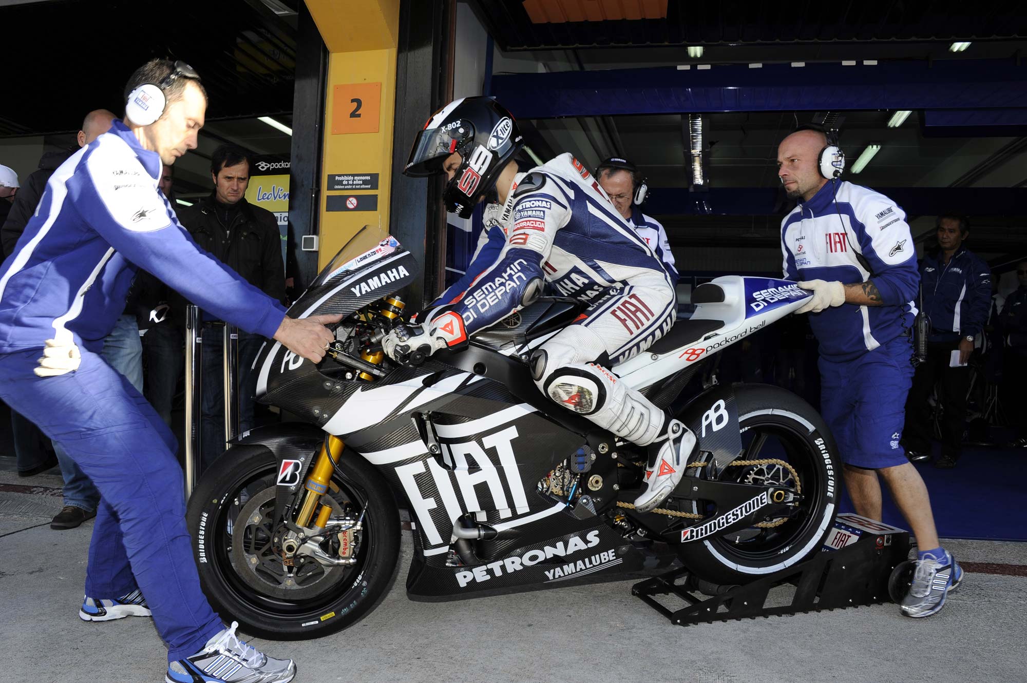 Ben Spies made his factory debut today, taking to the 2011 Yamaha YZR-M1 for the first time. Showing an impressive position as third fastest for the day’s testing time sheets, Spies clearly showed an aptitude for the new Yamaha, as did teammate Jorge Lorenzo who topped today’s charts. Spies used the 2010 spec tires from Bridgestone to get a base feeling for the new M1, while tomorrow he is expected to try the 2011 tires. Meanwhile Lorenzo spent his time divided between a modified 2010 chassis and the 2011 bike, as the Spaniard tested new Öhlins suspension and various setups.