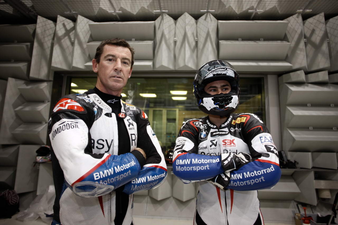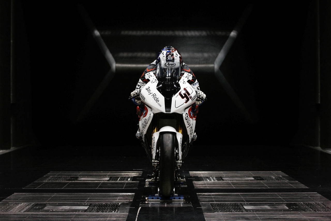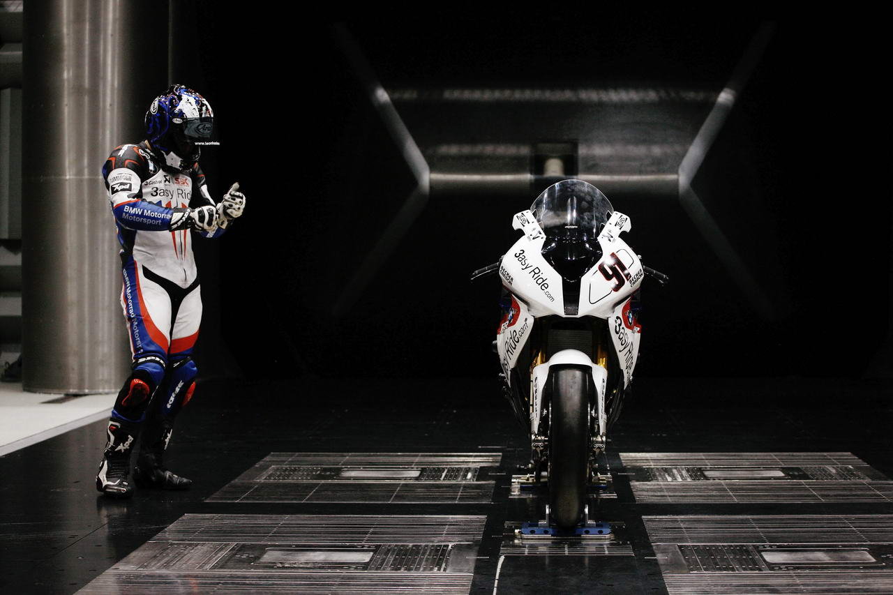 As the BMW World Superbike team prepares for the 2011 season, Leon Haslam and Troy Corser took a break from their training regiment to spend some time in BMW’s wind tunnel facility in Bavaria. Looking to hone the maximum performance out of the S1000RR, both riders worked on their optimal streamlined body positions in speeds up to 150 mph. The BMW WSBK team also looked at the S1000RR’s fairing, examining how to optimize the bike’s Cx or coefficient of drag (we assume any modifications that were made were WSBK legal of course).