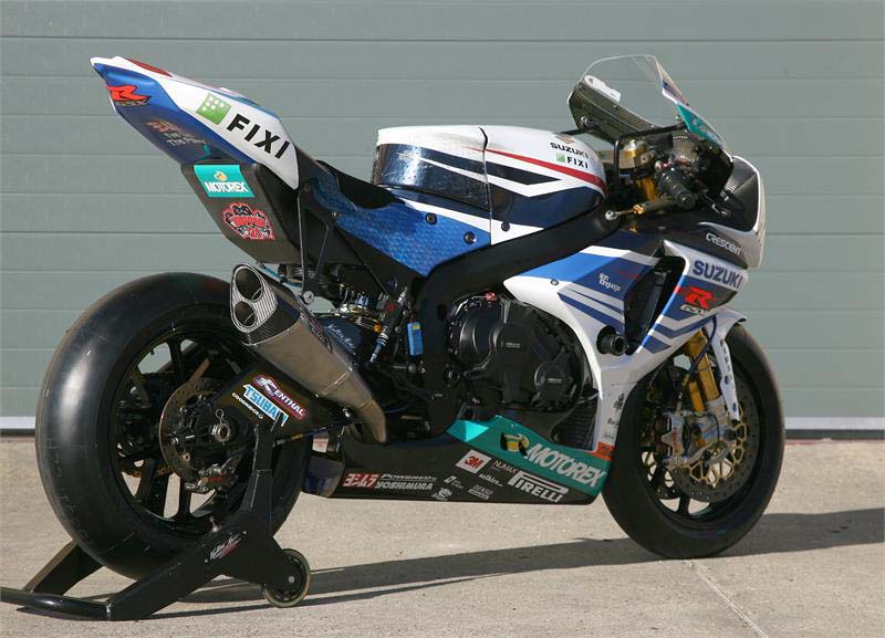 Showing briefly the bikes that John Hopkins and Leon Camier will campaign in World Superbike this season, Crescent Fixi Suzuki is already on the road and headed to Phillip Island for the WSBK pre-season test that is scheduled for February 26th. For those that don’t know (and there is no reason you should), co-title sponsor Fixi is not an urban-oriented bicycle company, but instead provides foreign exchange solutions to Tier 1 investors — whatever those are.