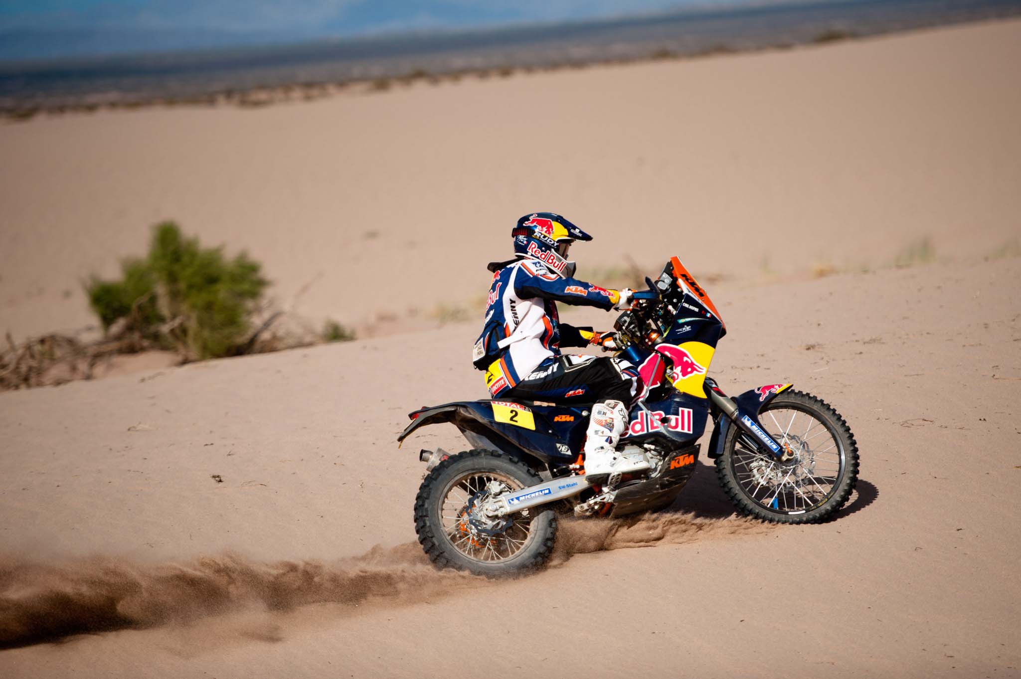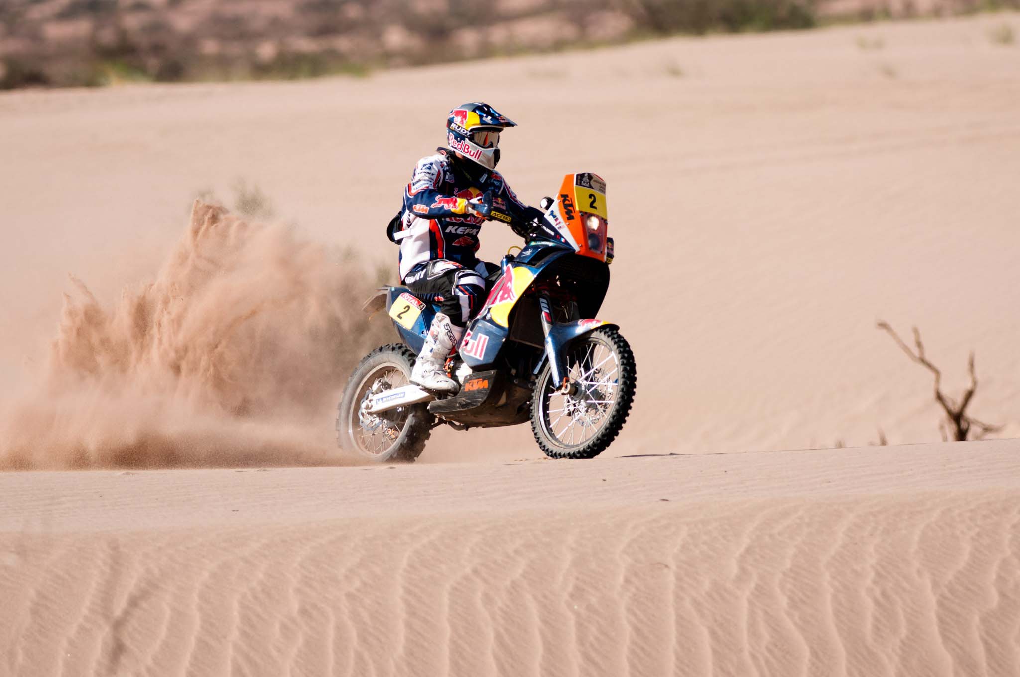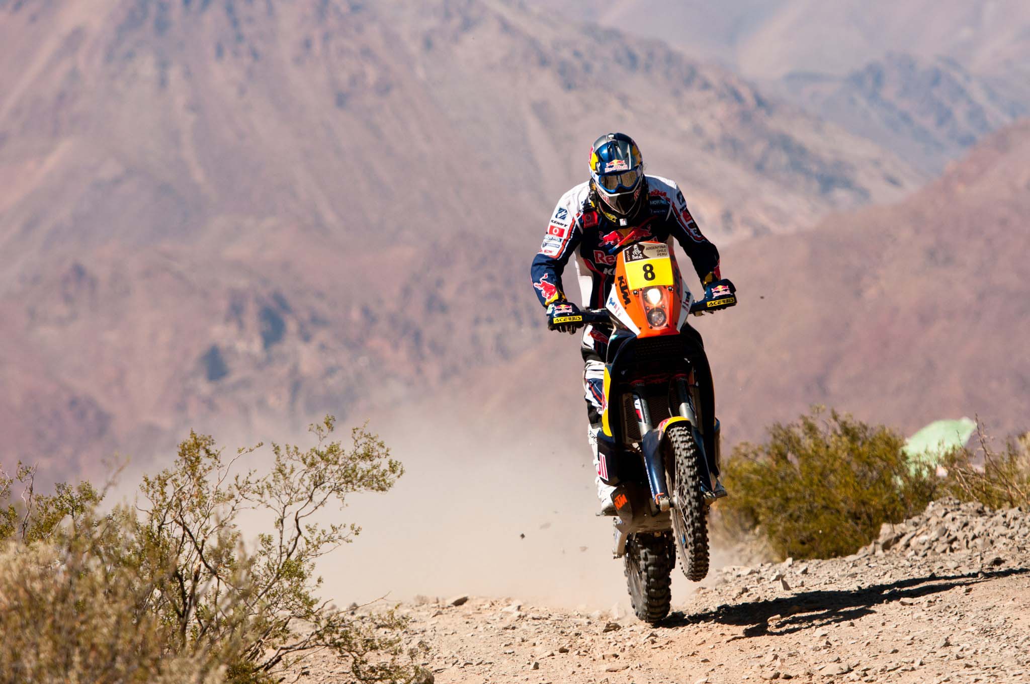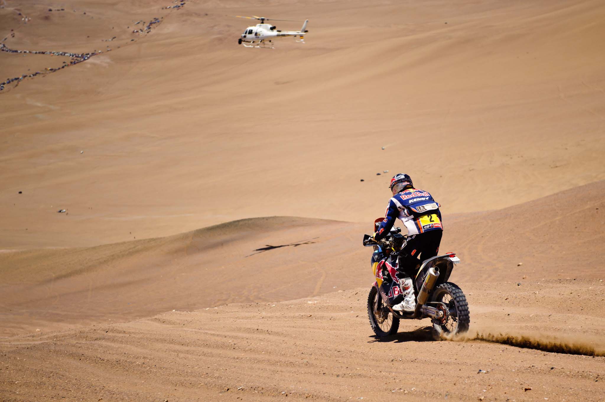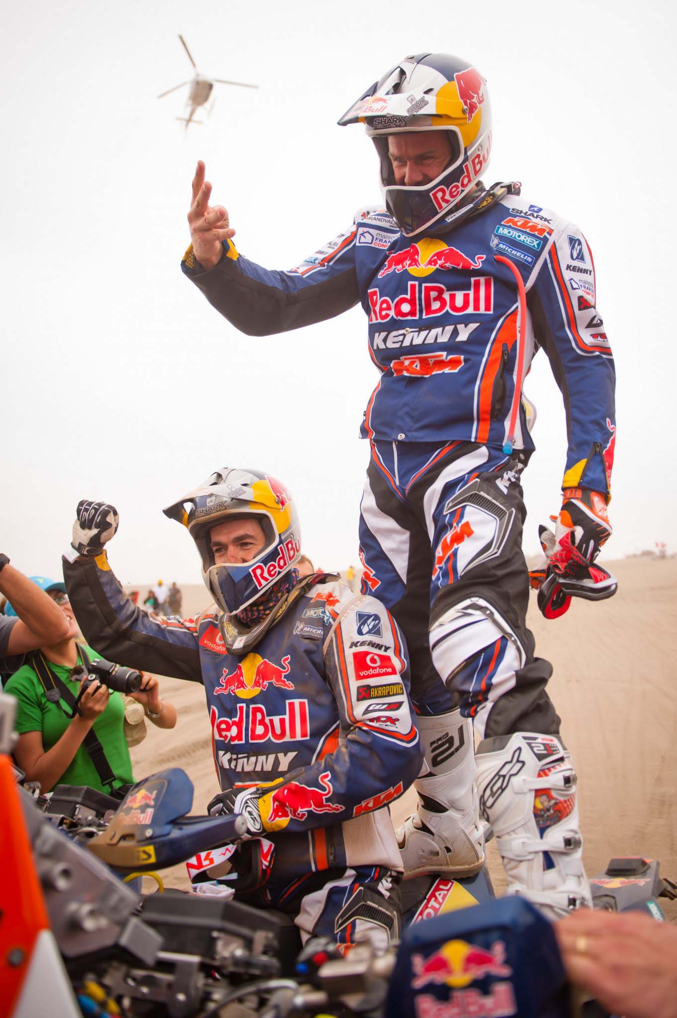After battling with KTM teammate Marc Coma for the entire duration of the 2012 Dakar Rally, Cyril Despres bested the Catalan rider on the final stage, and claimed his fourth Dakar title. Despres won only four stages of the Rally (compared to Coma’s five stages), but the Frenchman was able to cling to his overall lead, despite finishing behind Coma on the last stage. With The Dakar concluding in Lima for the first time in history, Despres’ triumph brought KTM its eleventh consecutive Dakar win. After a critical time penalty was levied against Marc Coma, Cyril Despres won the rally with a 53 minute margin, though the racing was decidedly closer than that number implies.