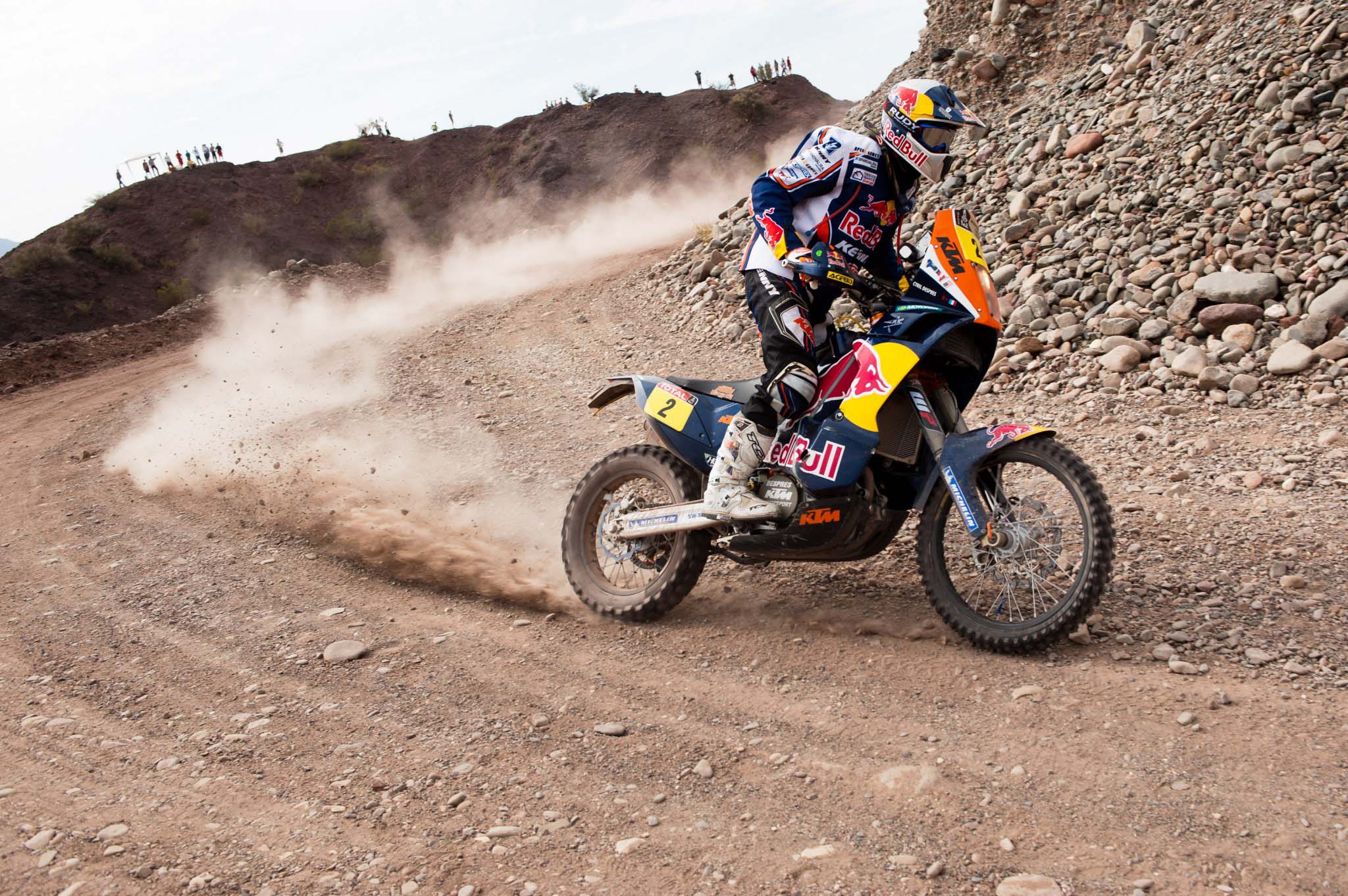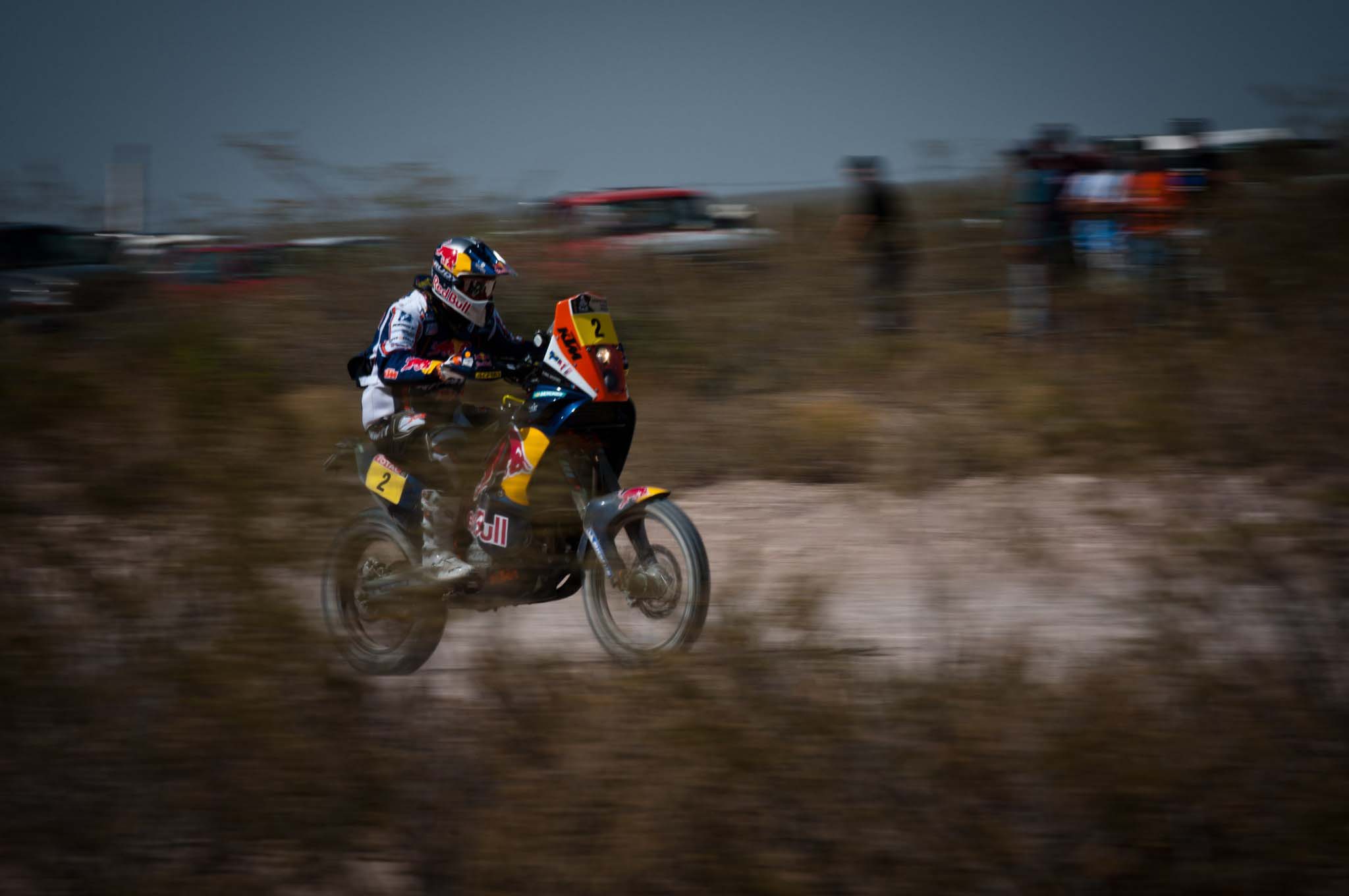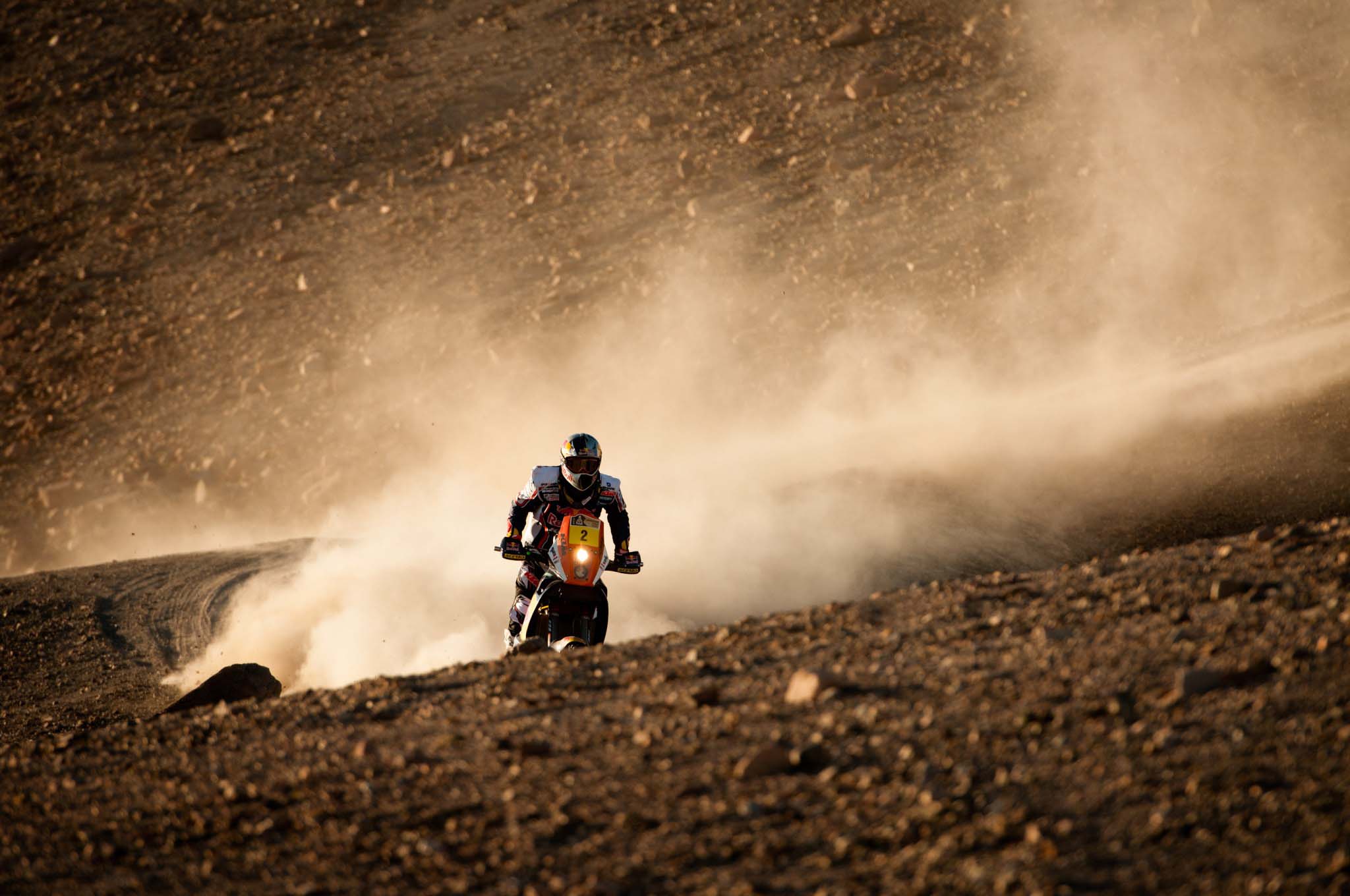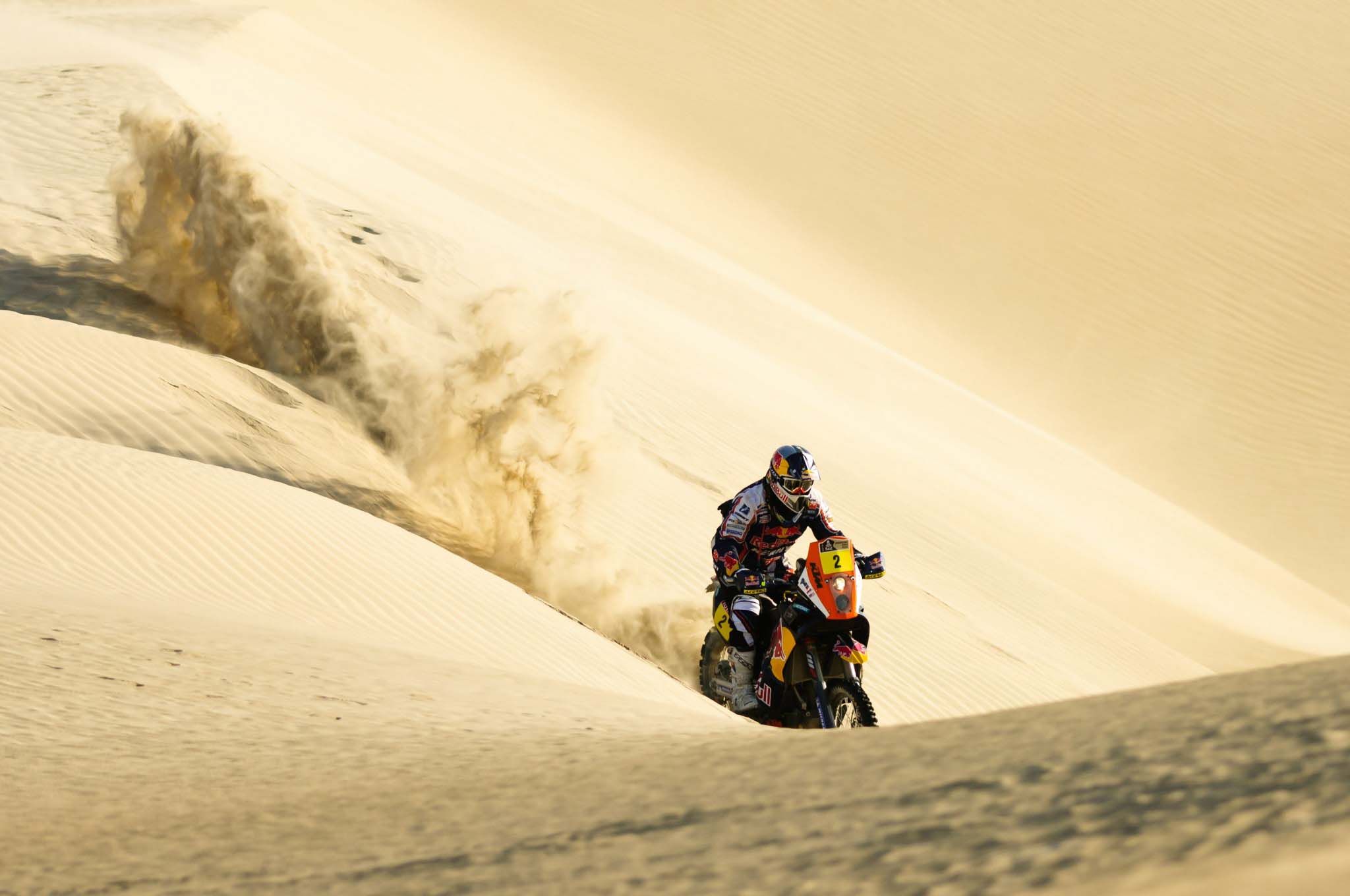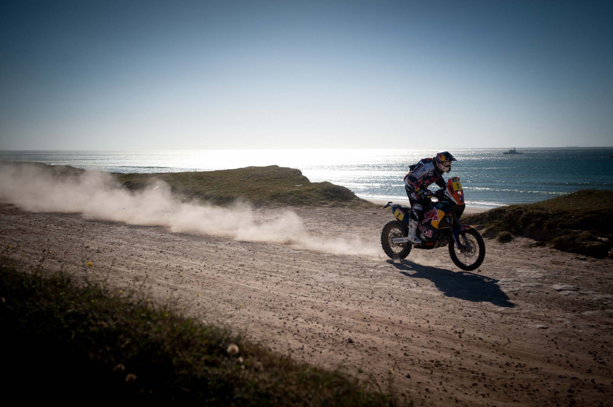 After battling with KTM teammate Marc Coma for the entire duration of the 2012 Dakar Rally, Cyril Despres bested the Catalan rider on the final stage, and claimed his fourth Dakar title. Despres won only four stages of the Rally (compared to Coma’s five stages), but the Frenchman was able to cling to his overall lead, despite finishing behind Coma on the last stage. With The Dakar concluding in Lima for the first time in history, Despres’ triumph brought KTM its eleventh consecutive Dakar win. After a critical time penalty was levied against Marc Coma, Cyril Despres won the rally with a 53 minute margin, though the racing was decidedly closer than that number implies.