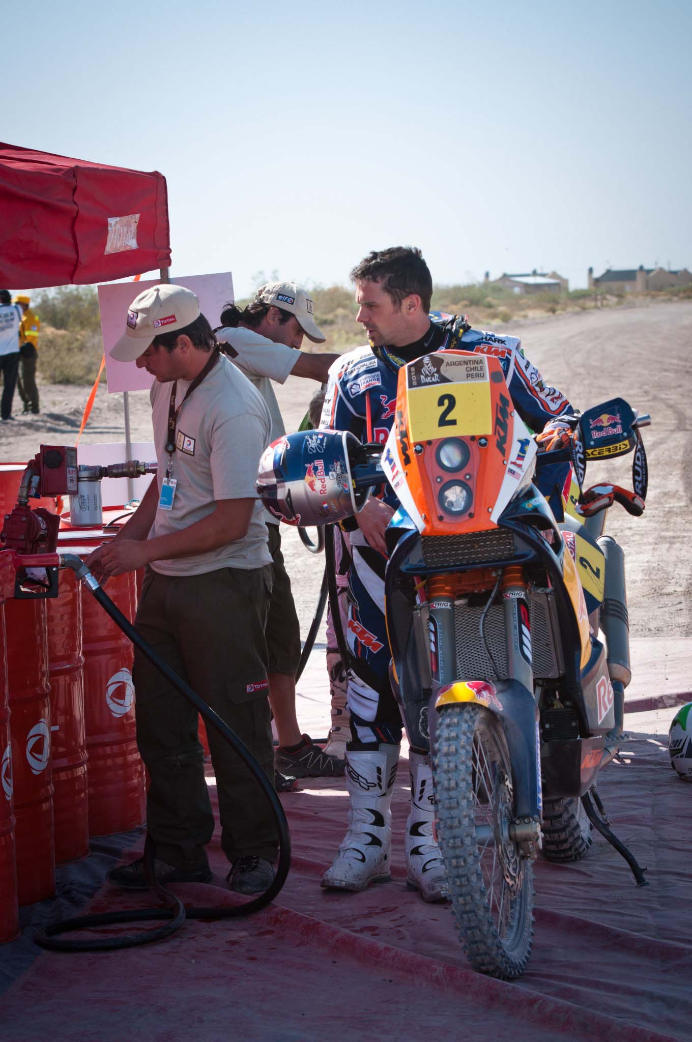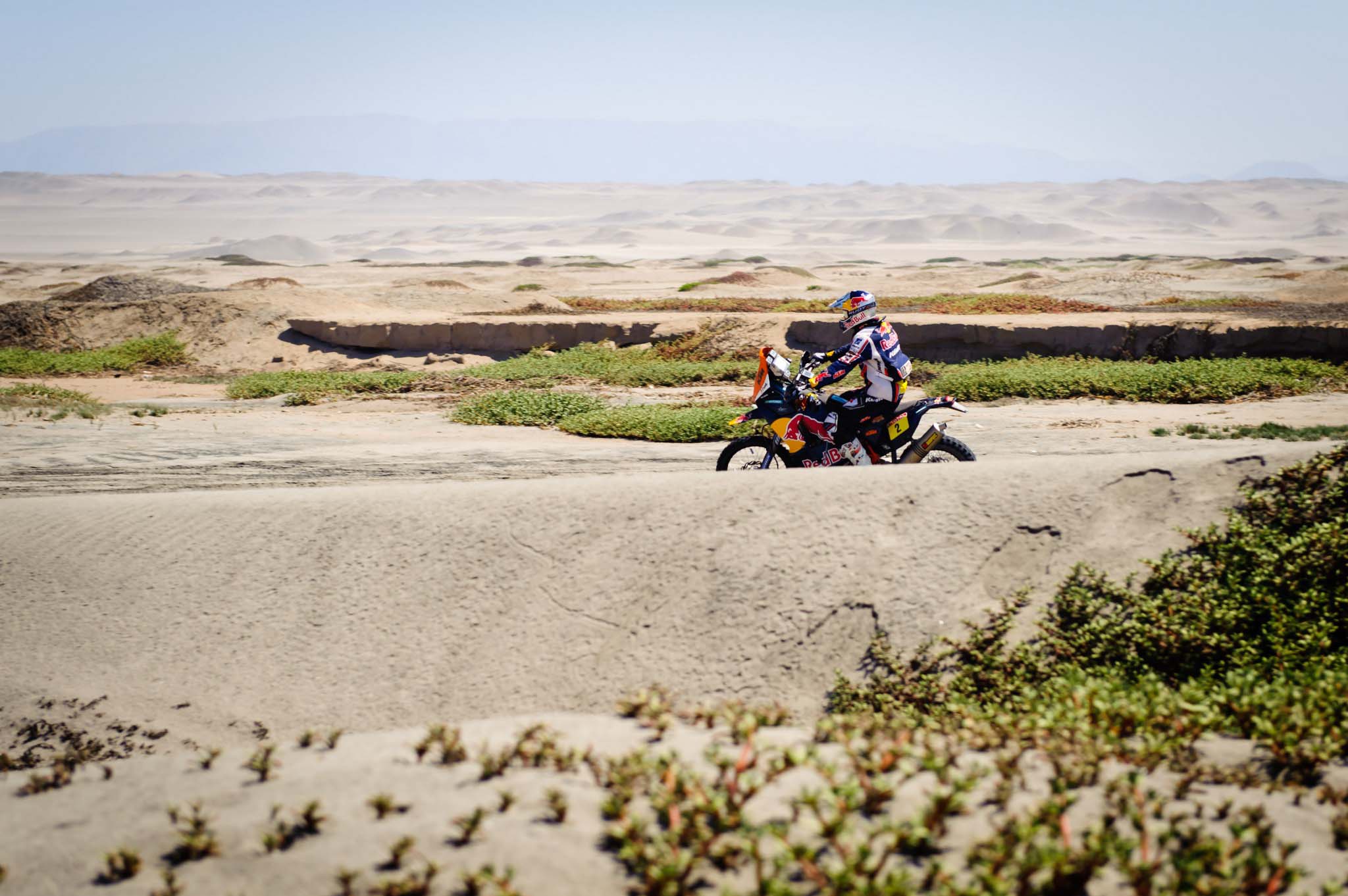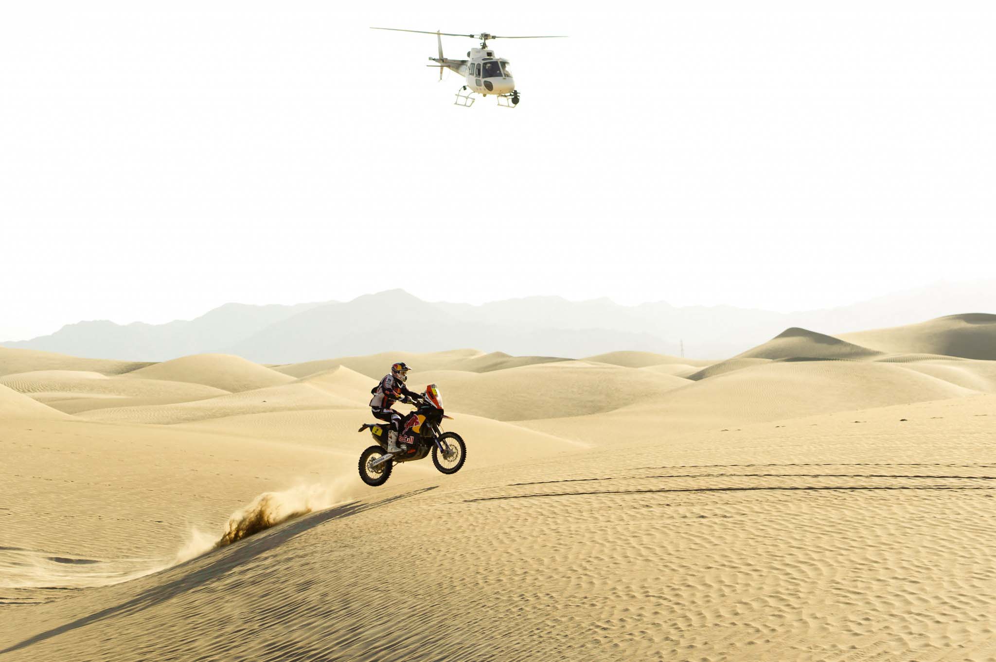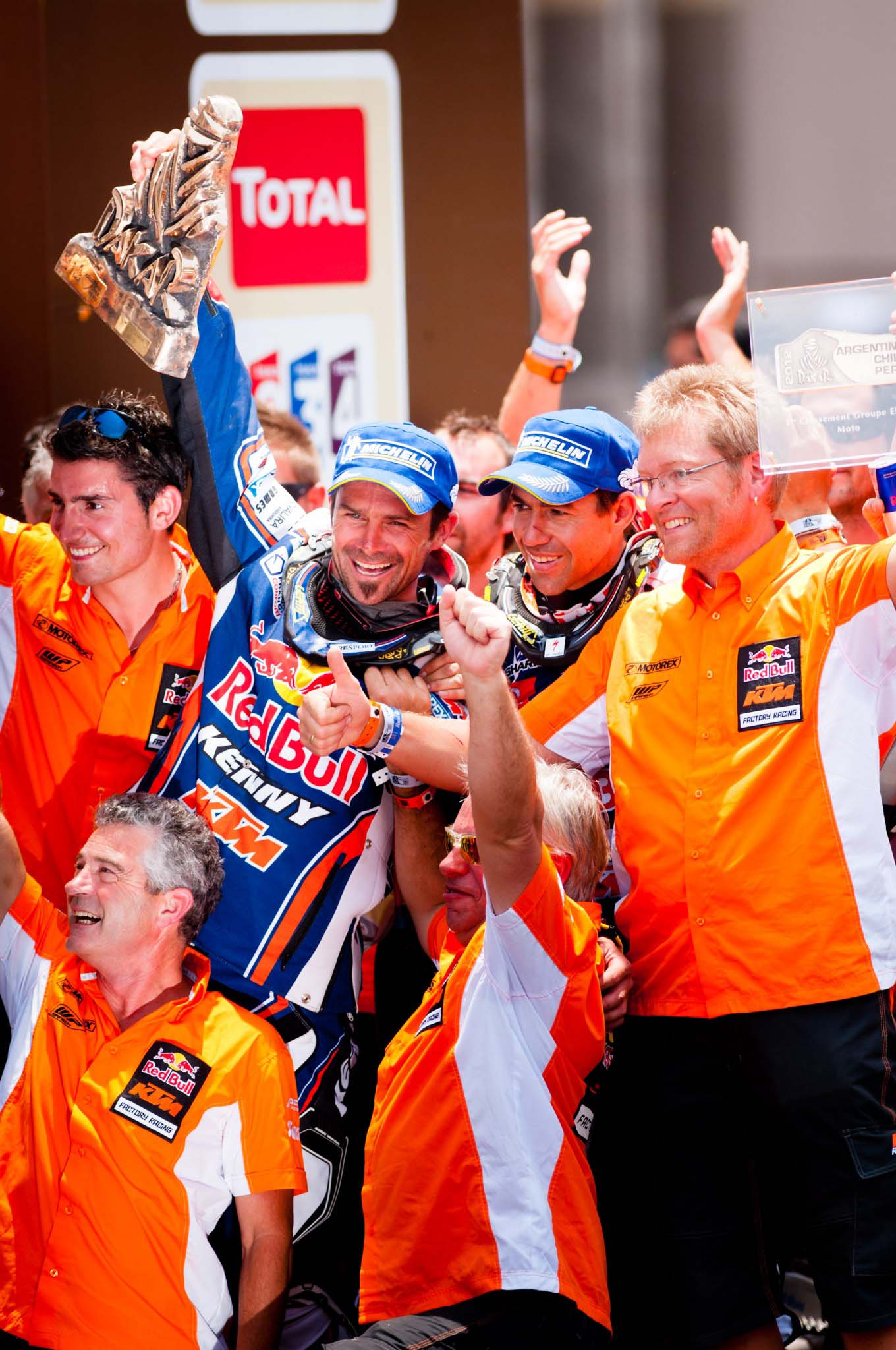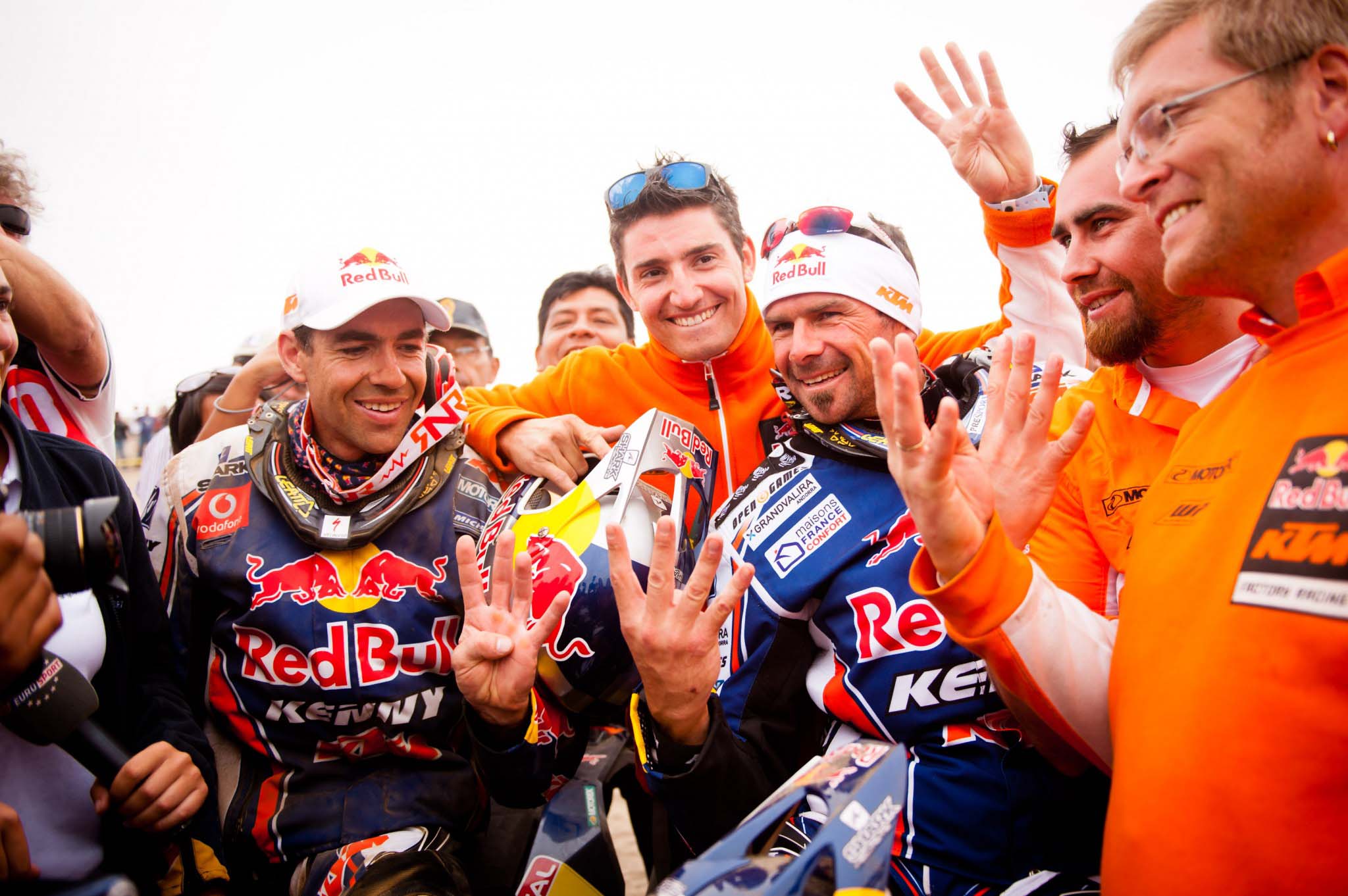 After battling with KTM teammate Marc Coma for the entire duration of the 2012 Dakar Rally, Cyril Despres bested the Catalan rider on the final stage, and claimed his fourth Dakar title. Despres won only four stages of the Rally (compared to Coma’s five stages), but the Frenchman was able to cling to his overall lead, despite finishing behind Coma on the last stage. With The Dakar concluding in Lima for the first time in history, Despres’ triumph brought KTM its eleventh consecutive Dakar win. After a critical time penalty was levied against Marc Coma, Cyril Despres won the rally with a 53 minute margin, though the racing was decidedly closer than that number implies.