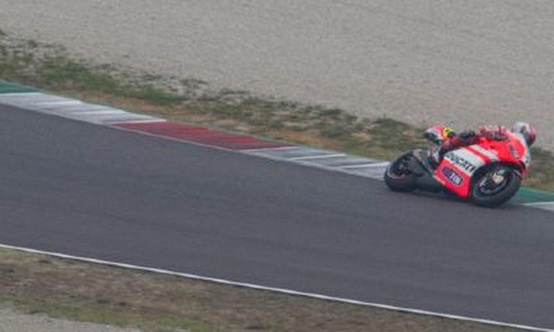 Testing at Mugello today and tomorrow, Ducati has very discretely (like that could actually happen) begun testing its Desmosedici GP12 “EVO” – a modified version of the GP12 that features an aluminum frame made by FTR. Replacing Ducati’s innovative carbon fiber “frameless” chassis, the twin-spar aluminum frame is an attempt by the Italian factory to bring more front-end feel to its riders (read David Emmett’s analysis of the Desmosedici’s troubles here). Testing today with Franco Battaini, we get these first photos of the Desmosedici GP12 “EVO” (or is it GP12.1?) testing at the Italian track.