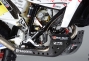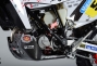 Among the features of the rally version is a very compact, concept-driven package in the chassis area. This allows the optimal integration of the two-part central/rear tank in the bike, which in turn guarantees the rider maximum freedom of movement, Enduro-like ergonomics and perfect balance. The fact that the Husqvarna TE449 RR by Speedbrain is so light is down, in part, to the aerodynamically optimised Carbon Kevlar fairing and a special rear part. The Carbon Kevlar engine protection with integrated three-litre water tank gives the engine and the low rally header pipe full protection.