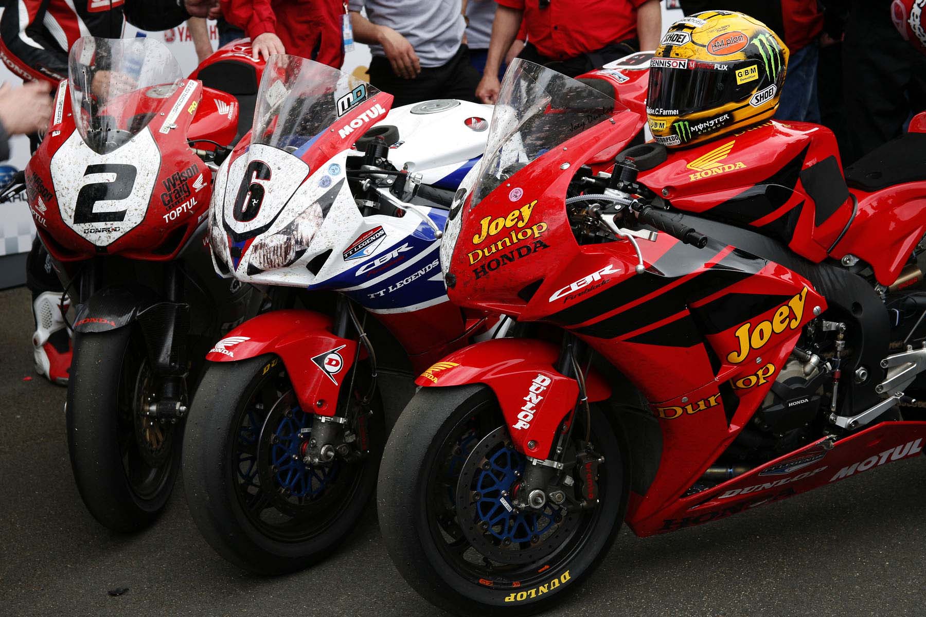 Slapped with a one-minute time penalty in the pit lane, McGuinness could only manage a third place podium in the race, but the Honda rider is working hard on catching Joey’s all-time win record of 26 Isle of Man TT wins. Fittingly, Joey’s nephew Michael won the Superbike TT race, setting a race time record in the process as well.