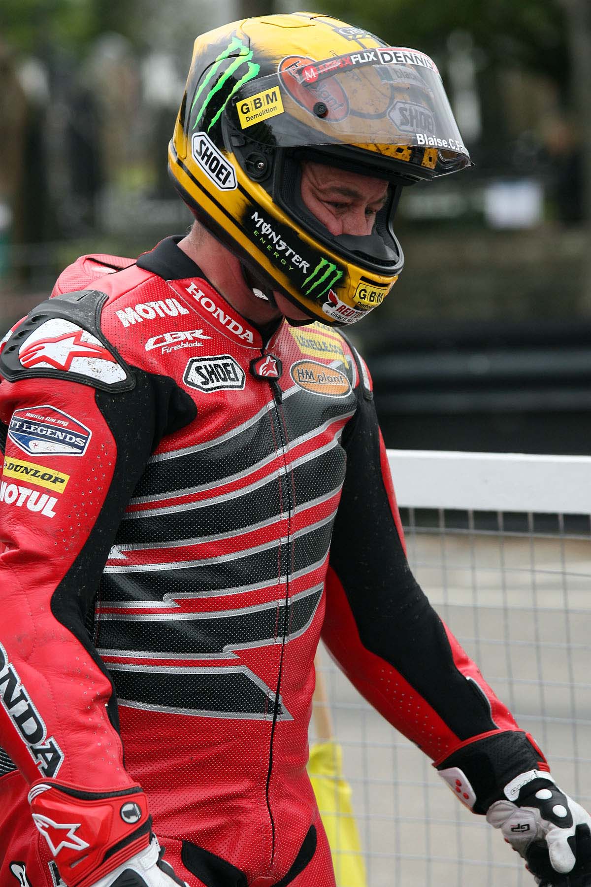 Marking the 30th anniversary of Joey Dunlop’s first Isle of Man TT win with Honda, John McGuinness raced Sunday’s Dainese Superbike TT race in the iconic rider’s racing livery. Joey’s colors (circa 2000, his last TT entry) proved to be good luck for Mr. McPint, as the 19-time-TT-winner set an outright race lap record during the Superbike TT.
