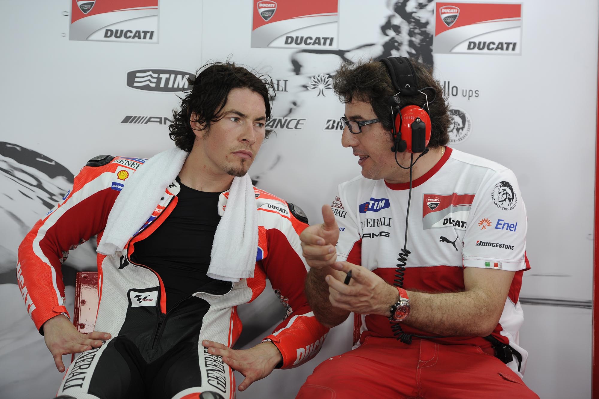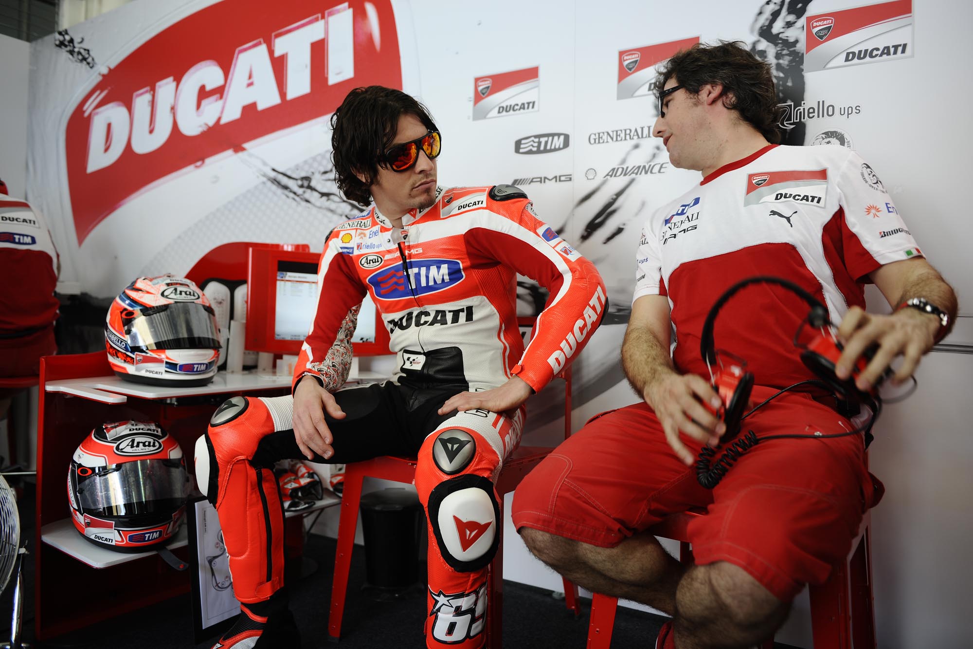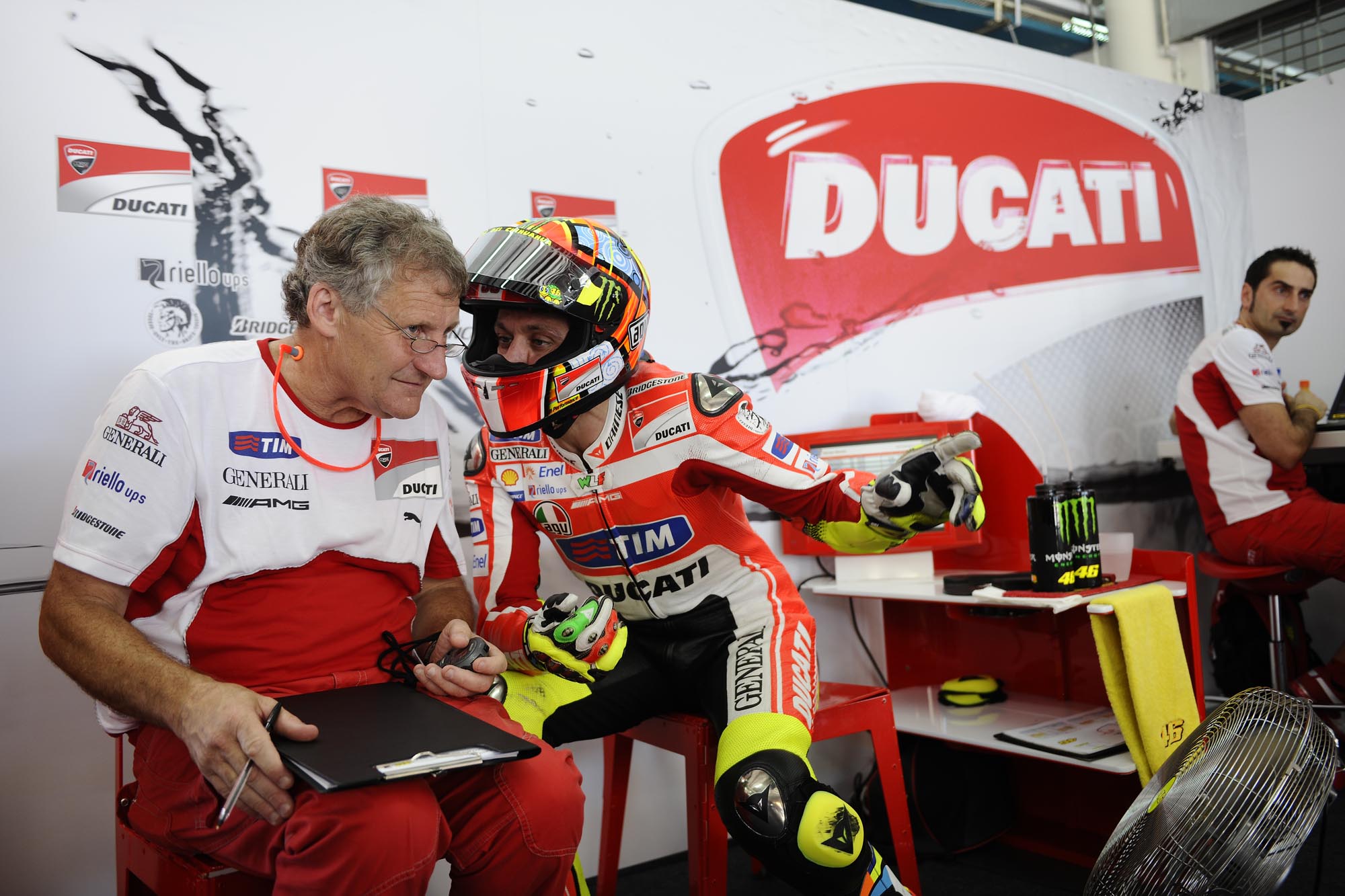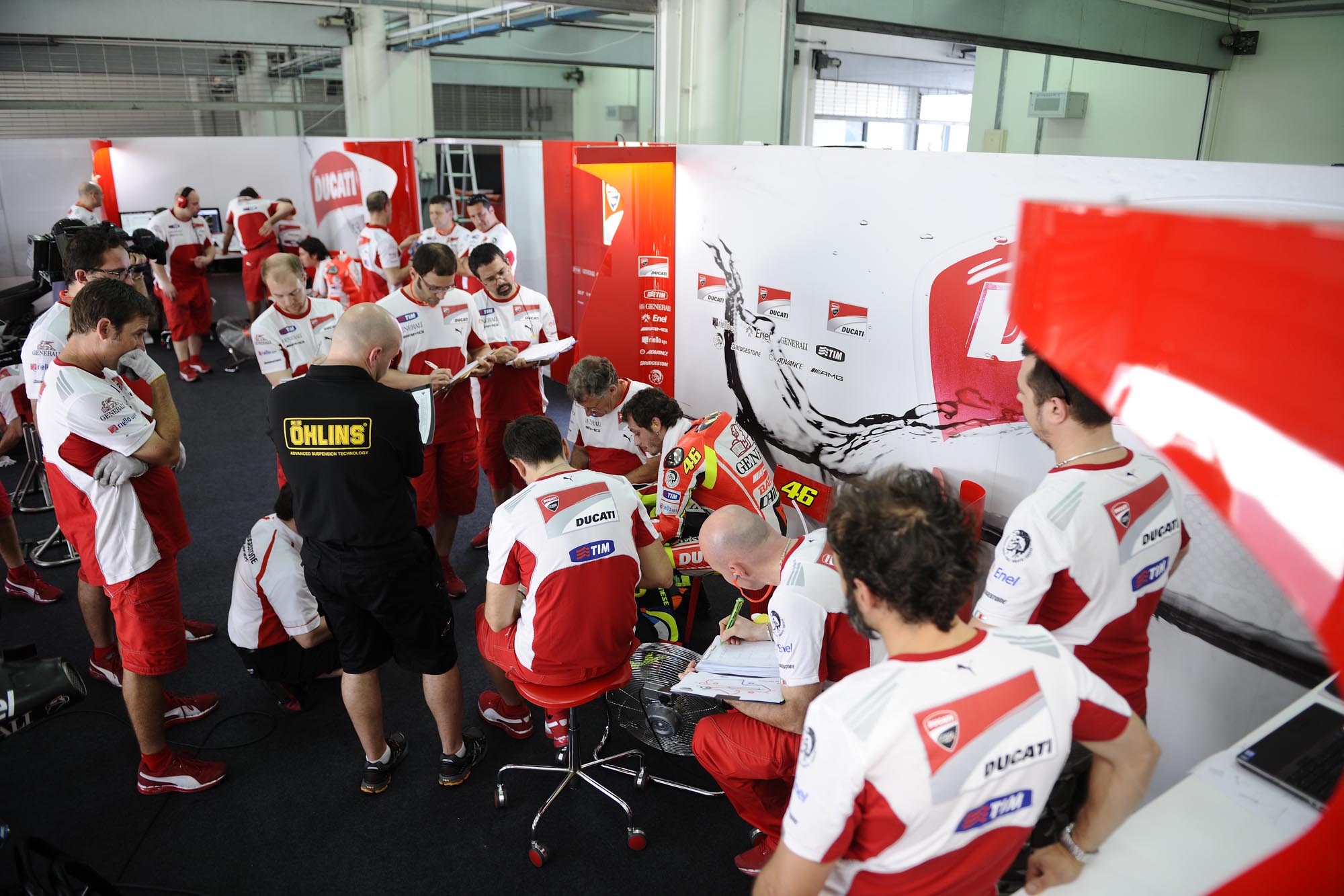 For Ducati Corse, the shaking down of the factory-spec Ducati Desmosedici GP12 continued, though little progress was made because of the weather. Still recovering from his shoulder injury, Nicky Hayden was able to lap Sepang, and confirm that his shoulder was healing nicely. Meanwhile, Valentino Rossi took advantage of the wet weather to try the newly revised GP12 in the wet conditions. Unable to get more progress because of a lack of tires, the team tomorrow hopes to make headway on a new software package that Ducati Corse has brought out to Sepang for testing.