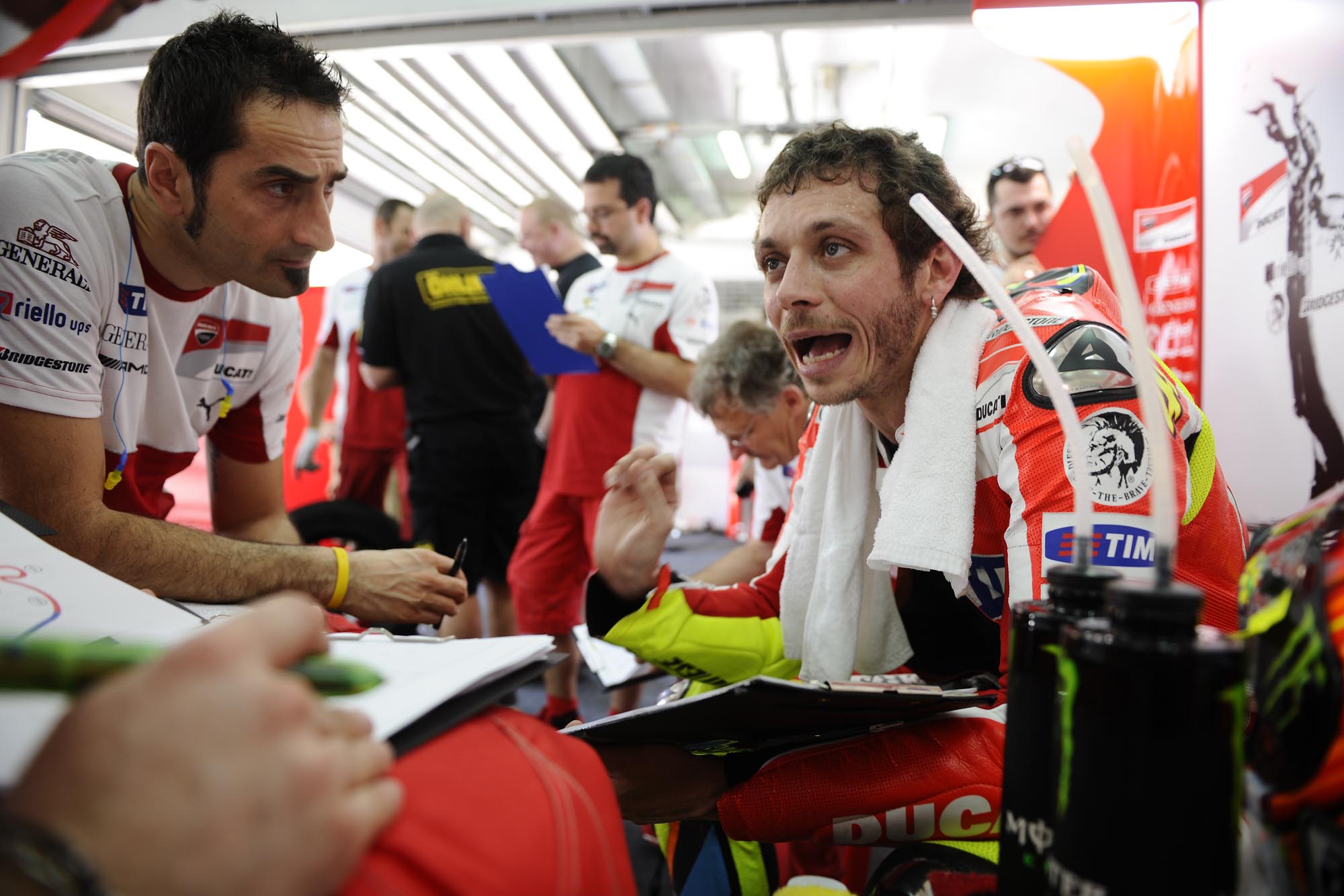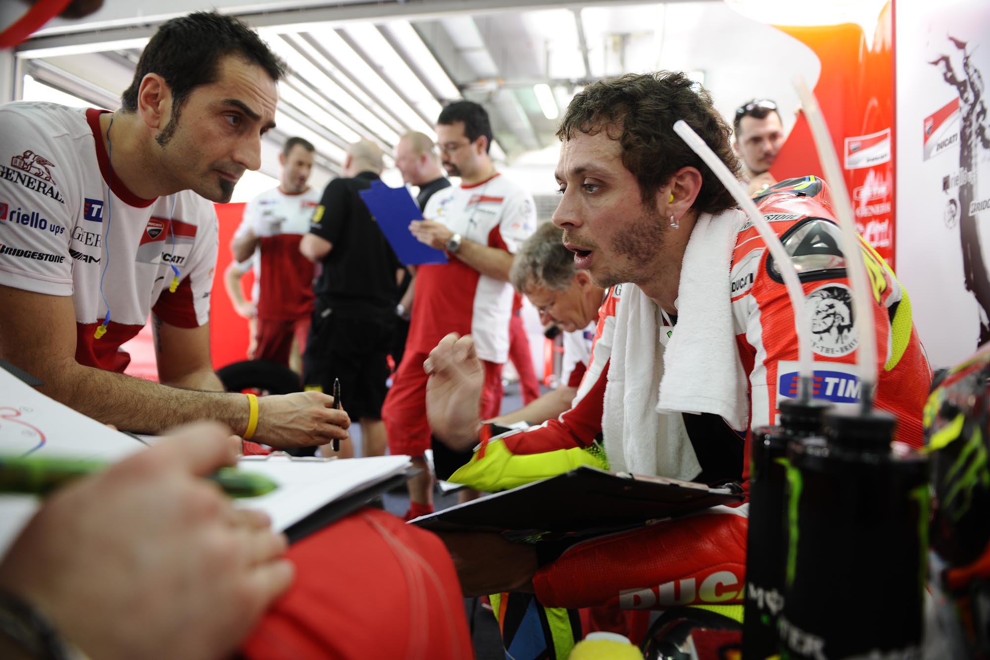 “Paradoxically, we actually started too early this morning!” explained Valentino Rossi. “It would’ve been better to start at 11 like the others, because before that the asphalt was quite dirty, and by the time the conditions started to improve, the tyre already had about fifteen laps on it. We decided to save the second tyre for the afternoon, but it started raining after lunch. As a result, we didn’t get much done today. We didn’t even start working with the new software that we have available for this test. On the plus side, we were able to confirm that the feeling in the wet is still pretty good with the GP12. Weather permitting, and with a couple more tyres at our disposal, I think that tomorrow we’ll be able to work a little more comprehensively and understand things a bit more.”
