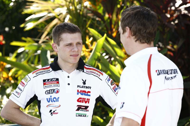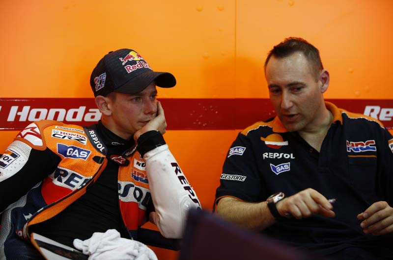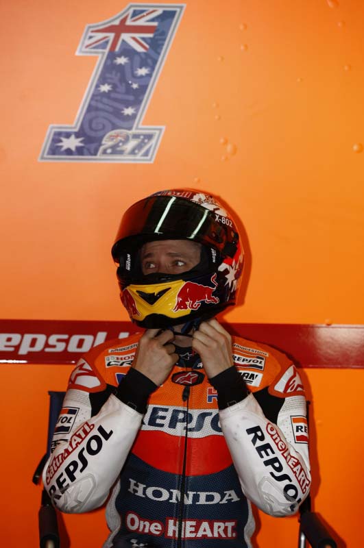 “It was really hard to leave Switzerland,” said new father Casey Stoner. “Ally woke up for a feed at the same time as I was leaving for the airport and I didn’t really want to leave. The first day of testing has gone well. We started off where we left last time, but the track conditions have been a little worse. We have some work to do. This morning we managed to compare a few things back to back. We’ve tried a new set of brake discs to try and reduce the brake fade that I’ve been having at the last test, so that’s been an improvement. We’re trying a few other things with set up to shorten the wheelbase and get a little more traction. We have a couple of things we can try to change the stiffness and also move the weight around a little bit to try and upset the chatter and reduce the frequency. This afternoon I have no doubt we would have gone a second or a second and a half faster, but the rain came out and the track didn’t dry up enough to warrant going out, so we’ll wait until tomorrow.”
