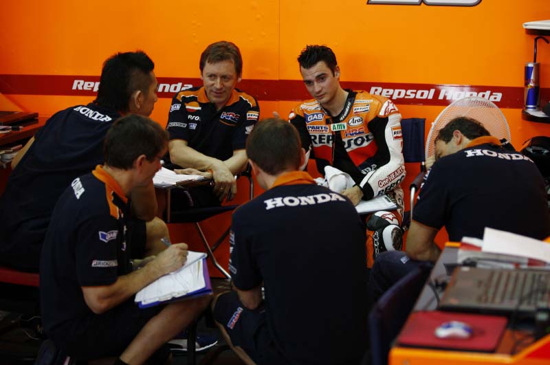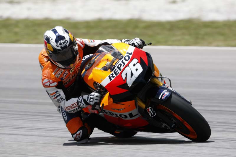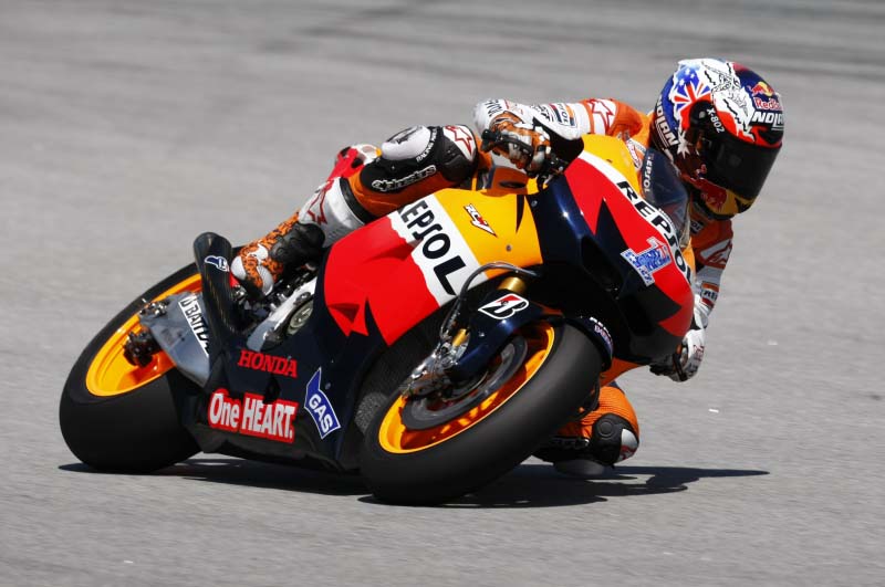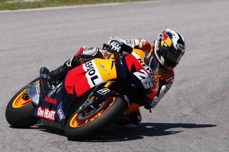 Returning to Malaysia for a second round of testing, MotoGP’s first day at Sepang was delayed by torrential rain. Coping with the water and intense humidity, MotoGP riders did get to spend some laps around the Southeast Asian circuit, with Casey Stoner once again dominating the time sheet. Apparently not getting the memo that fatherhood makes you slower on the race track, Stoner was the only rider to get into the 2’01 lap times, and did so seemingly at will during his 16 lap testing day. Second quickest was teammate Dani Pedrosa, who was a quarter second back, while Yamaha’s Jorge Lorenzo was over half a second back from Stoner, and third quickest for the day. Noticeably quick was Alvaro Bautista, who continues his dark horse status, as the Spaniard was fifth quickest and even bested Nicky Hayden, who lead the Ducati contingency.