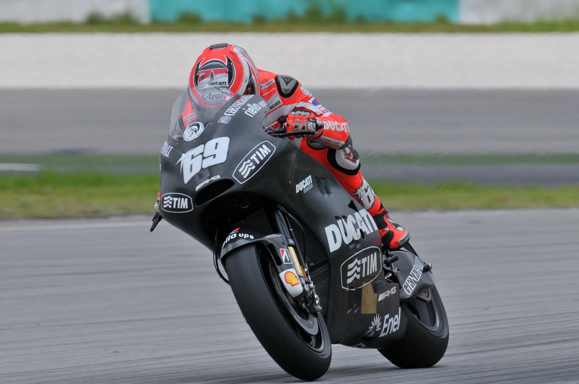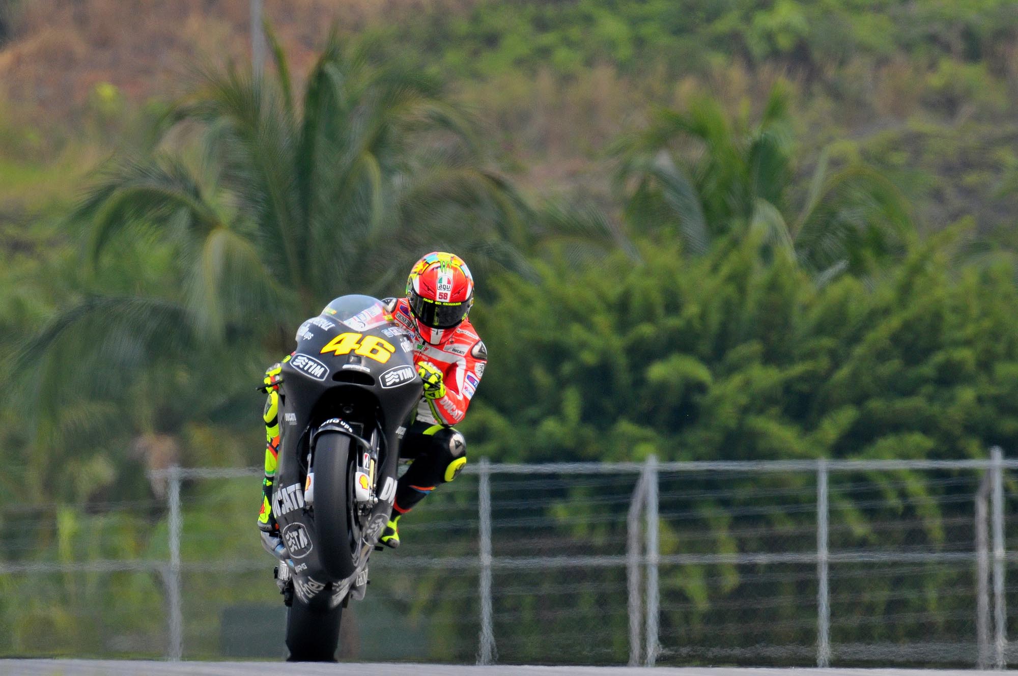 At day two of round two at Sepang, MotoGP’s riders once again had to contend with the changing Malaysian climate, as rain continued to make an appearance the Sepang International Circuit. Sidelined for the day, HRC played it safe with its riders after one of Dani Pedrosa’s engines failed during the previous day’s testing, thus making the day strictly a Ducati and Yamaha affair. With Yamaha taking the top four spots on the timesheet (lead by Ben Spies), it is clear to see at this point in the game where Ducati is with its development of the GP12.