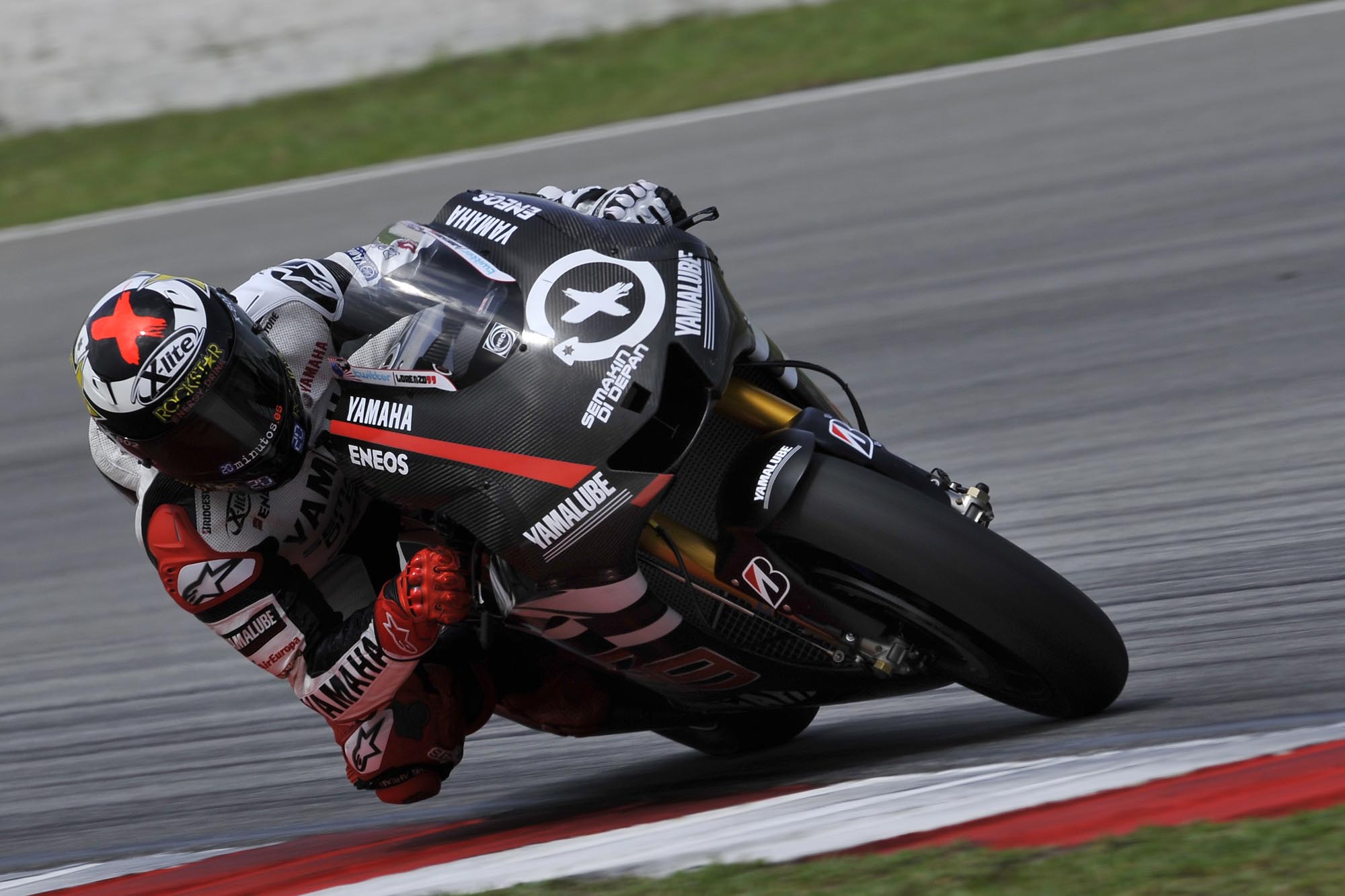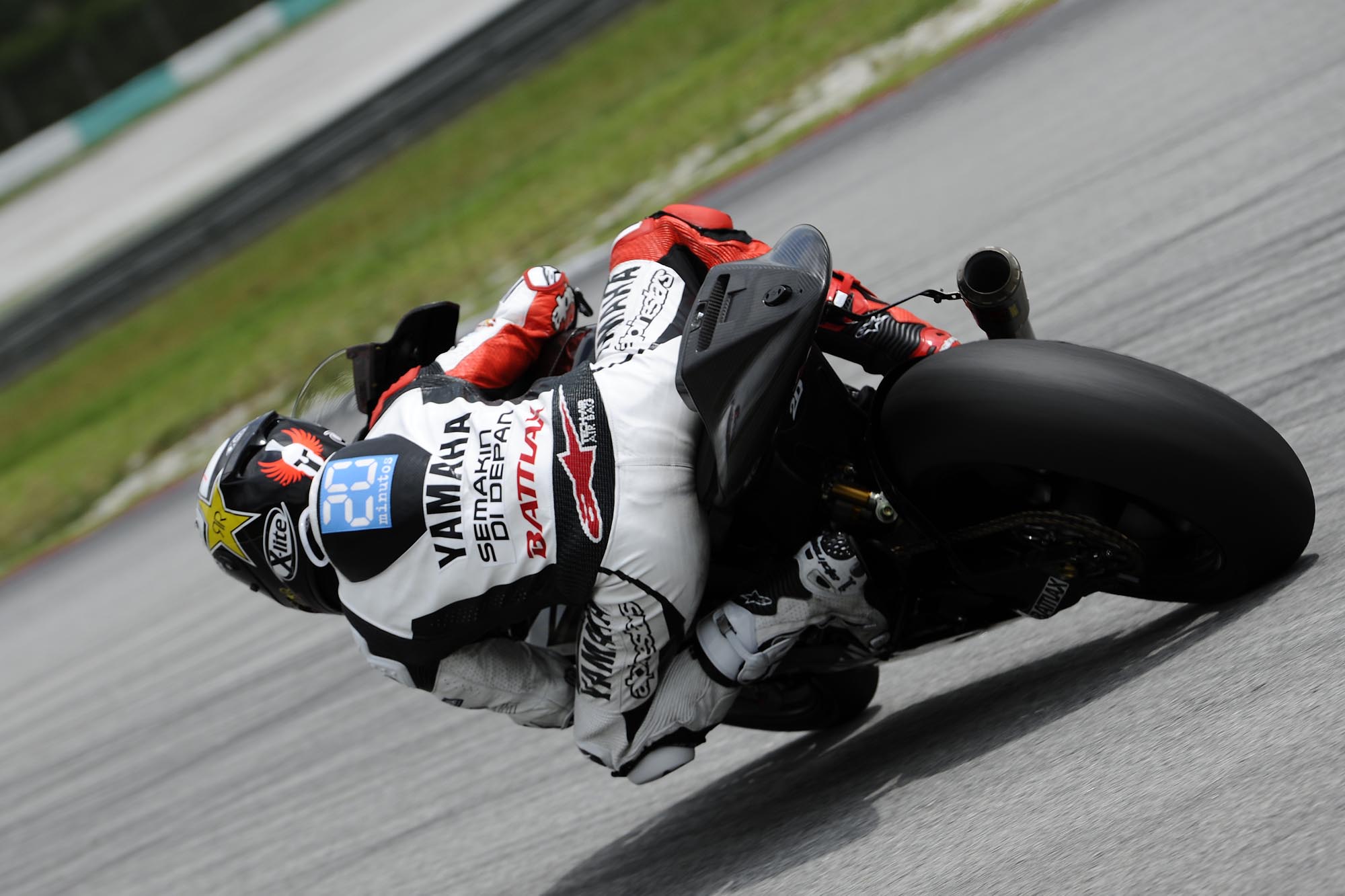 With Ben Spies using Wednesday’s test to working wet and dry setups, Jorge Lorenzo concentrated his efforts on refining the power delivery of the Yamaha YZR-M1, especially on the bike’s corner exit speed. “Today we improved a little the connection with the throttle and the engine, it’s much smoother and easier to ride, a big step forward from yesterday,” said Lorenzo. “We were able to try the 1000cc M1 on the wet for the first time and we went very fast so it’s been a positive day and we are very motivated to improve the bike more. We managed to complete everything we wanted to test so it’s been good!”