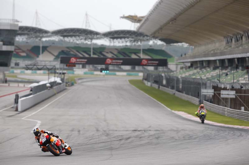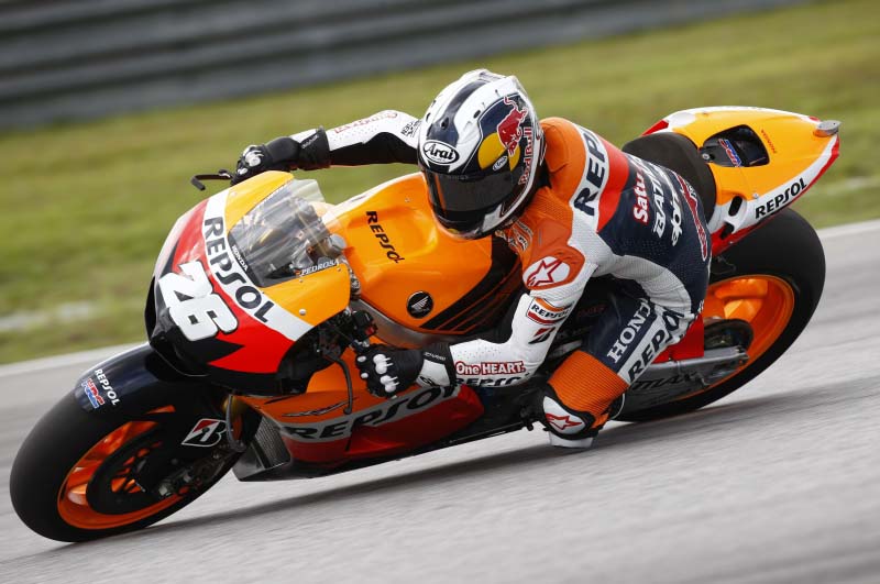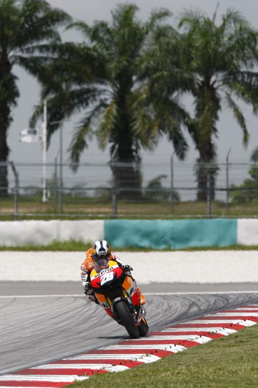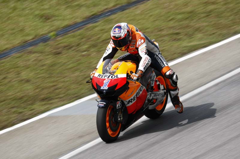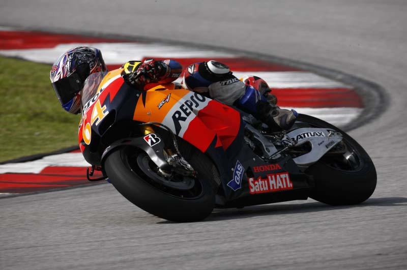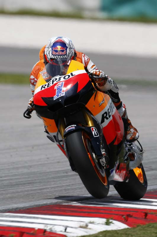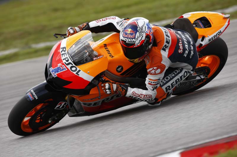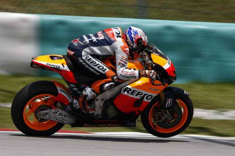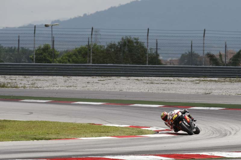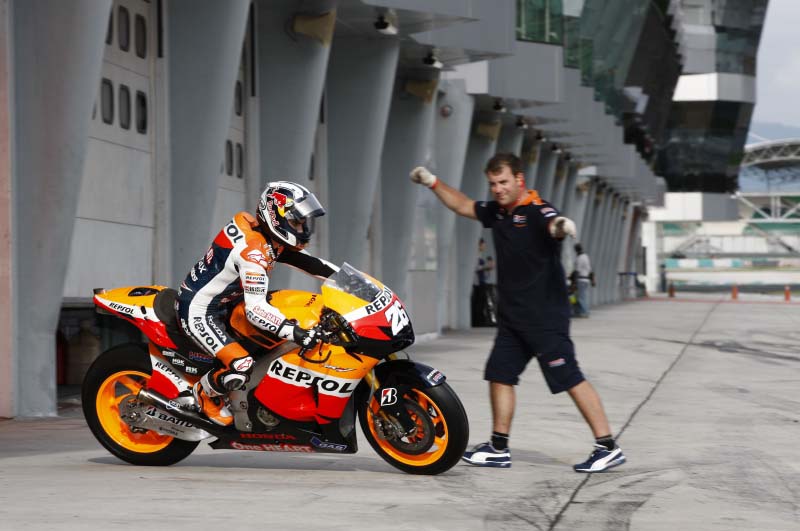 “Again we’ve been unable to profit from the full three days of the test here in Sepang,” admitted Repsol Honda rider Casey Stoner. “The first day we only managed about 16 laps before the rain came and then yesterday we weren’t able to get out at all. So today it’s been good to have some nice weather, get out on track and find some different solutions on the bike. We’ve been trying a few different things with electronics to have the engine character the same way we like it. We’ve also tried shortening the wheelbase, aiming to reduce the chattering and we’ve been successful in decreasing it slightly, but at the moment we’re unable to eliminate it completely, so we still have quite a lot of work to do. The chassis balance feels good as does the traction on the bike; it’s turning well, but we really need to get rid of the chatter. In general we are happy with the bike.”