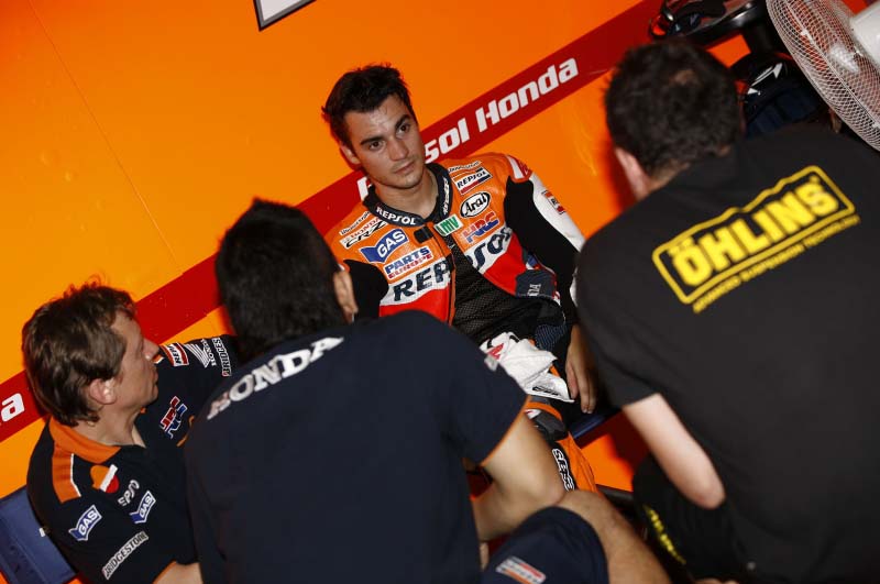 Leading the pack was again Casey Stoner, followed by teammate Dani Pedrosa. Surprisingly leading the Yamaha contingency was Andrea Dovizioso, who was just under a tenth of a second quicker than Jorge Lorenzo. Also bucking the factory-dominance trend was Hector Barbera, who took the honors as the fastest Ducati of the day, while Valentino Rossi and Nicky Hayden languished down in 10th & 11th place respectively — over a second slower than Stoner’s best time.