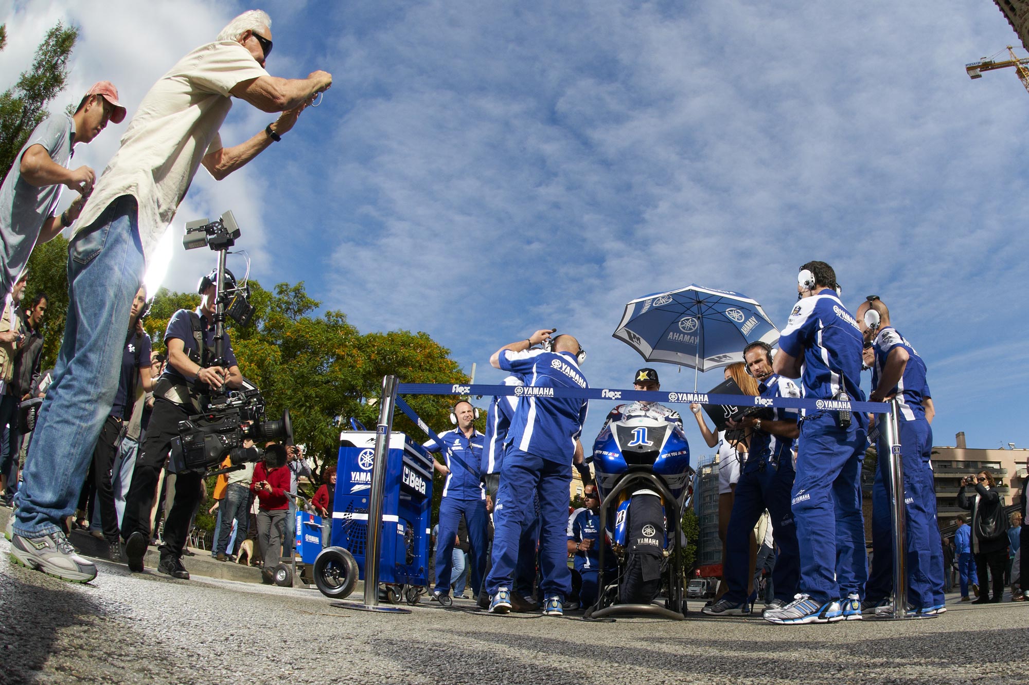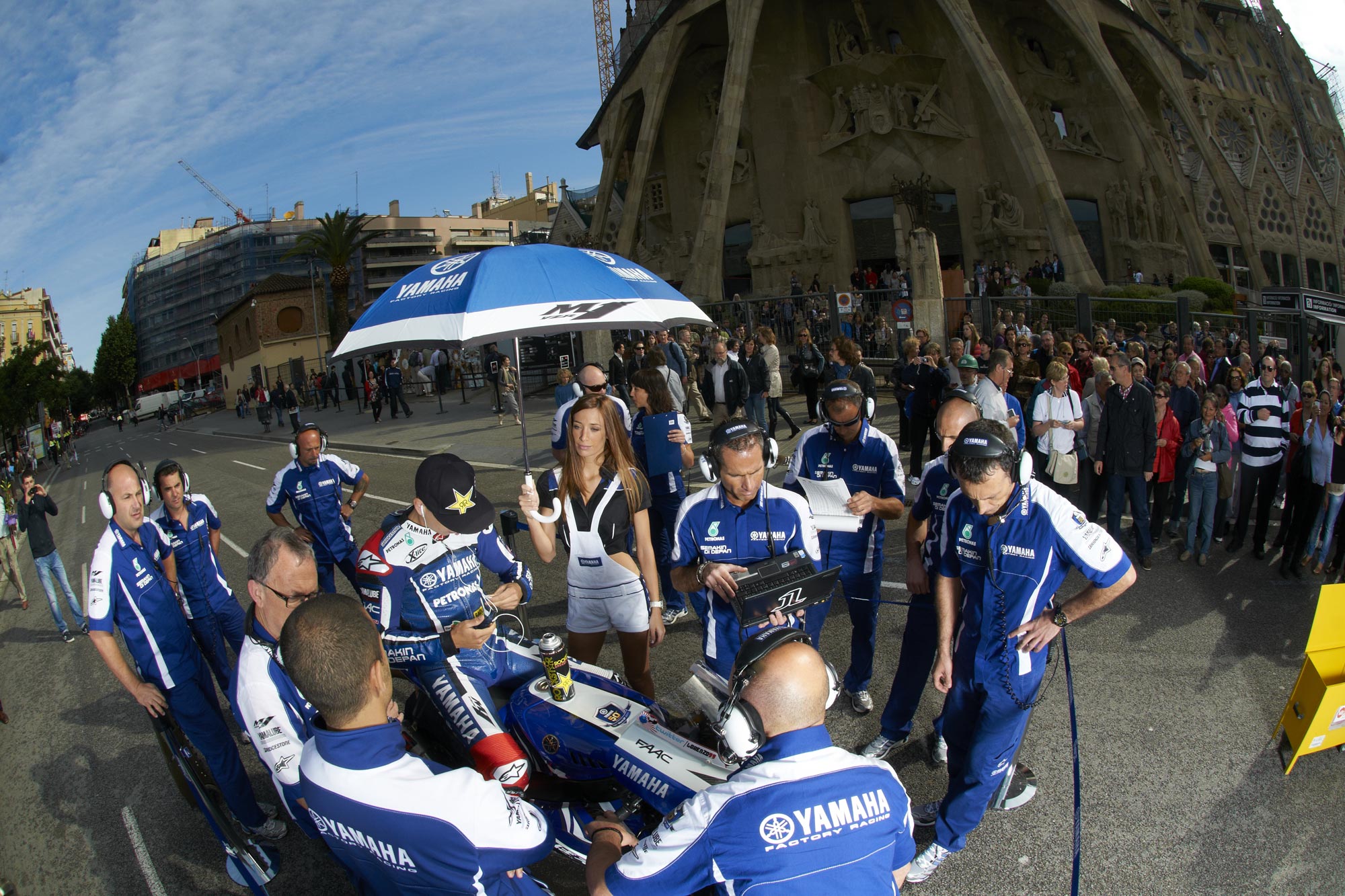 As the ‘30 second’ board was raised Lorenzo’s YZR-M1 barked into life and as the lights went out the crowd were treated to a sonic explosion as the Mallorcan took off, vanishing as quickly as he had appeared. Moments later the assembled Yamaha crew had melted back into the surroundings, leaving just the echo of the M1 bouncing of the Sagrada Familia as evidence of that they had ever been there at all.