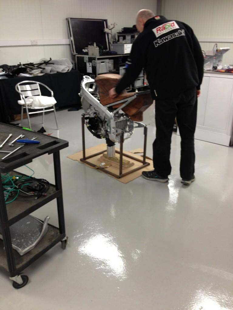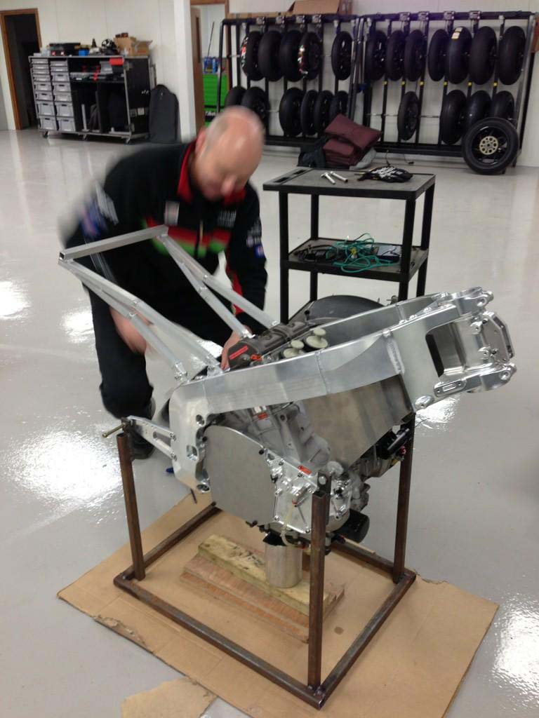 Building the PBM-o1 with the help of chassis-builder GPMS, PBM will have Laverty also ace with an Aprilia RSV4 engine between his legs, though the rest of the machine will differ from his teammate’s more “factory” machine. Teasing out the first pictures of the PBM-01 chassis by GPMS, Team Principal Paul Bird has teased out some pictures of the team’s new GP chassis with the V4 motor mounted.