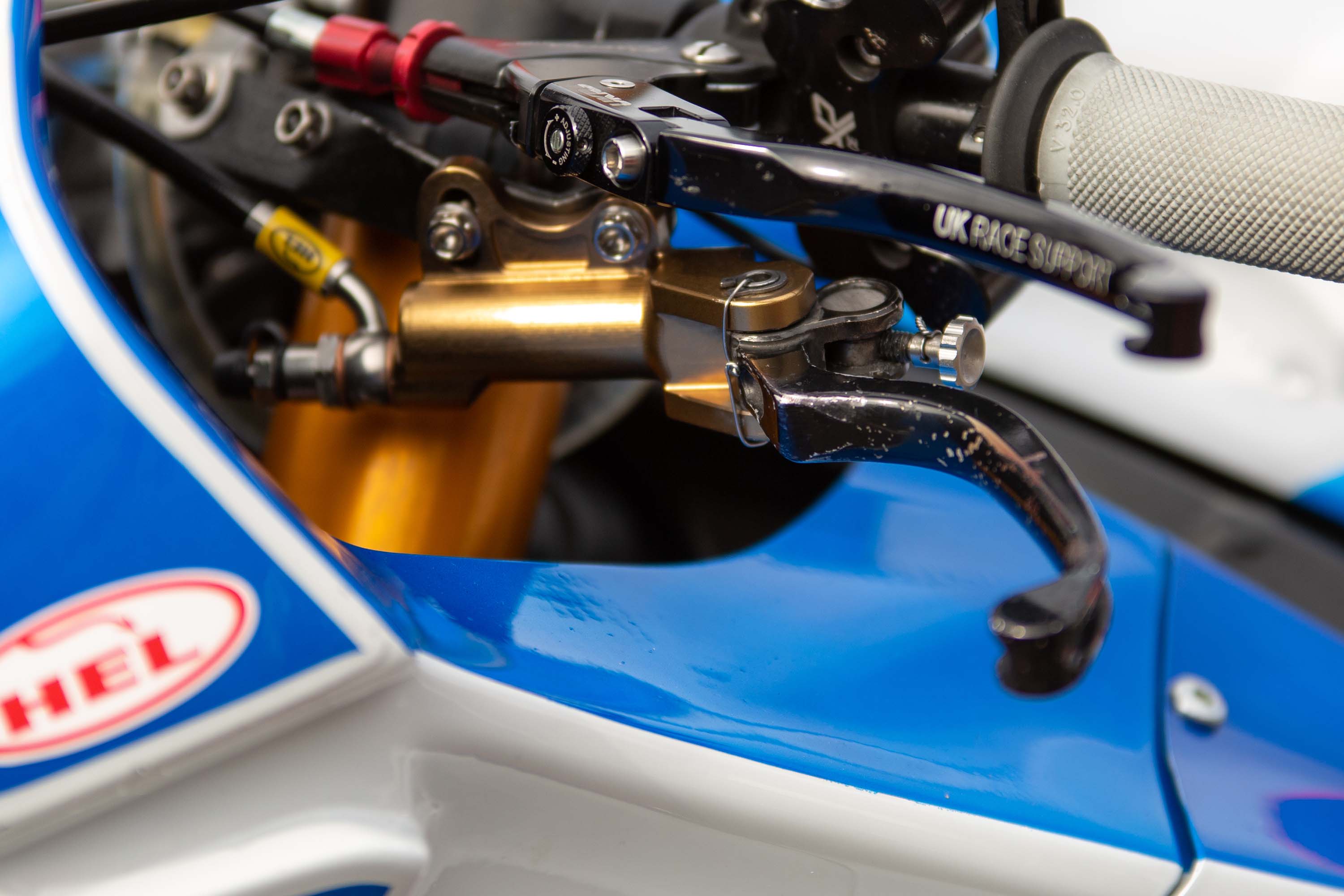 Of course, the obvious changes are there: full race bodywork, Öhlins suspension, an Akrapovic race exhaust, etc, etc, etc. But, the first thing that catches our eye is on the left-hand clip-on.