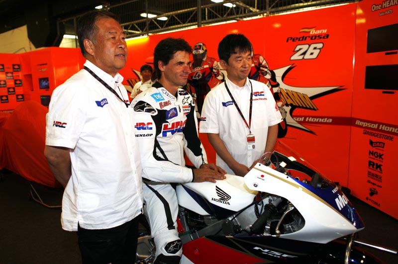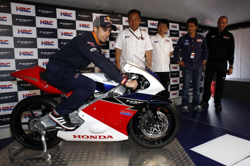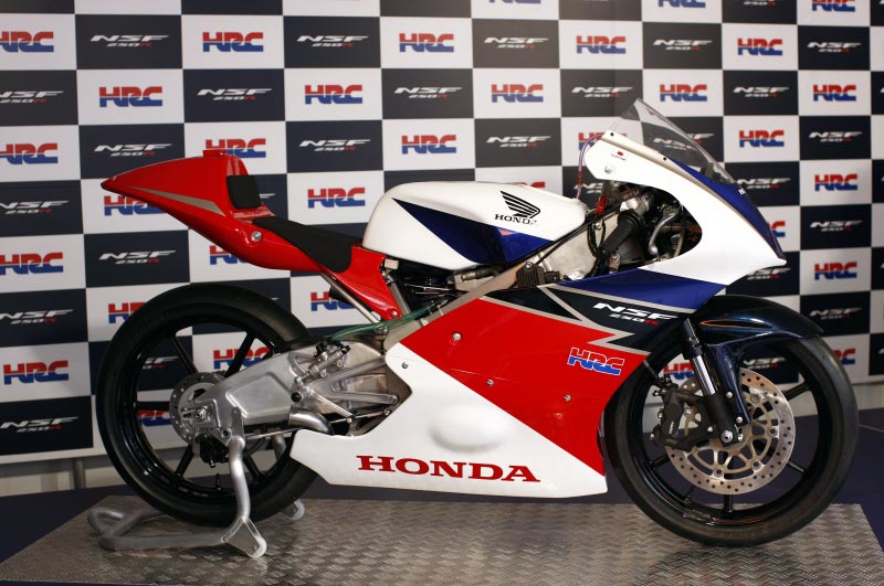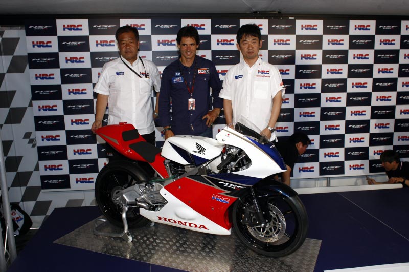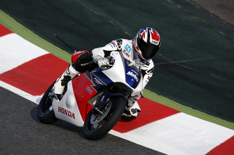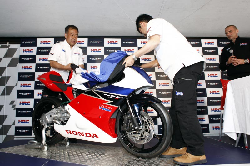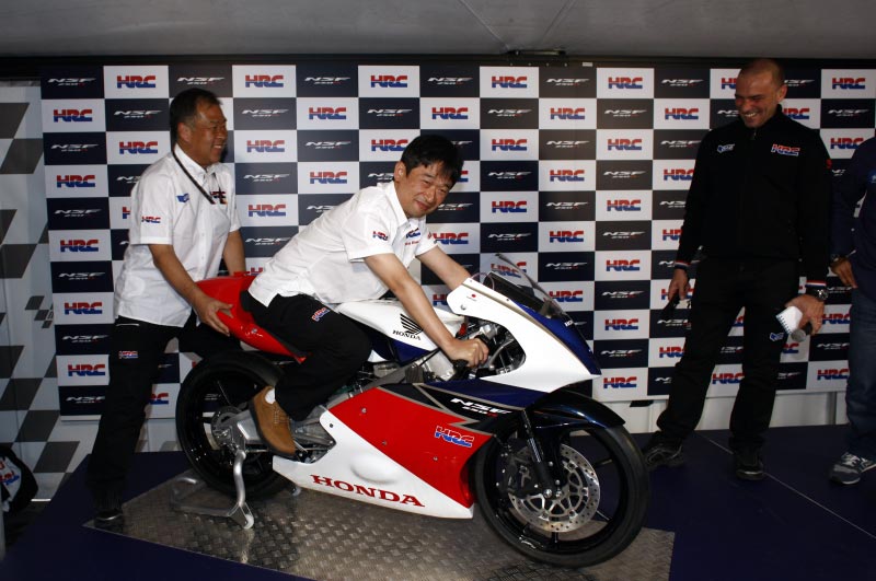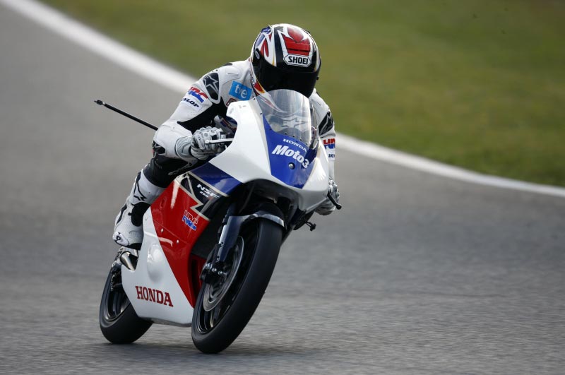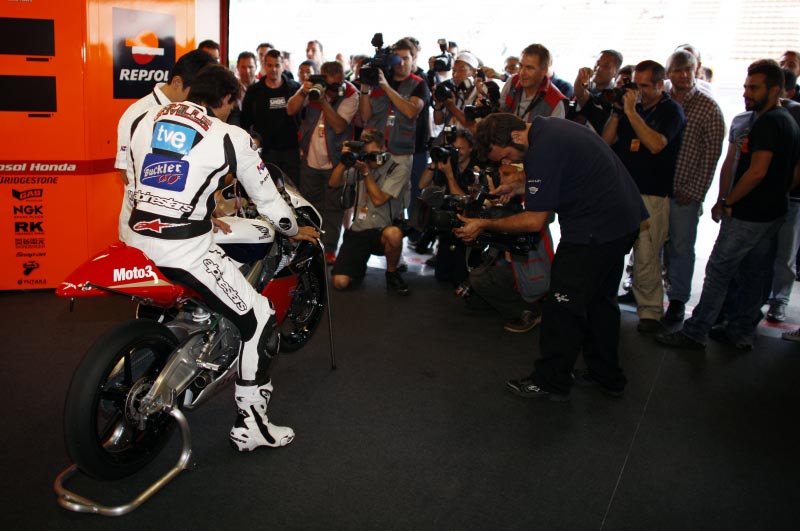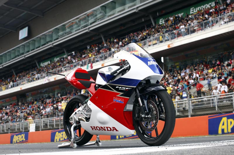 There was much ado at the Catalan GP regarding the Honda NSF250R Moto3 bike, likely because the Moto3 class is a big step in a larger movement currently unfolding in MotoGP, and the Spanish market is an important one when it comes to GP racing. With the 125GP class, which Moto3 is replacing next year, full of Spanish and Italian youths looking to become the next Jorge Lorenzos and Valentino Rossis, Honda no doubt wants to make a strong impression to its target market, even taking the NSF250R out for a parade lap with Alex Criville on-board. We doubt any other Moto3 manufacturer will get such a plug from Dorna, but nevertheless, find the photos the event after the jump.